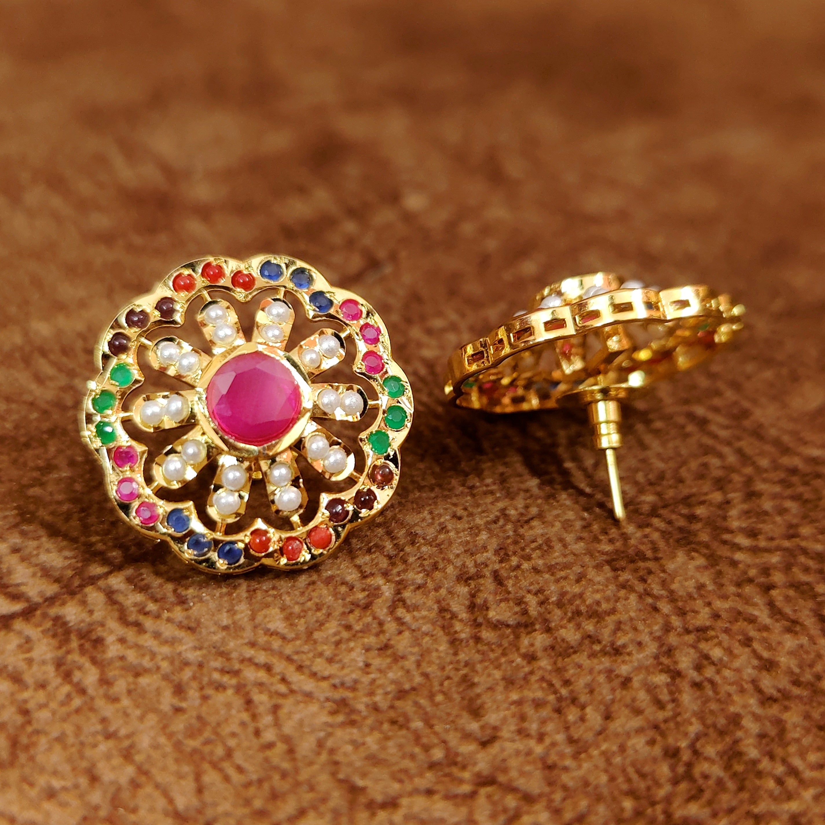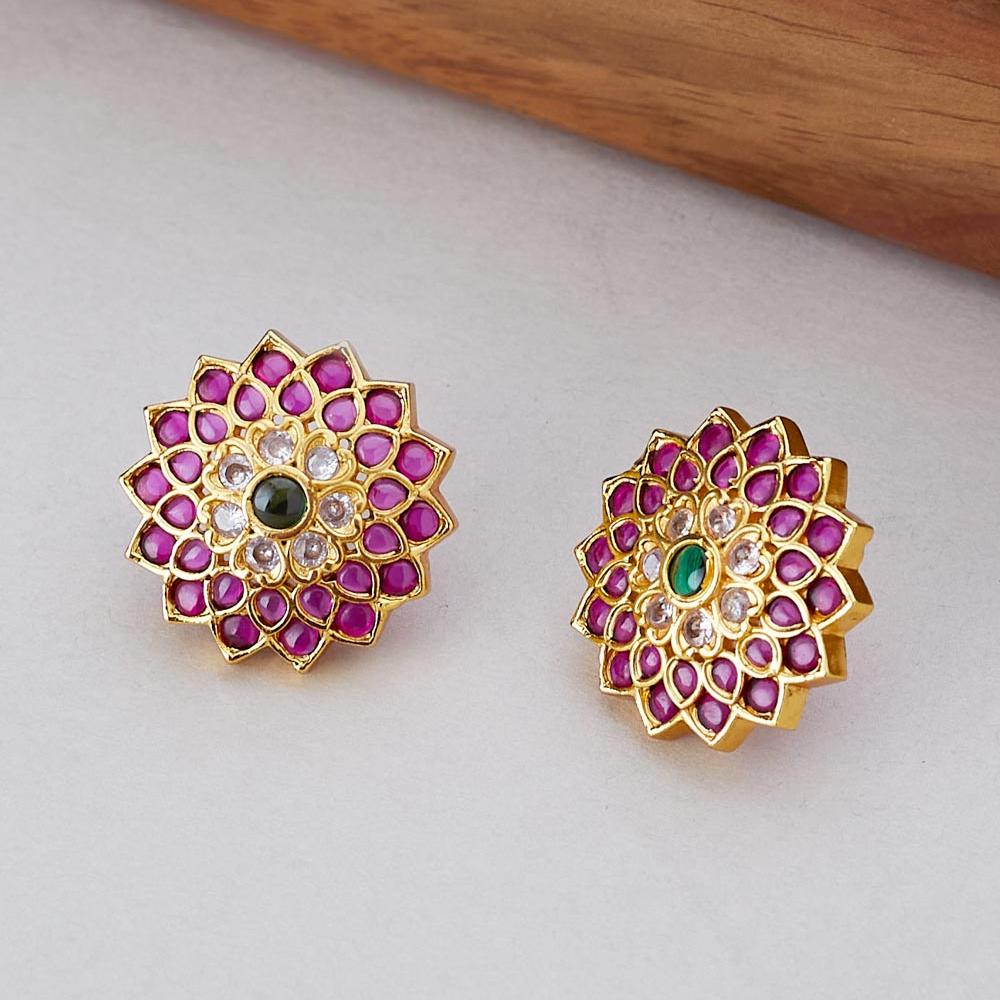 RUBY KUNDAN MEENAKARI GOLD PLATED STUDS