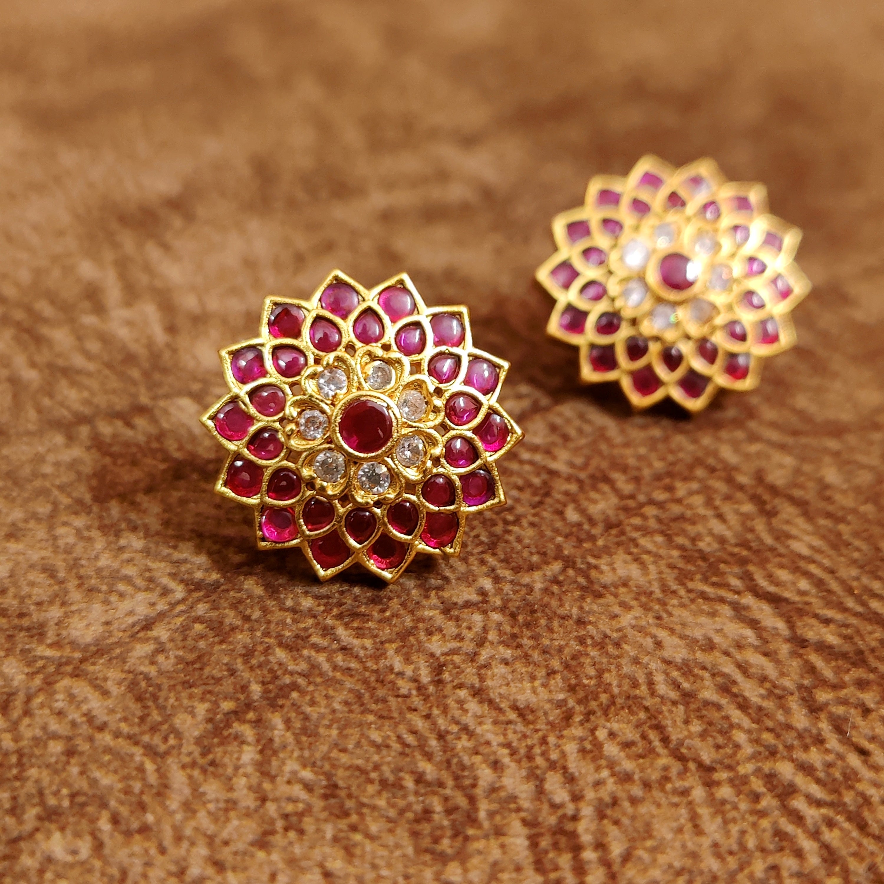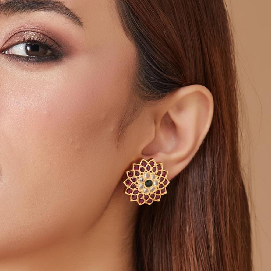 Ruby Stone Studded Jadau Style Studs