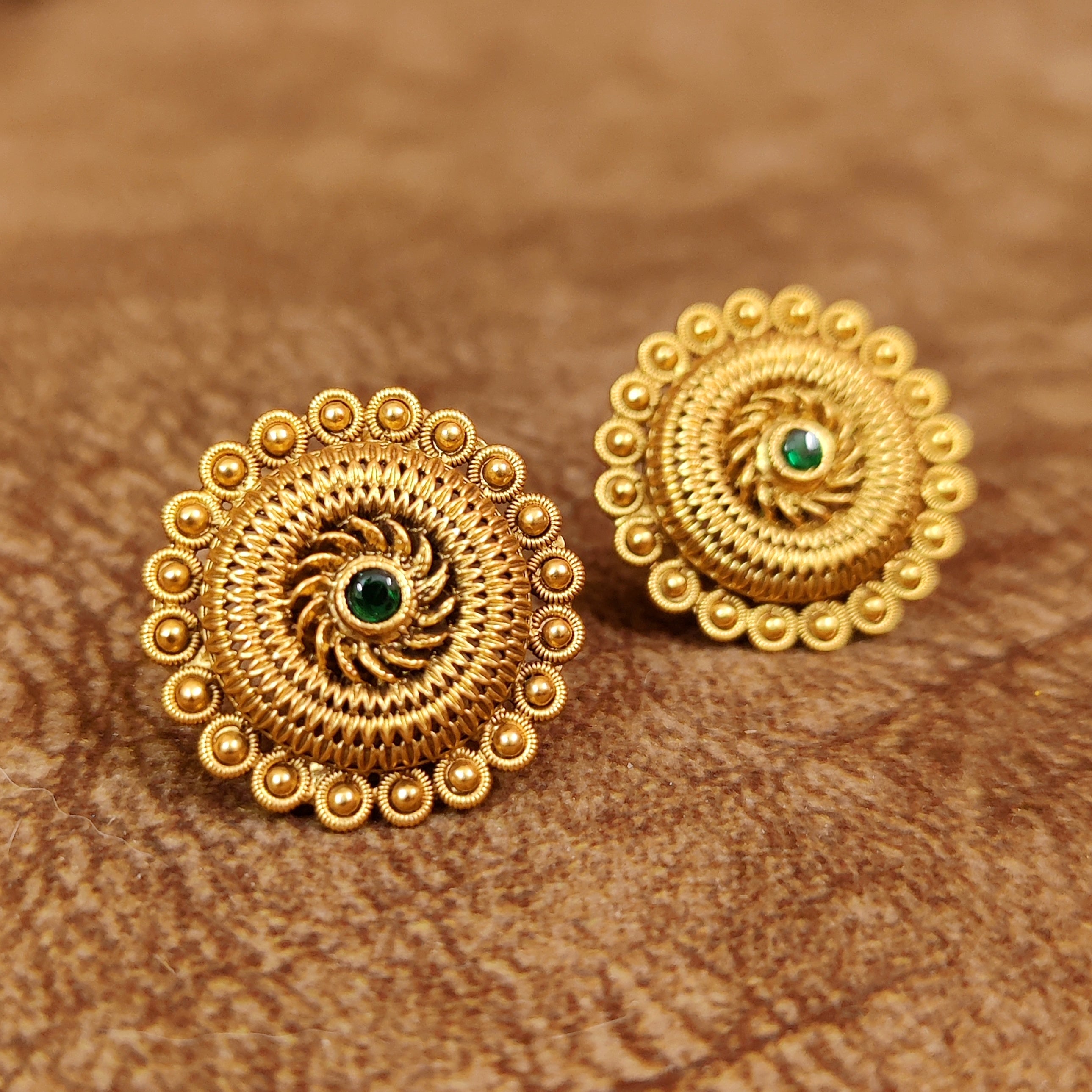 GREEN GOLD PLATED OVAL FLORAL PATTERN STUDS