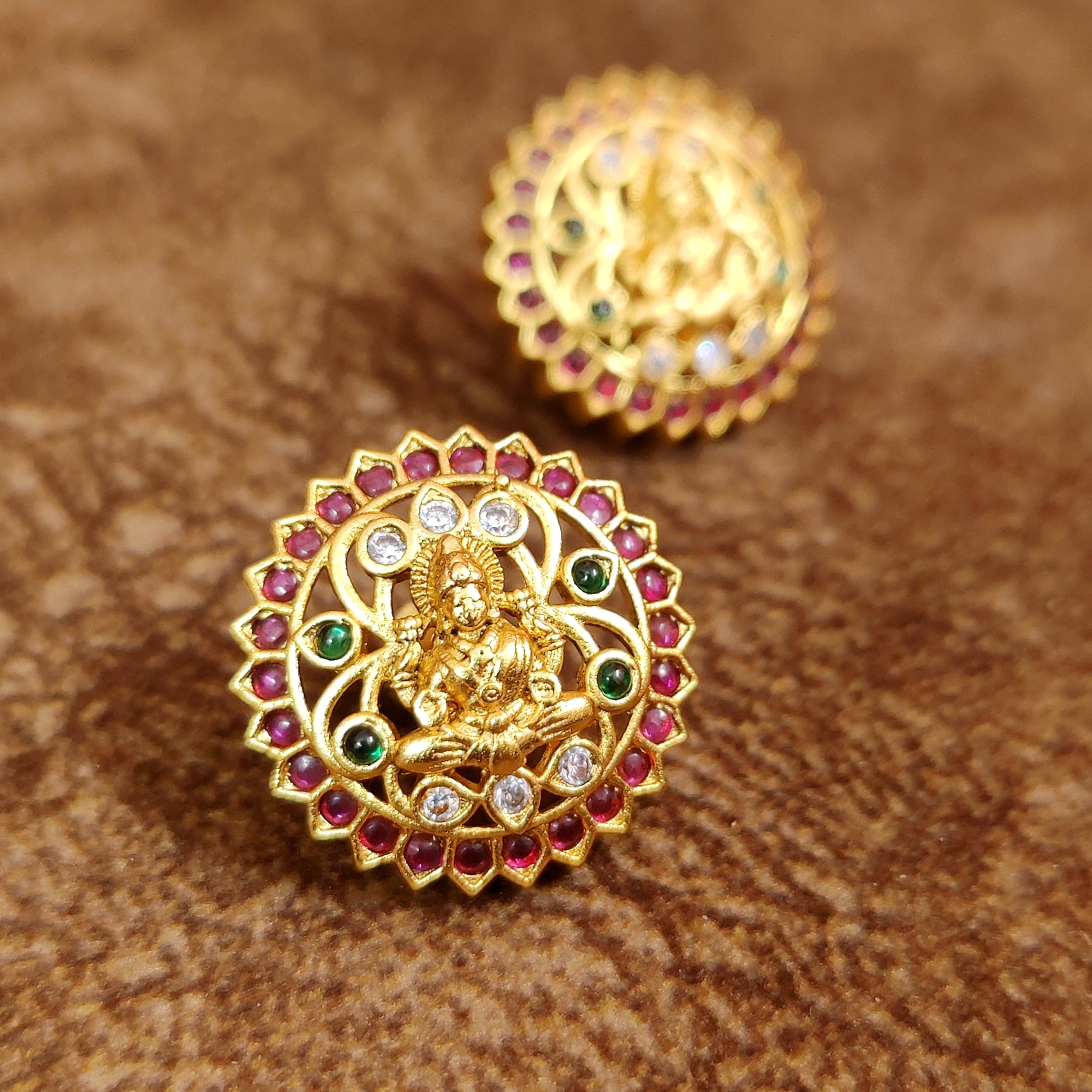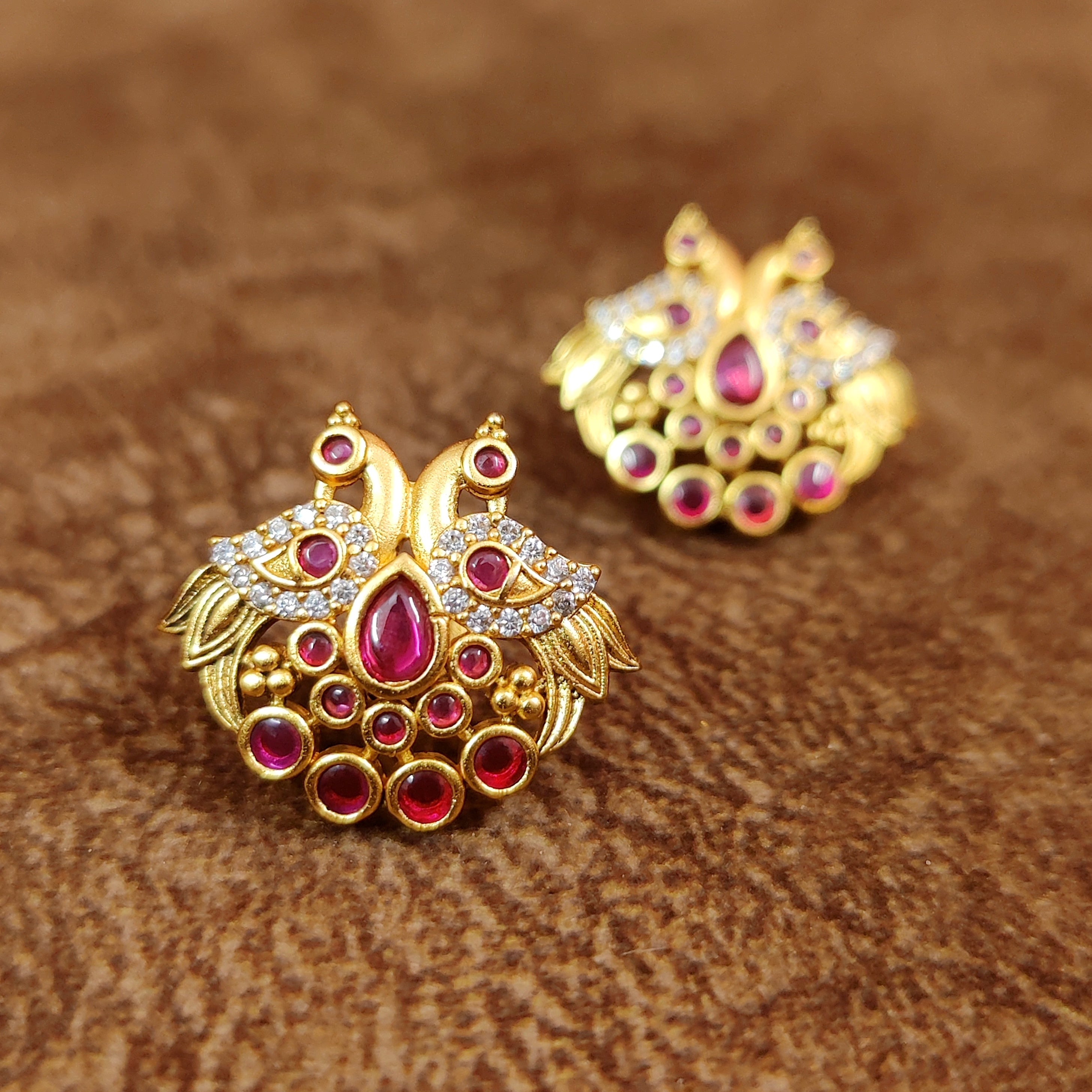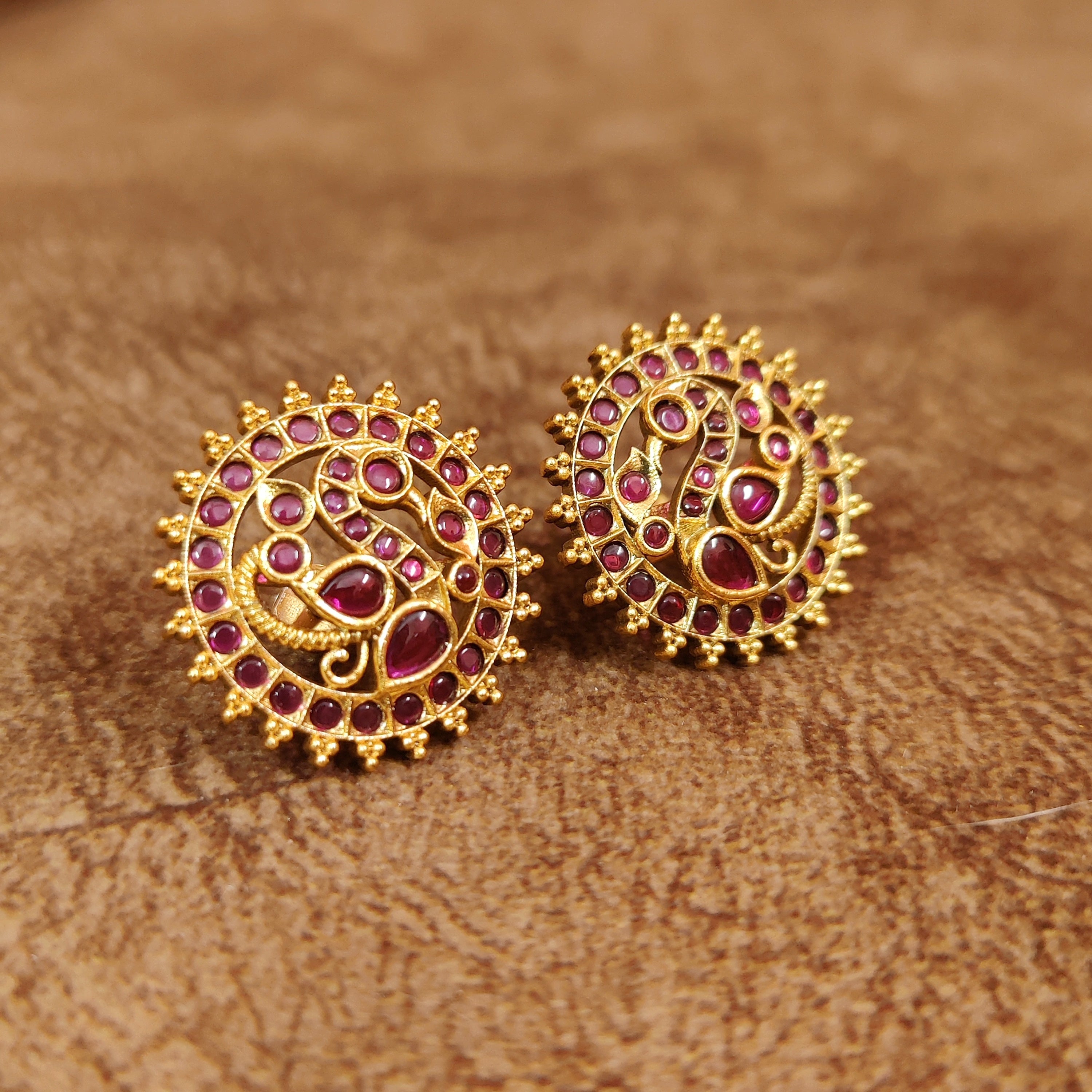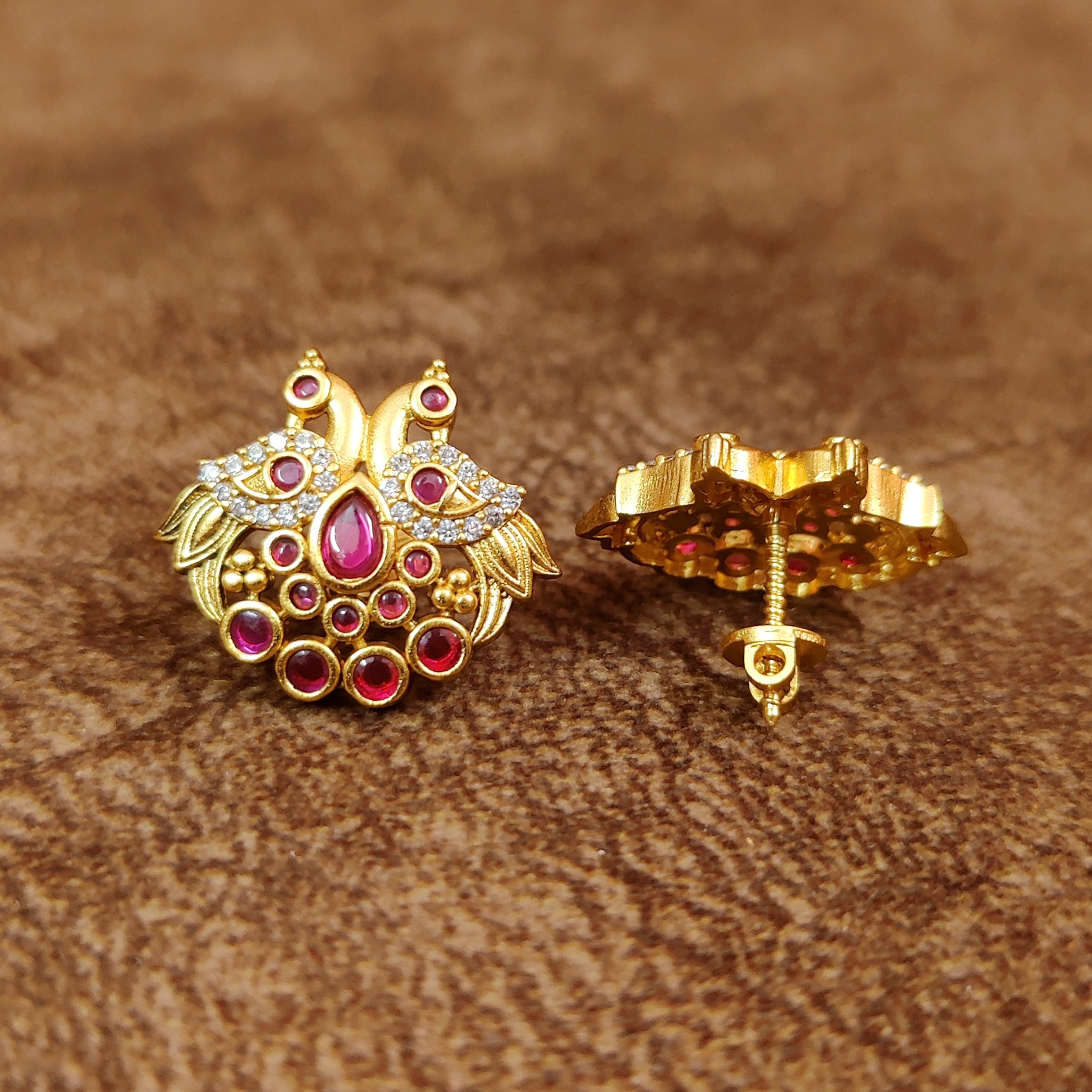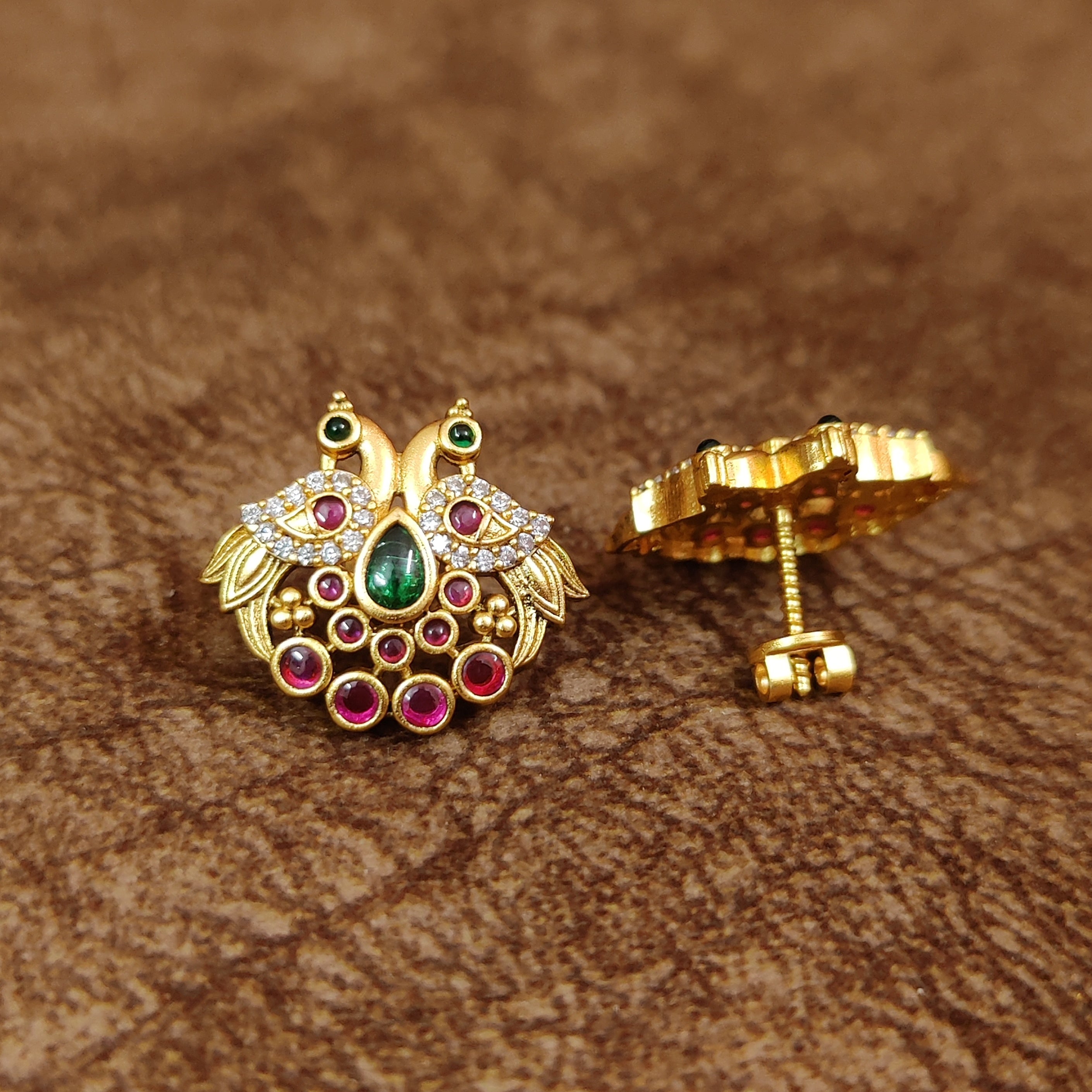PREMIUM RUBY PEACOCK KEMPU SCREW BACK EARRINGS