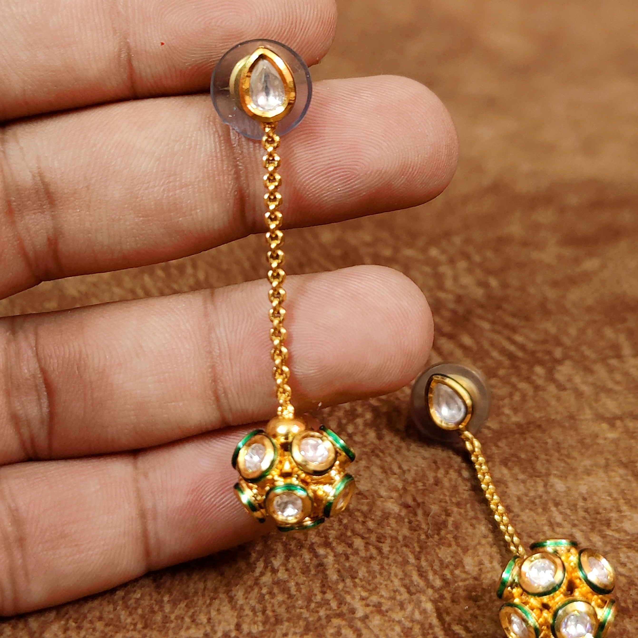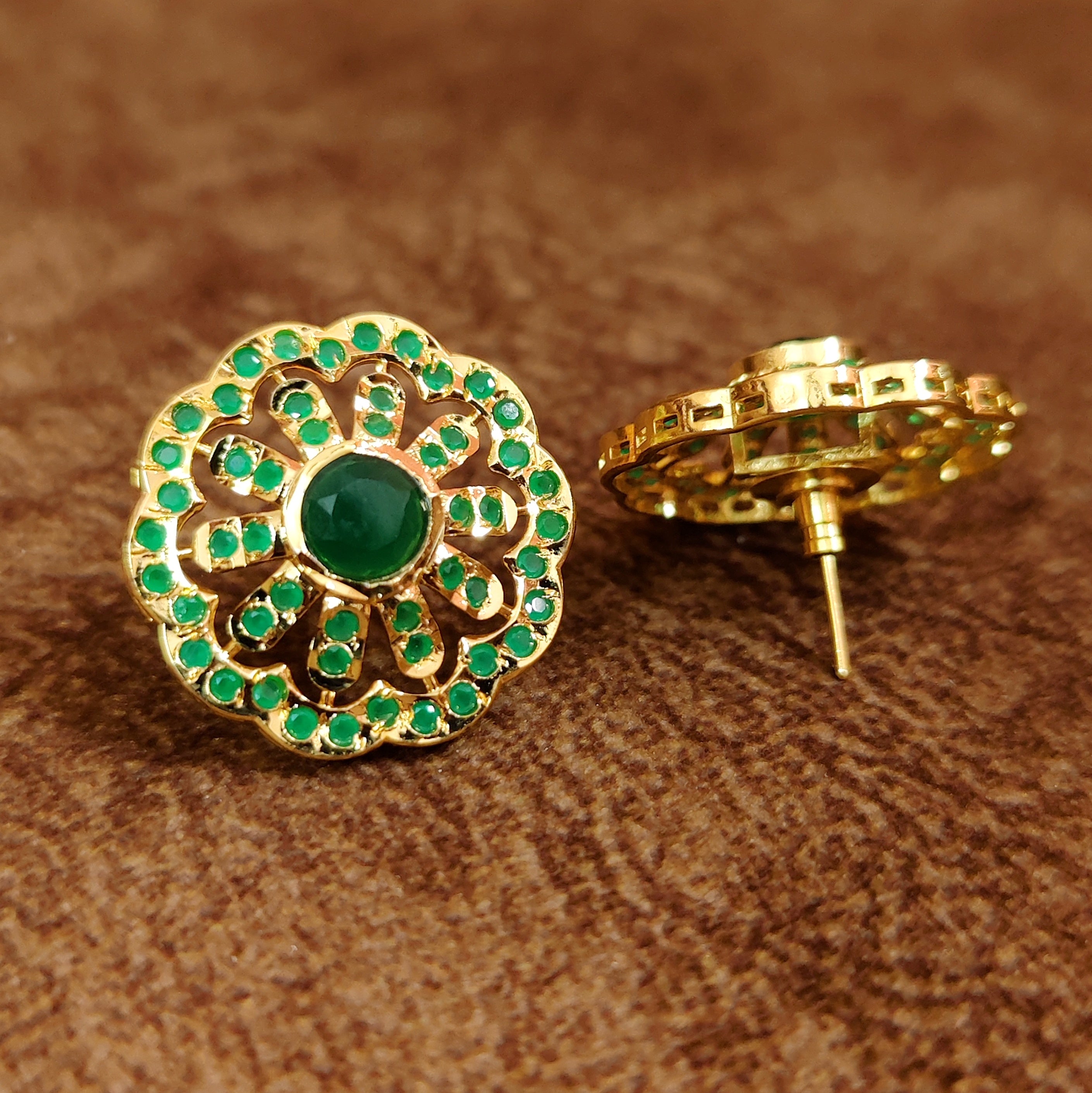 Emerald Colour Stone Studded Jadau Style studs