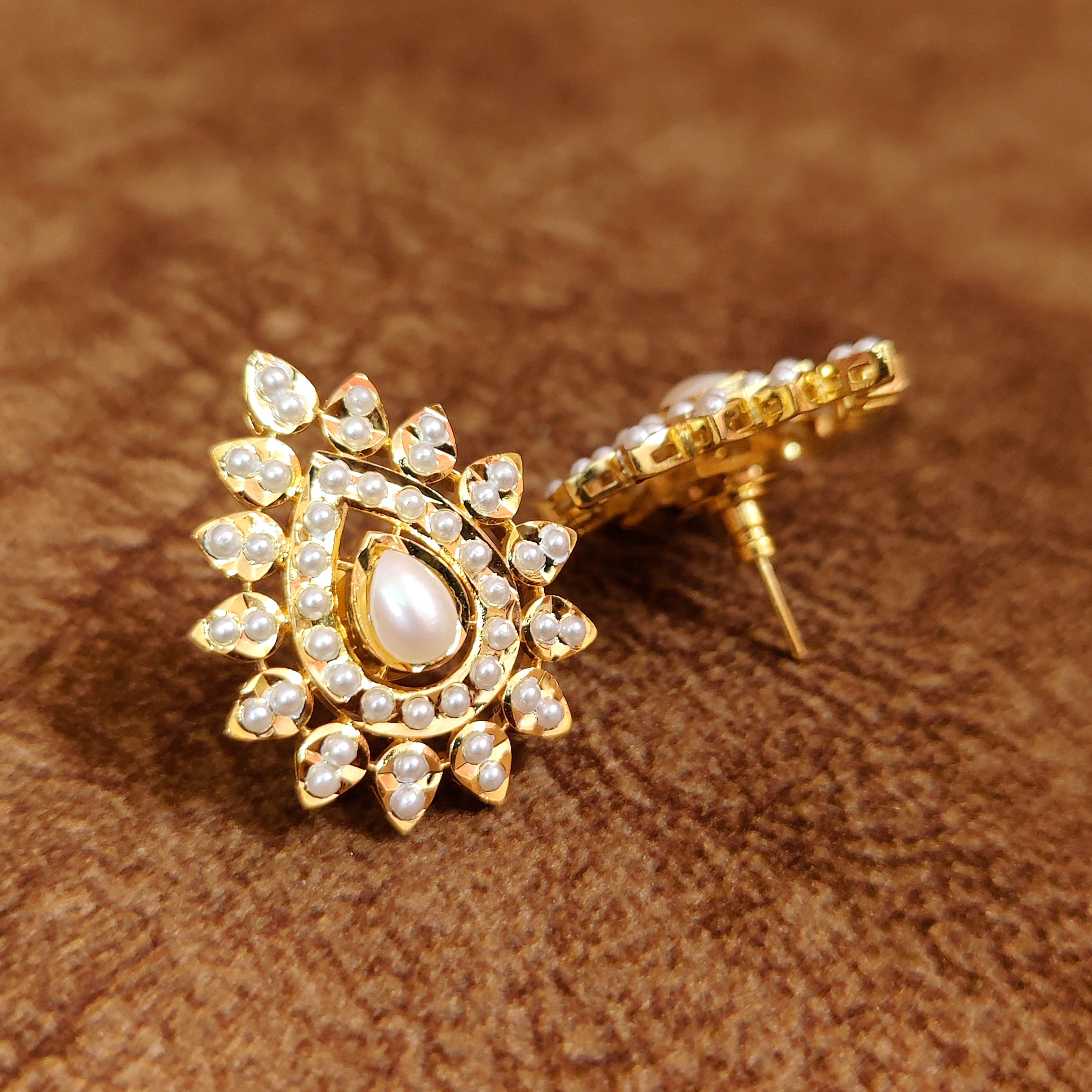 White Pearl Studded Jadau Style Studs