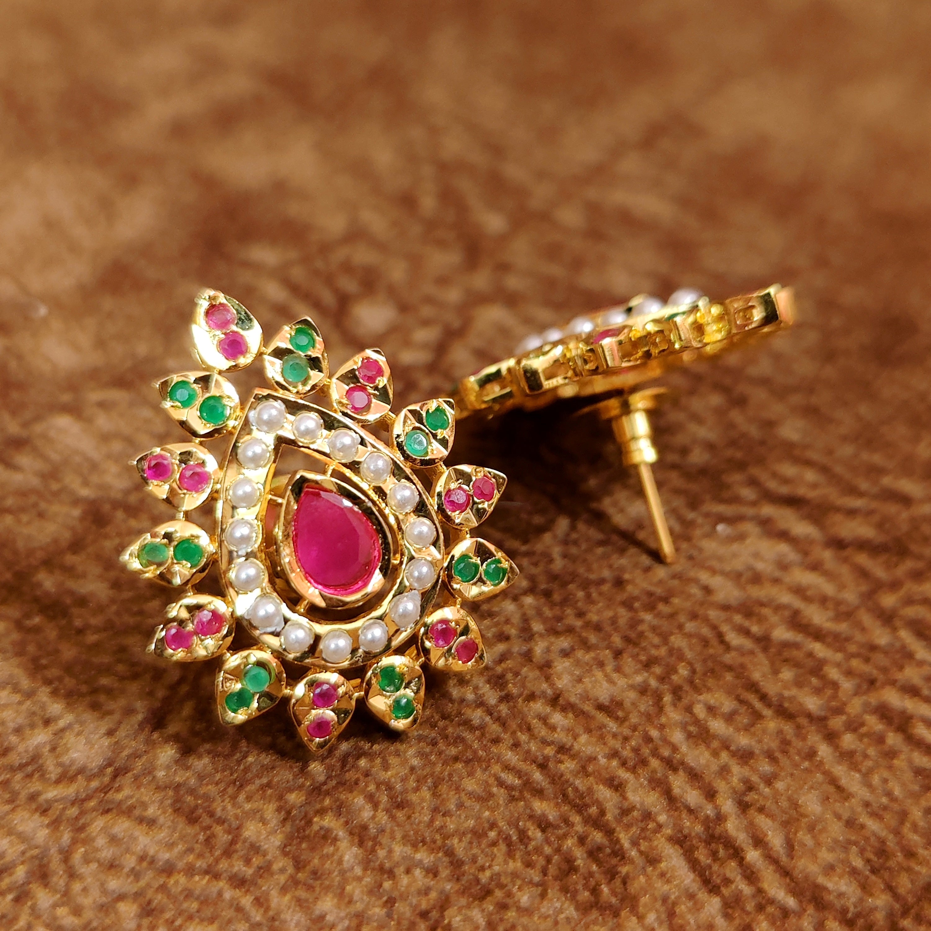 Ruby & Pearl Studded Pear Shape Jadau Style studs