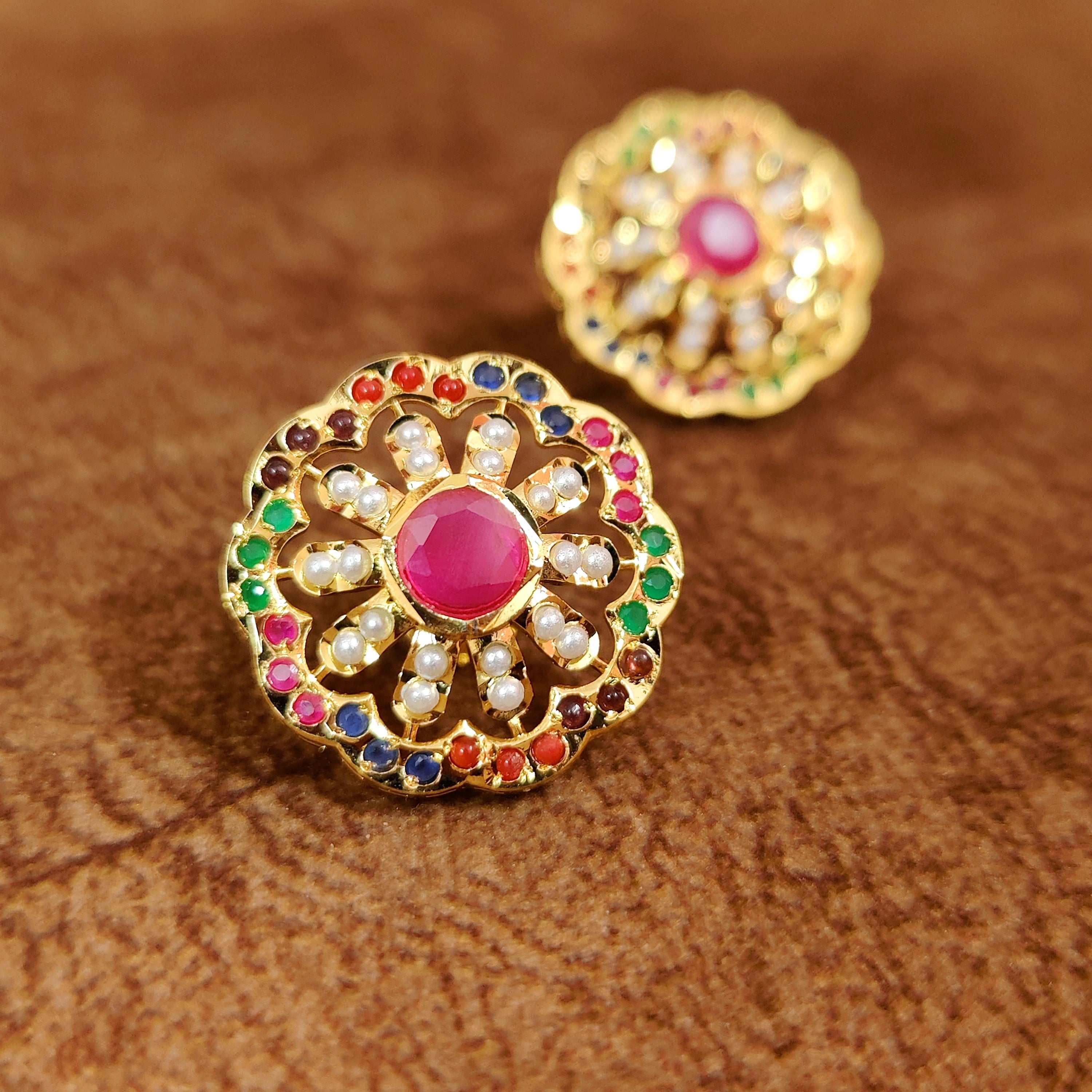 Navratan Stone Studded Pear Shape Jadau Style studs