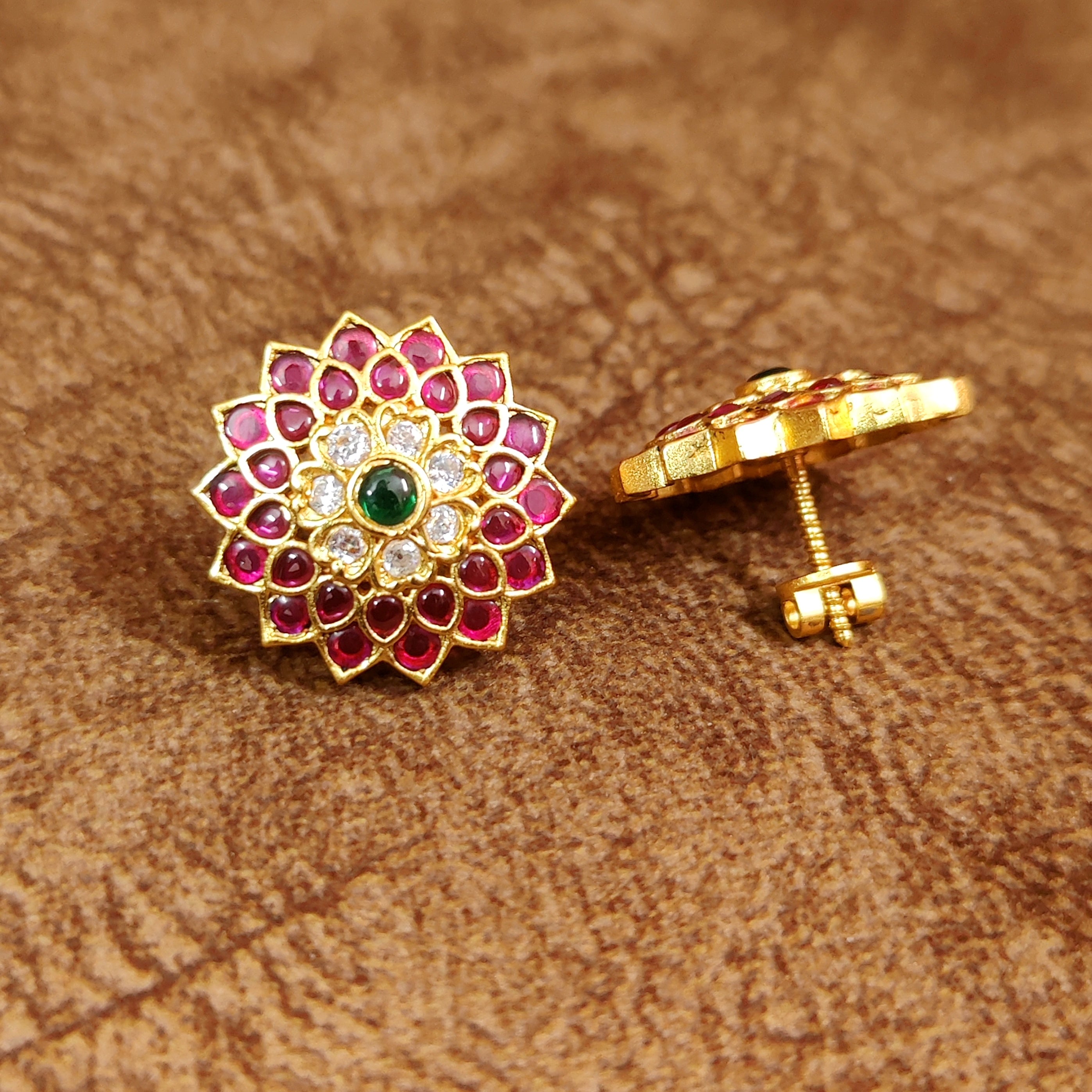 RUBY REAL KEMPU STONE GOLD SCREW BACK STUDS