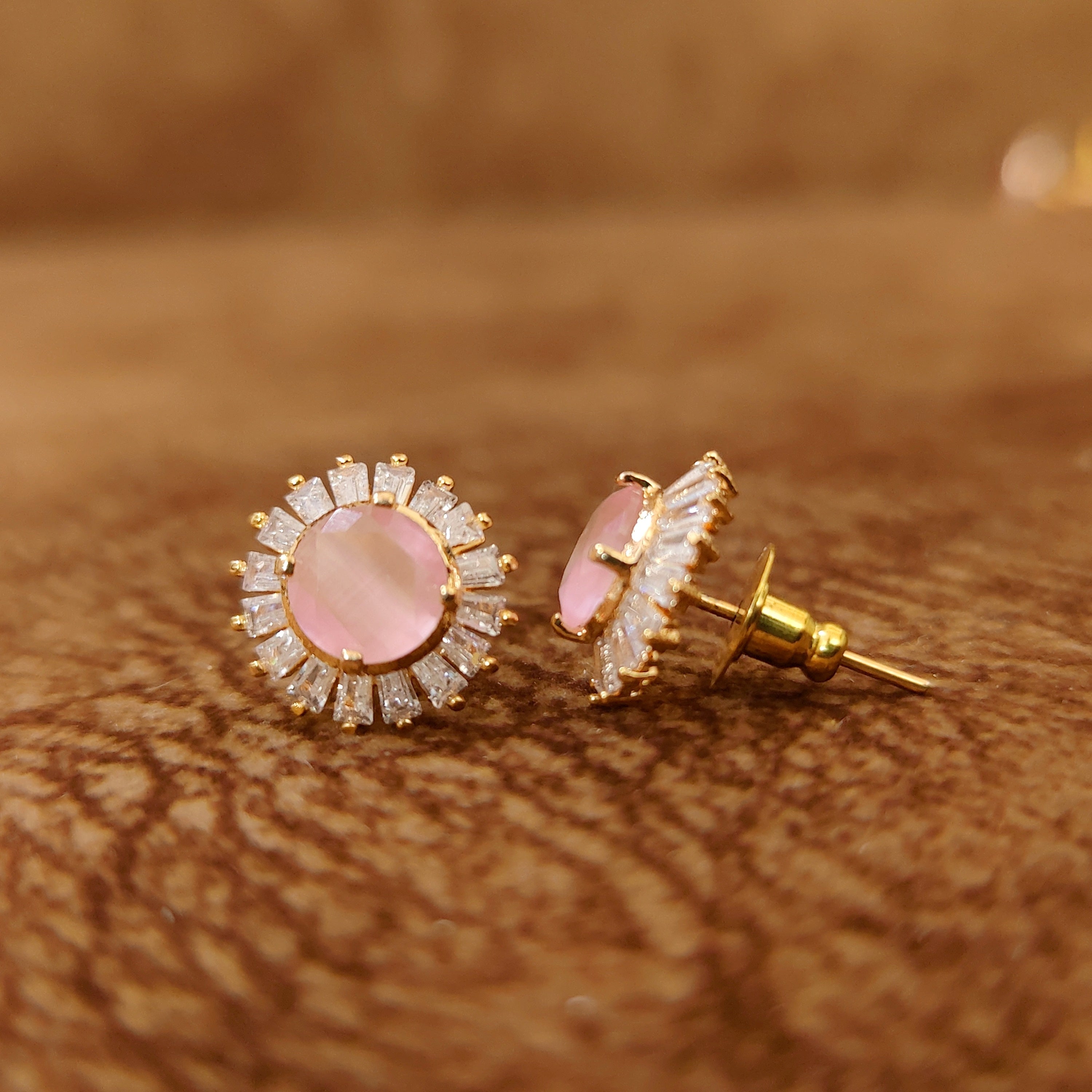 PINK ONYX DIAMOND LOOK GOLD PLATED STUDS