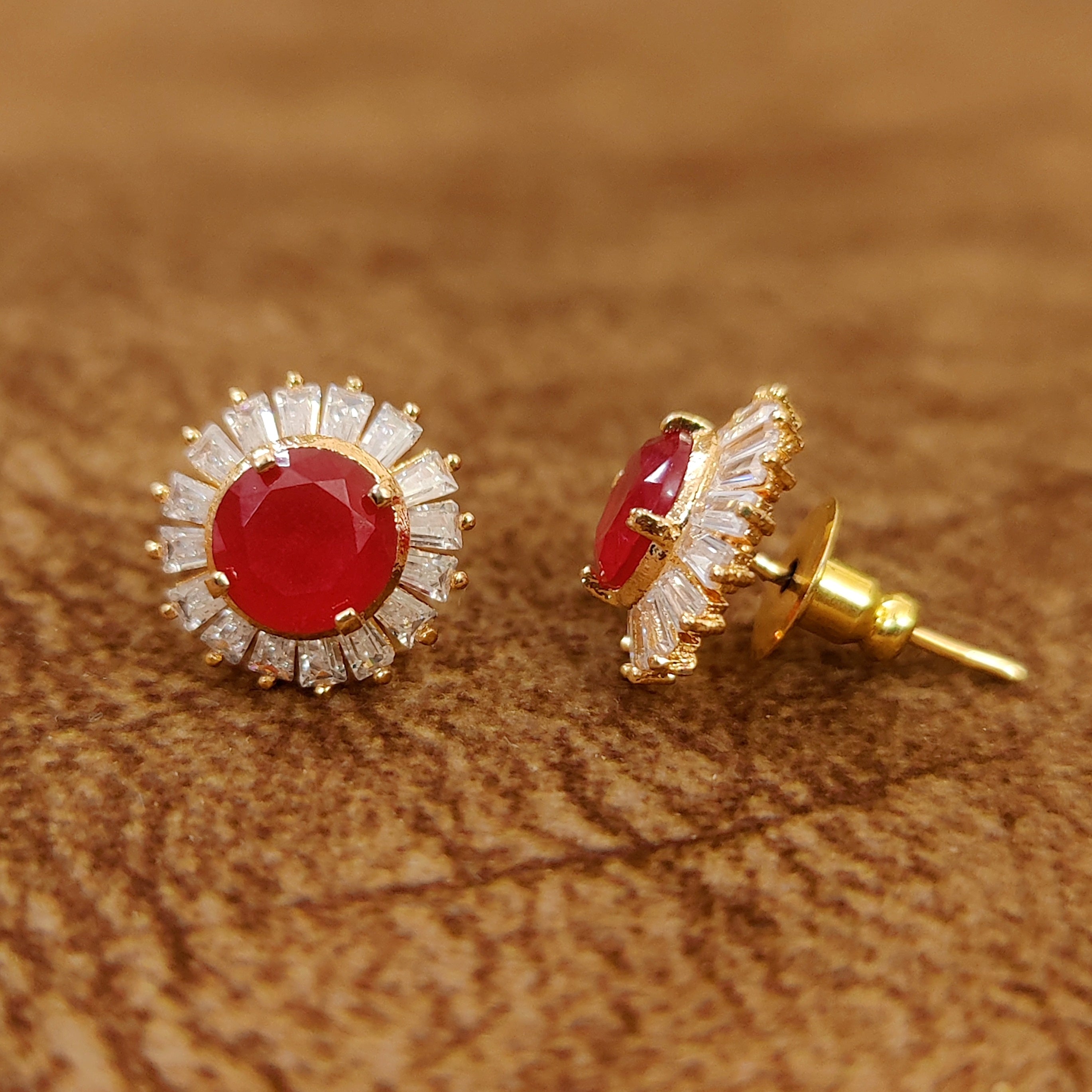 RUBY DIAMOND LOOK CZ GOLD PLATED STUDS
