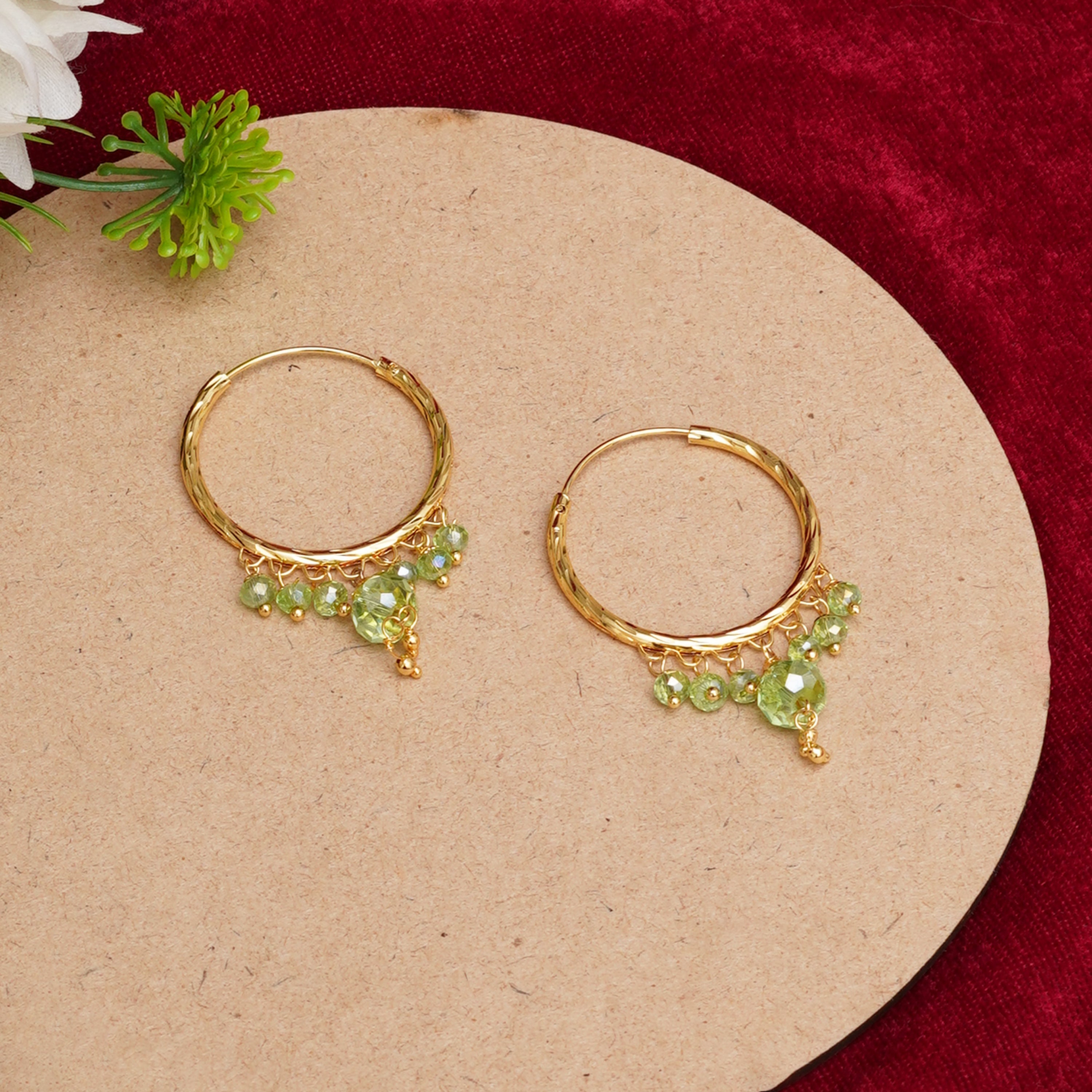 Mint Green Dangling Gold Plated Hoops