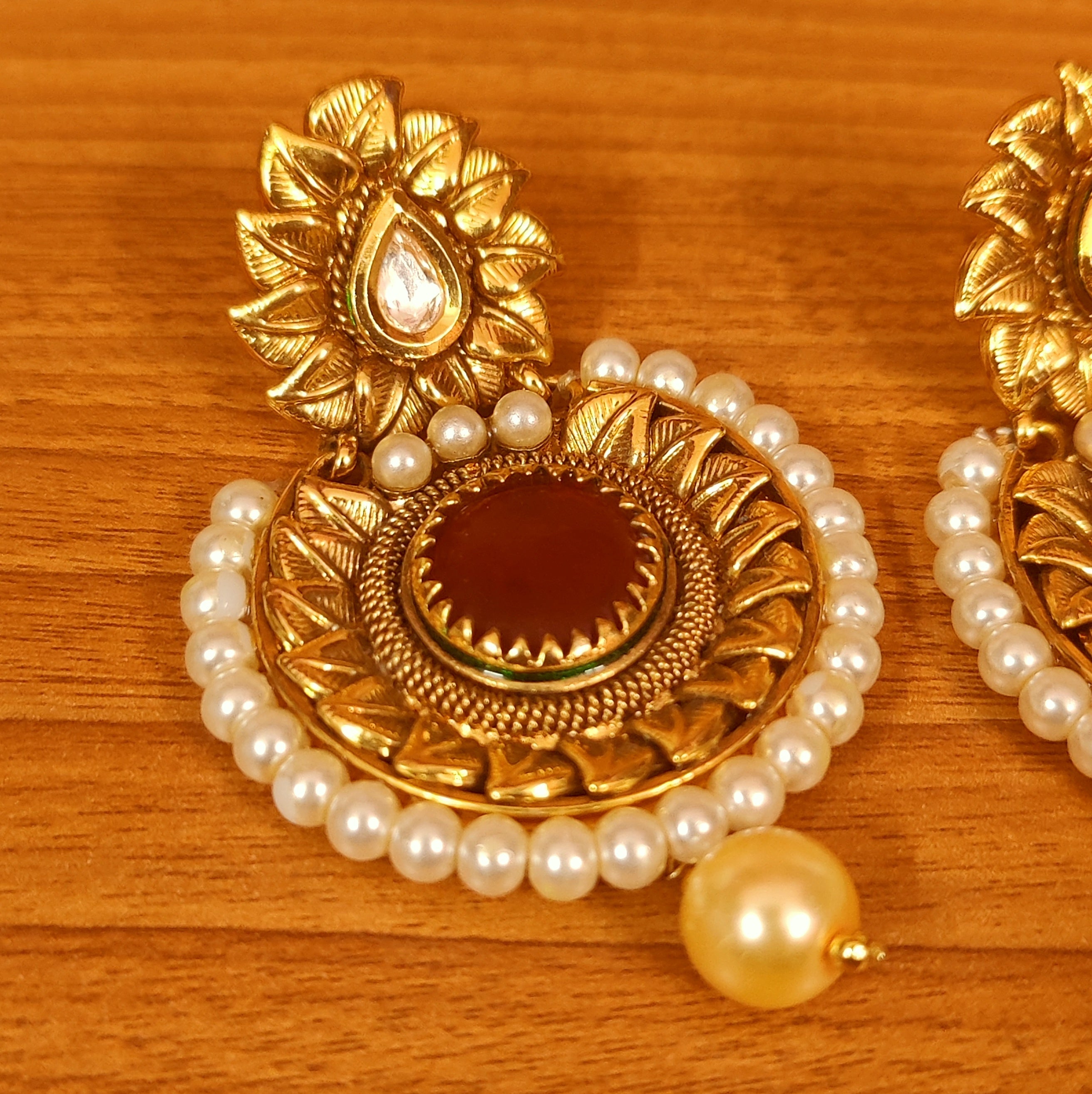 RUBY COLOUR KUNDAN WORK POLKI STUDDED DANGLERS