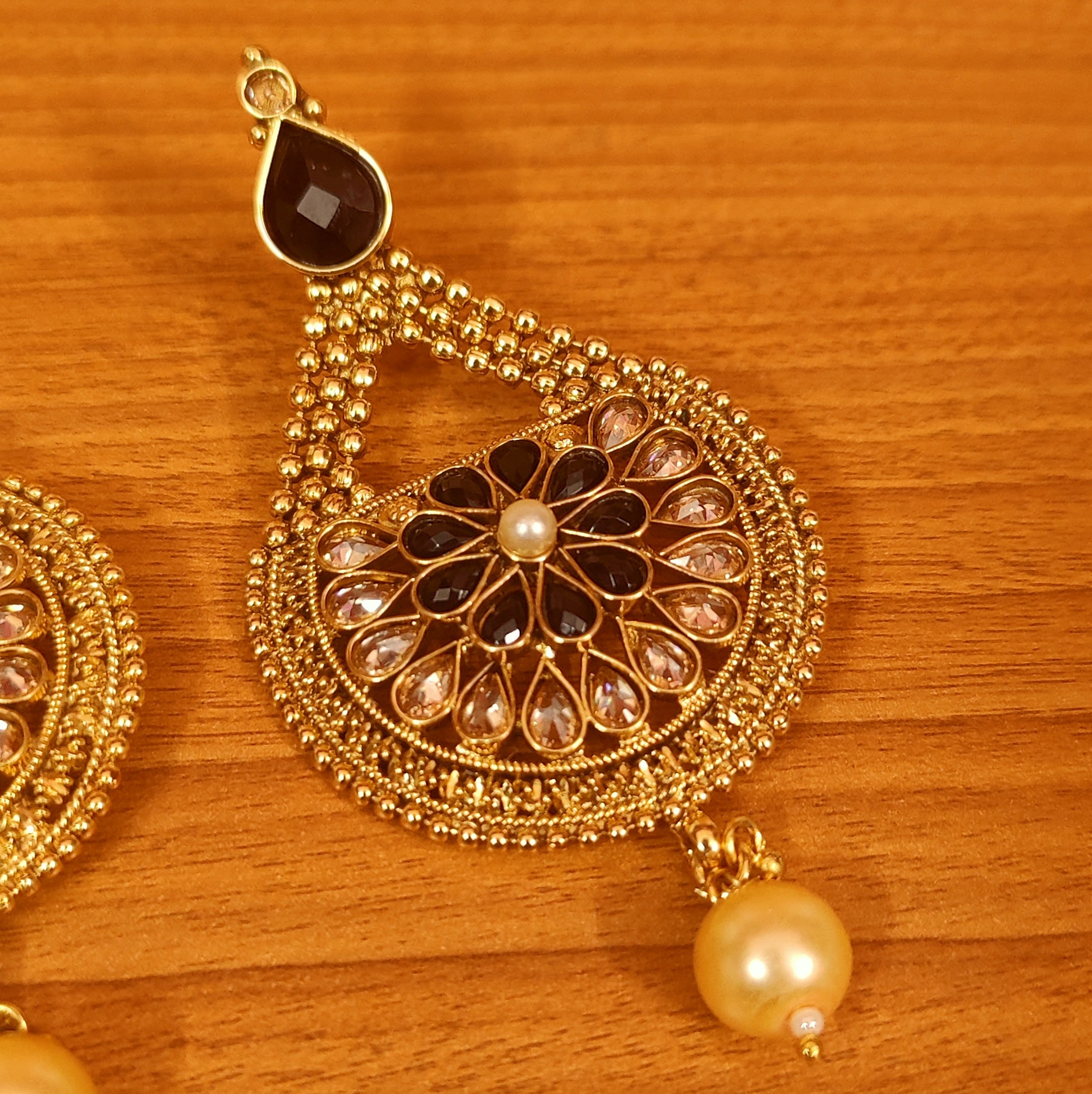 KUNDAN POLKI & PEARL GOLD PLATED CHAANDBAALI