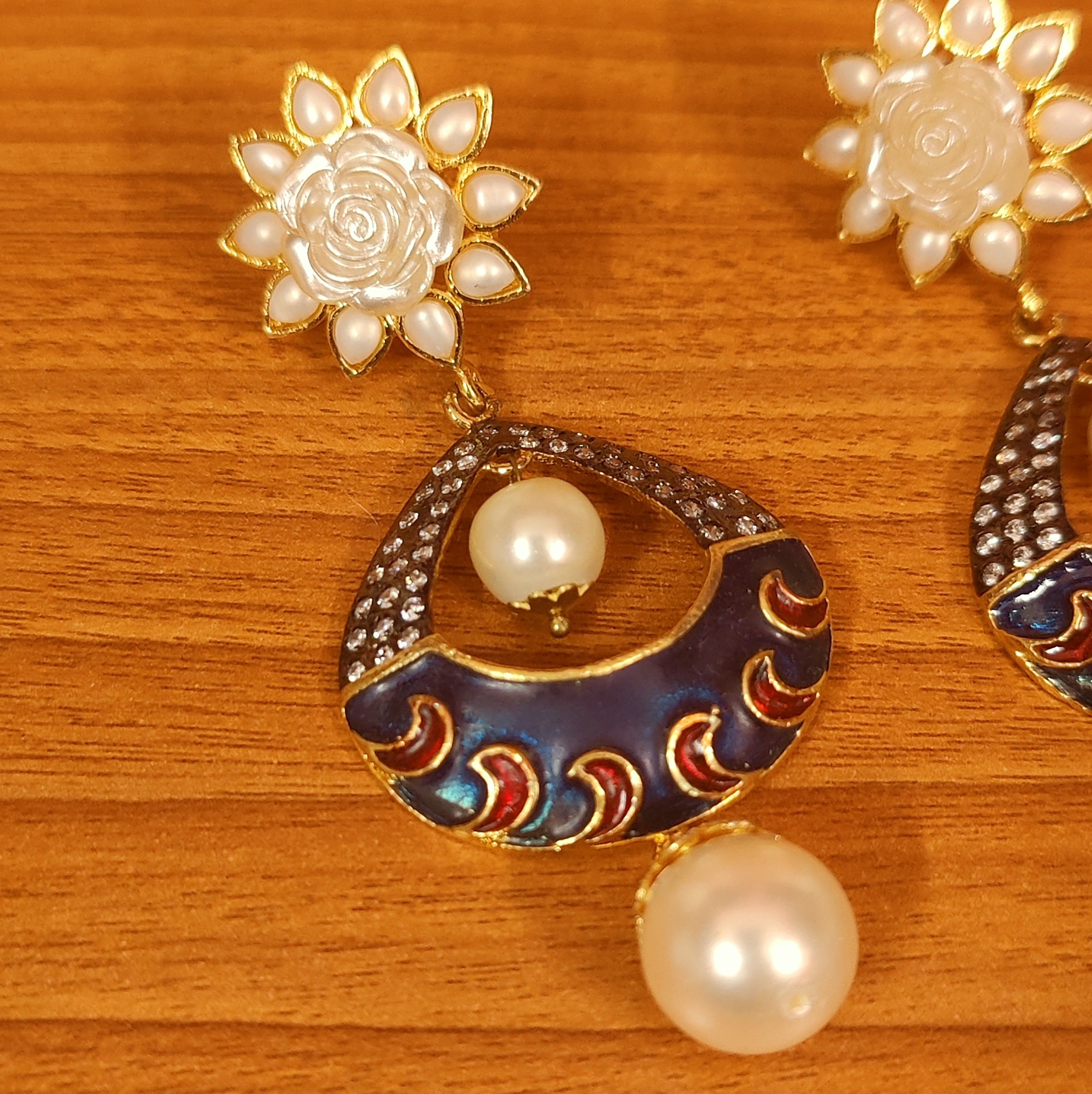 BLUE SAPPHIRE CZ STUDDED PEARL EARRINGS