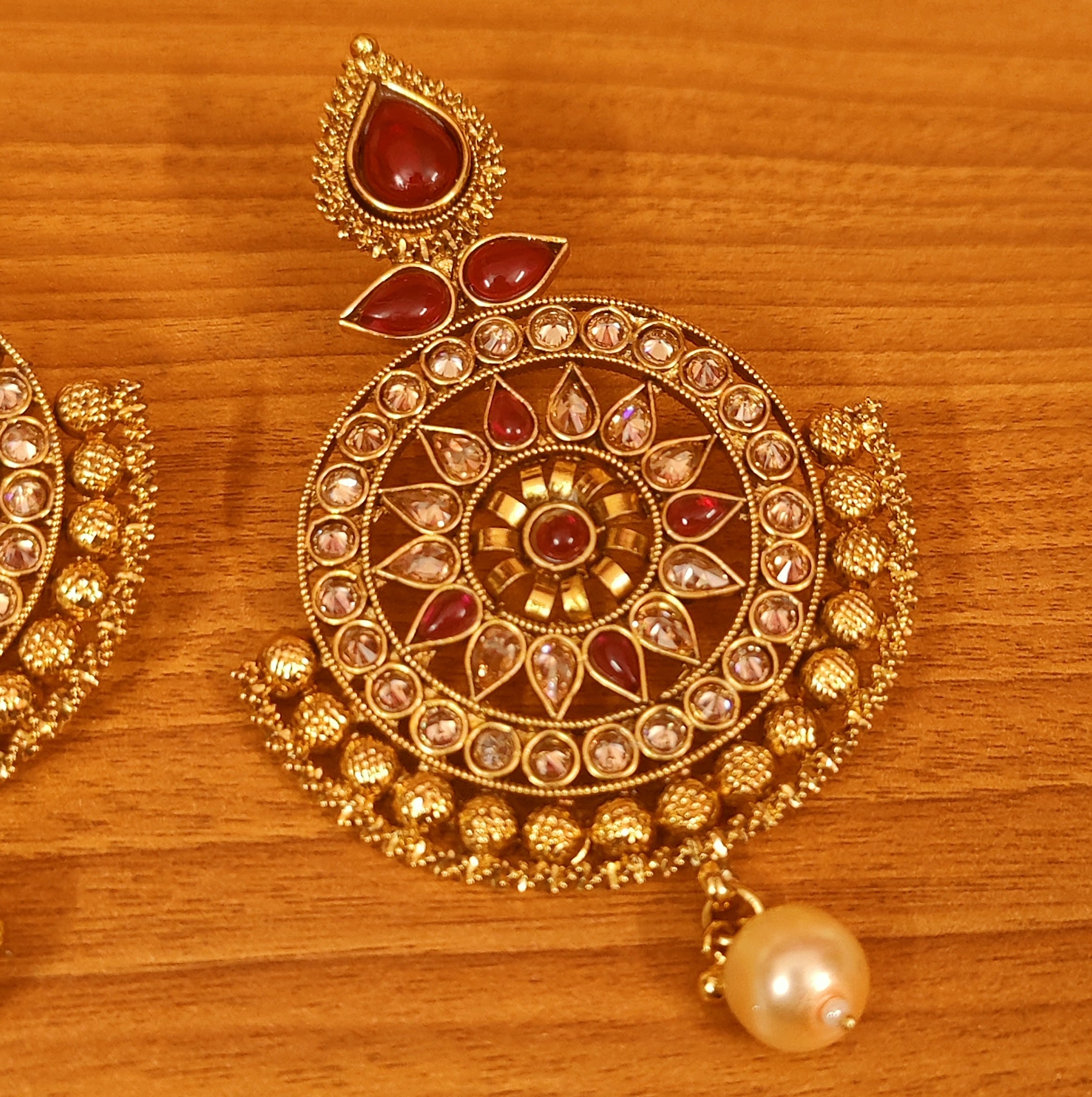 RUBY POLKI STUDDED GOLD LOOK CHANDBALI EARRRINGS