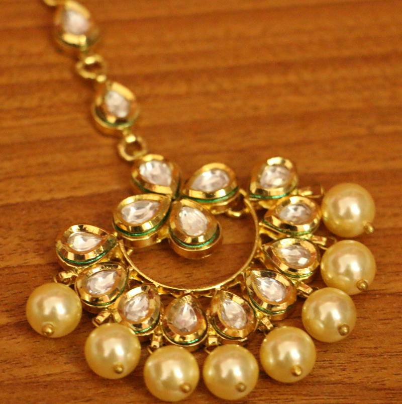 Kundan & Pearl Chaand Baali Maang Tikka