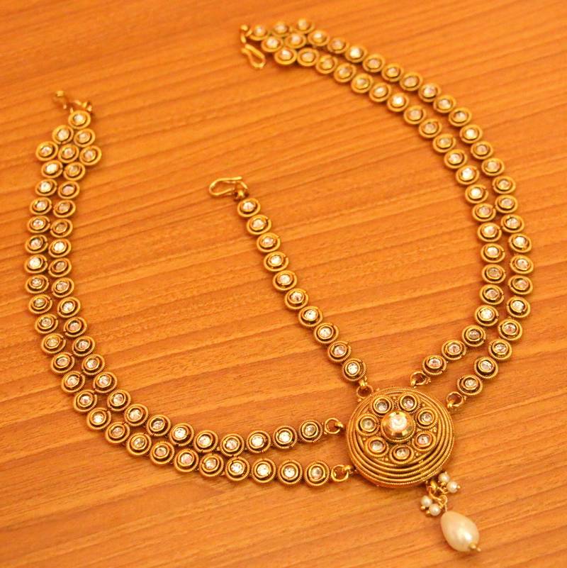 ANTIQUE GOLD ZIRCON AND KUNDAN MAANG TIKKA