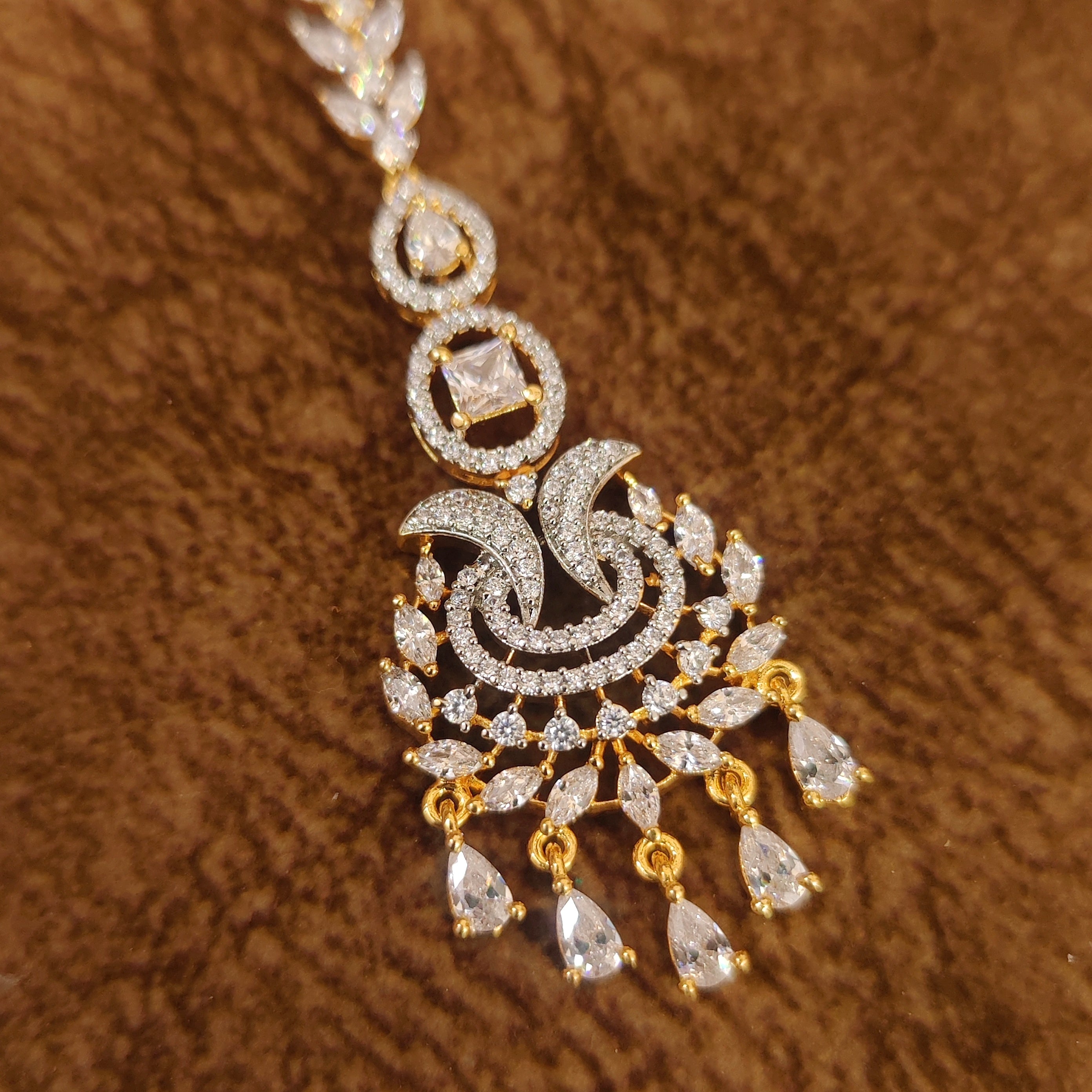 DIAMOND PATTERN GOLD PLATED WEDDING MAANG TIKKA