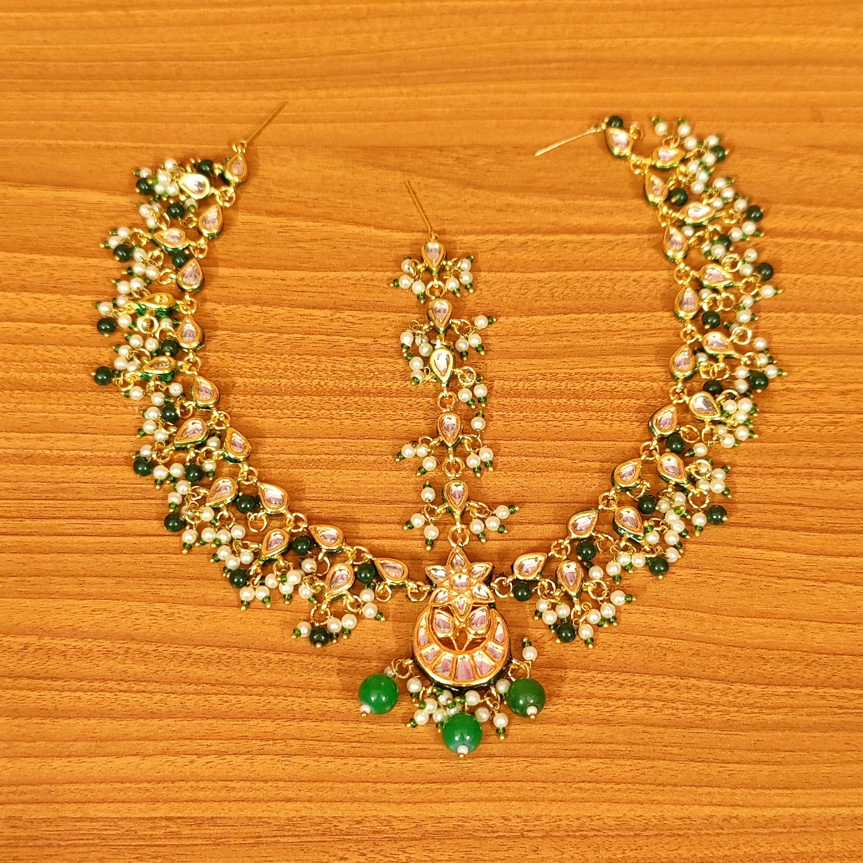 EMERALD LOOK KUNDAN MEENAKARI BRIDAL MATHAPATTI