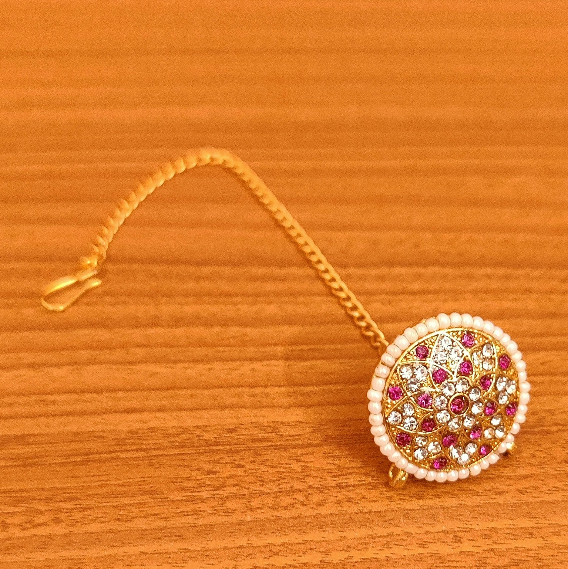 PINK ZIRCON GOLD LOOK WEDDING MAANG TIKKA