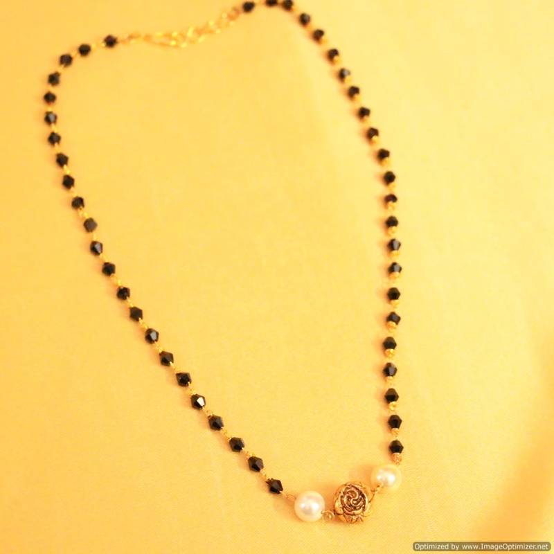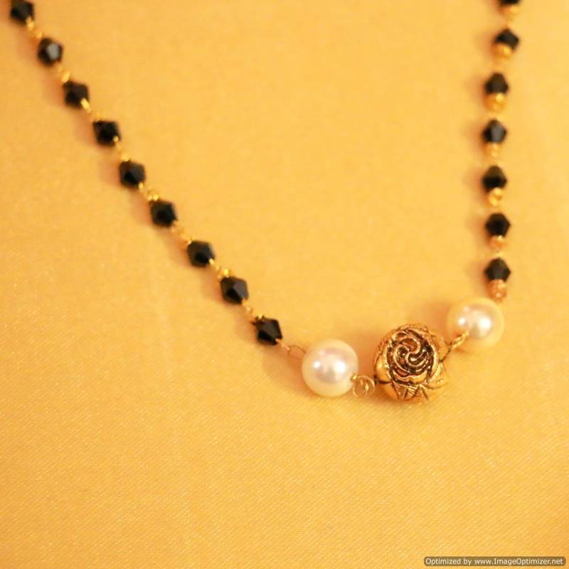 This beautiful mangalsutra is handcrafted in copper alloy with imitation black onyx & pearls of very fine quality . This mangalsutra is coated with 18 kt gold polish which give them a unique look . An absolutely stunning piece to own and are very light in weight. ** All Jewelry is completely inspected for every crystal and bead before we send it out,each piece is carefully packaged to reach you safely. and comes in a BOX.**