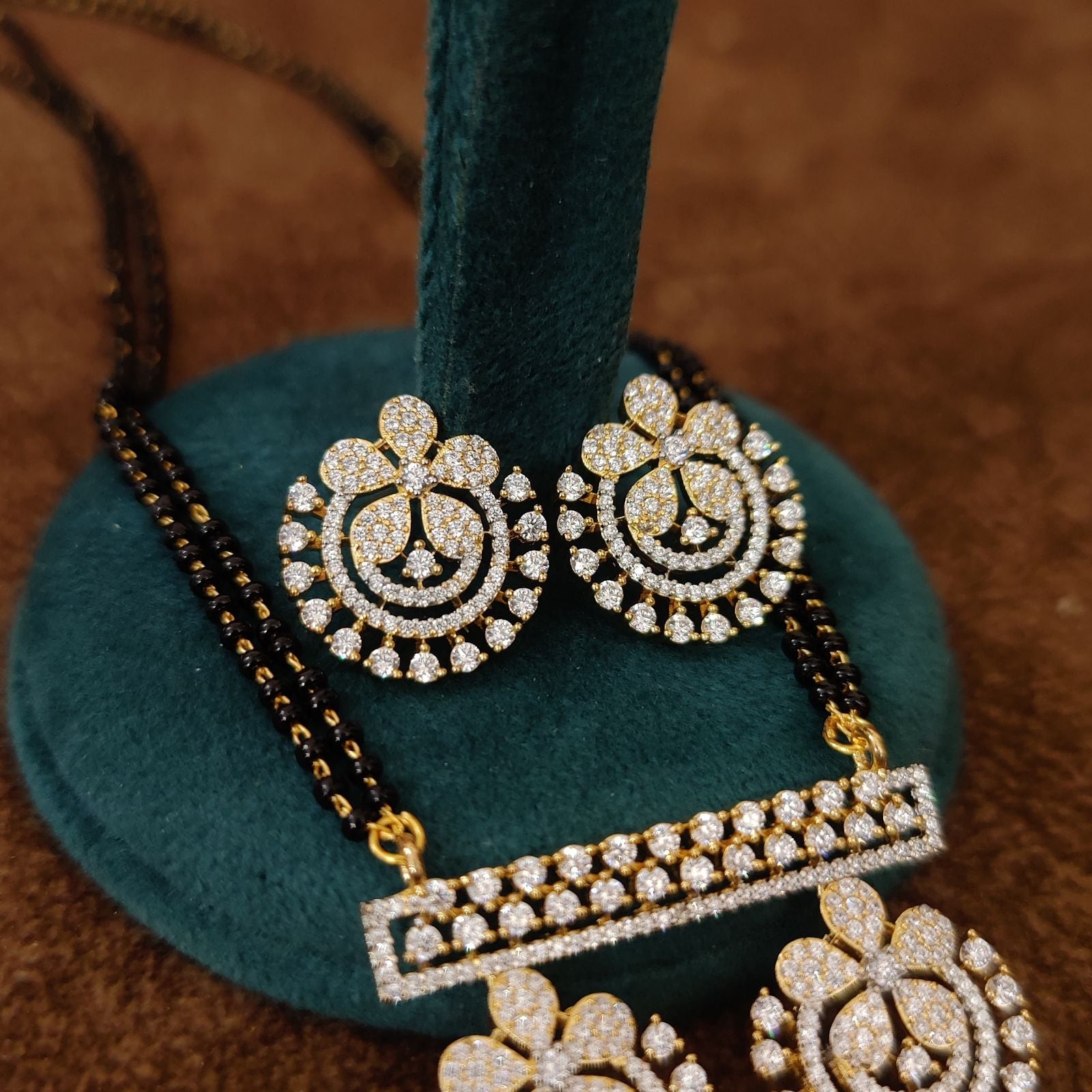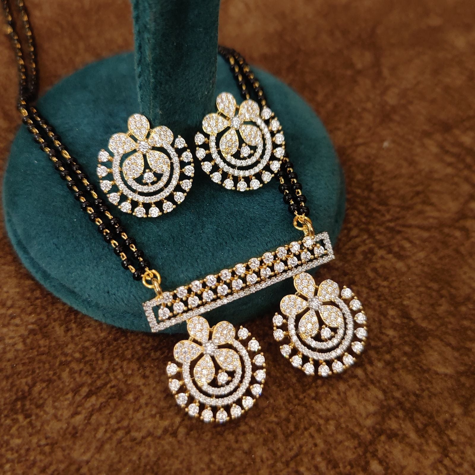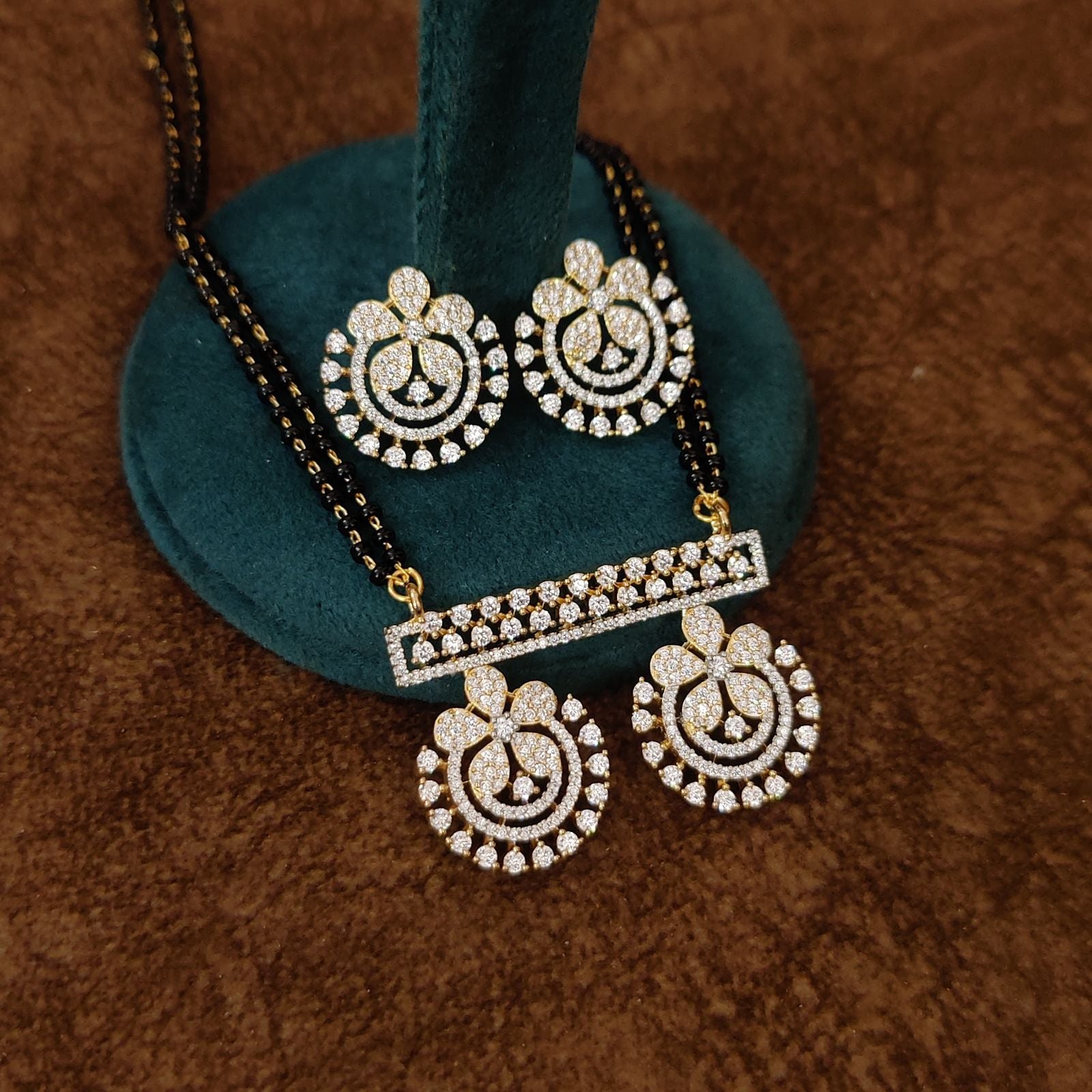 • Gold Plated Mangalsutra with Earrings – Real diamond look with premium CZ stones