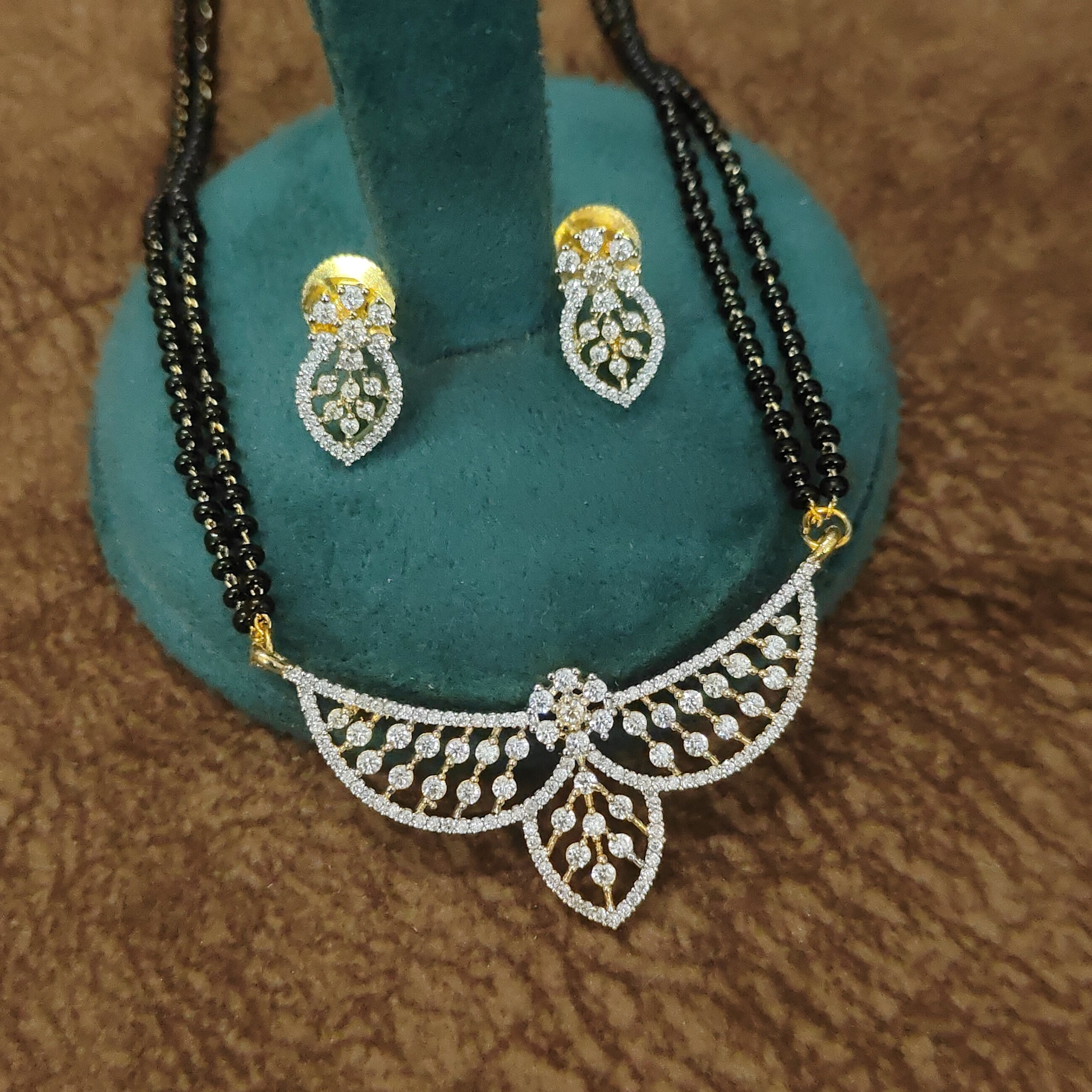 Elegant CZ Diamond Look Black Beads Mangalsutra Set