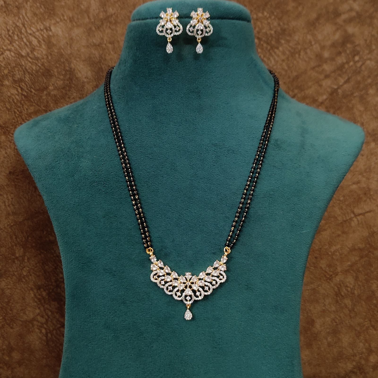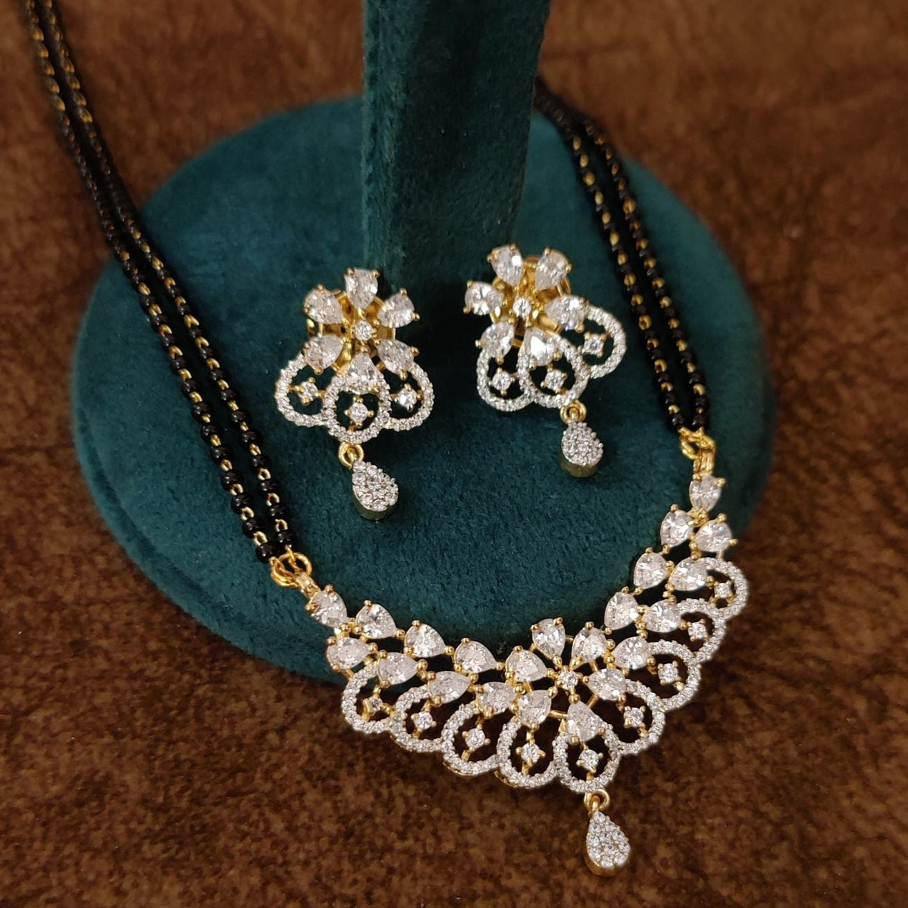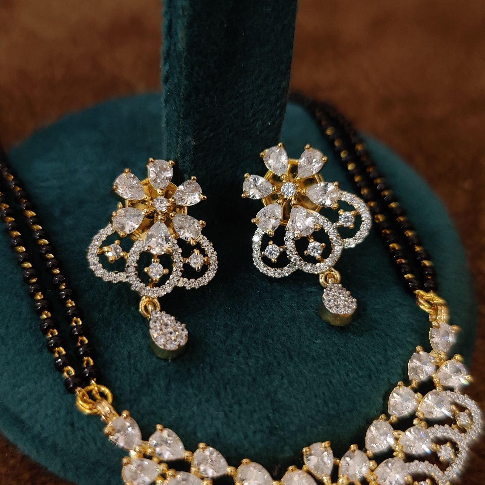 Floral CZ Diamond Look Mangalsutra with Earrings
