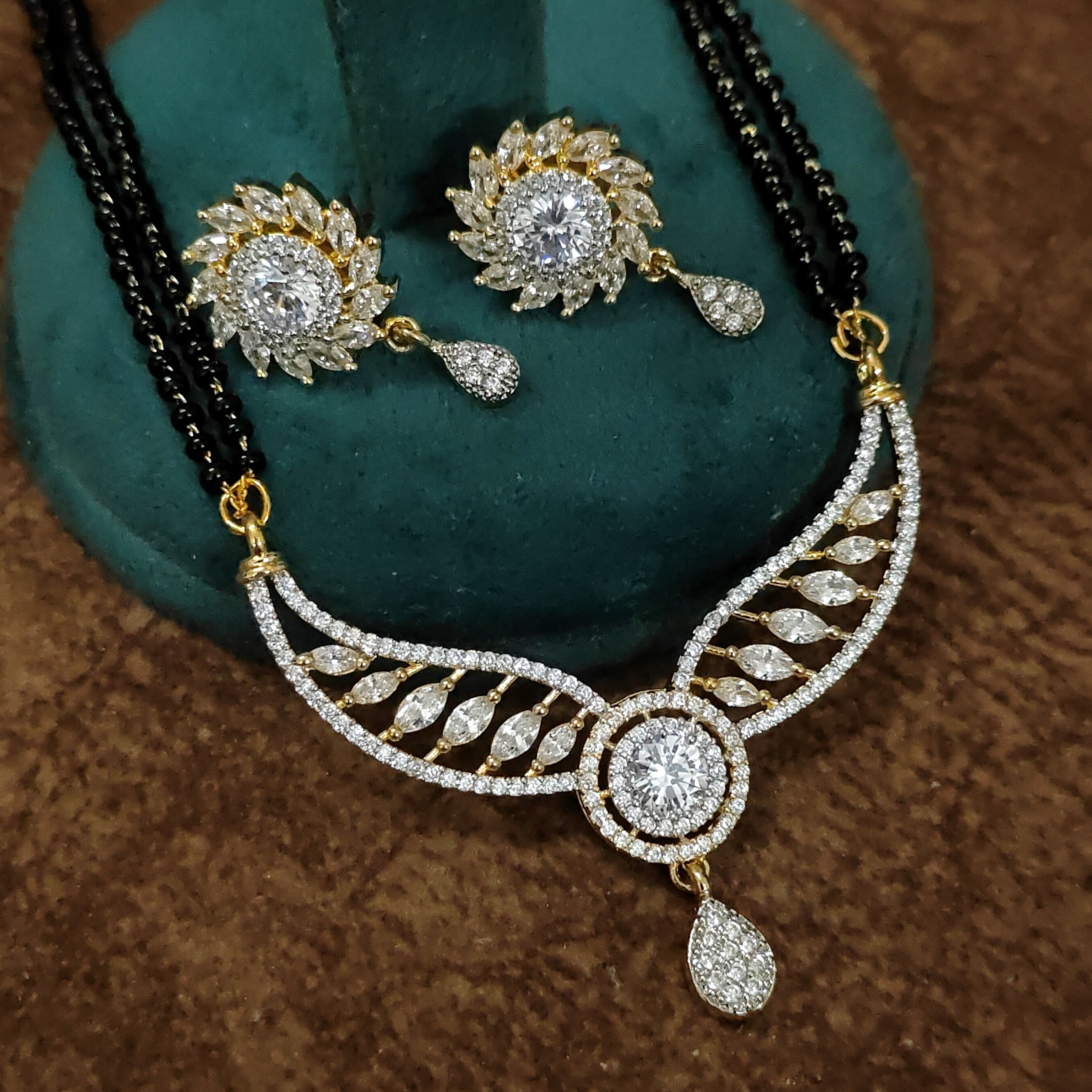 Sparkling Round Solitaire CZ Marquise Mangalsutra Set with Earrings