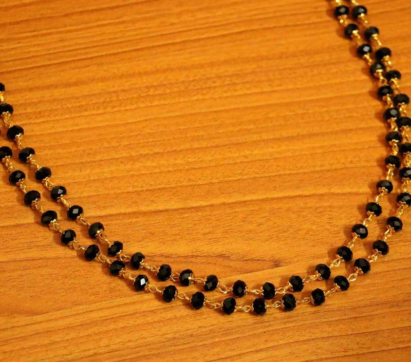 This beautiful necklace is handcrafted in copper alloy with imitation black crystal work of very fine quality . This necklace is coated with 18 kt gold polish which give them a unique look . An absolutely stunning piece to own and are very light in weight.