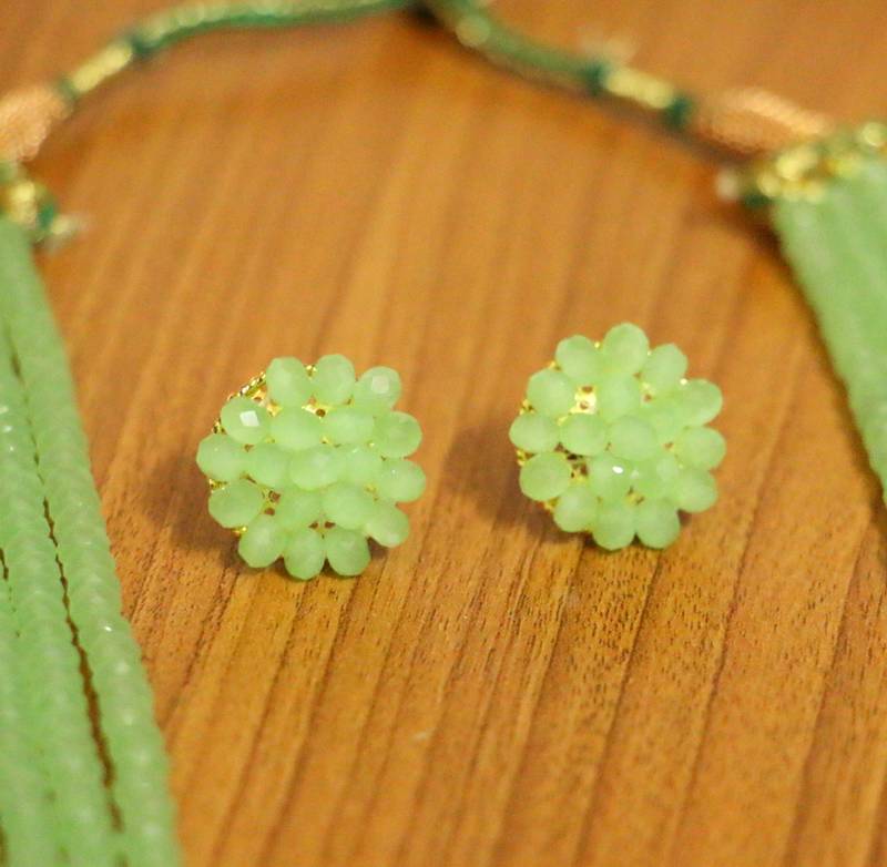 This necklace set is handcrafted with imitation lemon green swarowski crystals of very fine quality . This 5 layered necklace set which give you a complete new look . An absolutely stunning piece to own and are very light in weight.