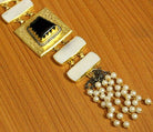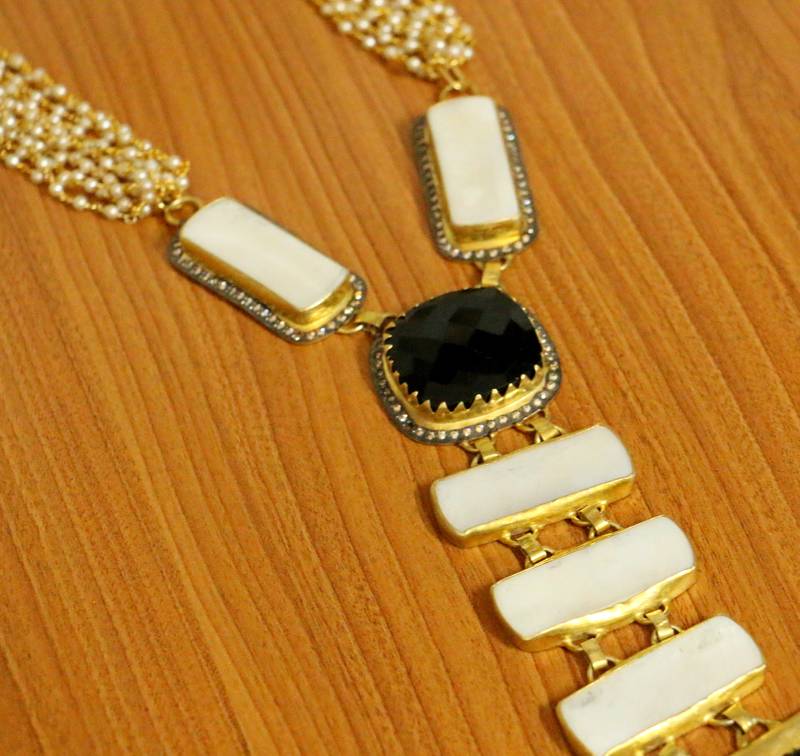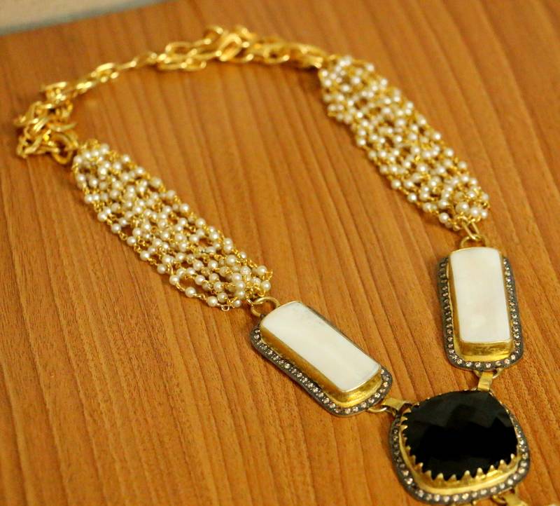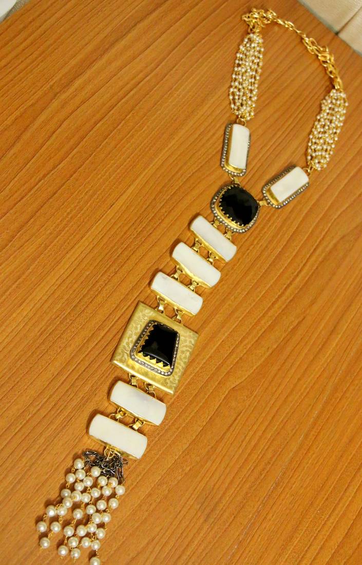This beautiful necklace is handcrafted in brass alloy with imitation black onyx & pearl of very fine quality . This necklace which give them a unique look . An absolutely stunning piece to own and are very light in weight.