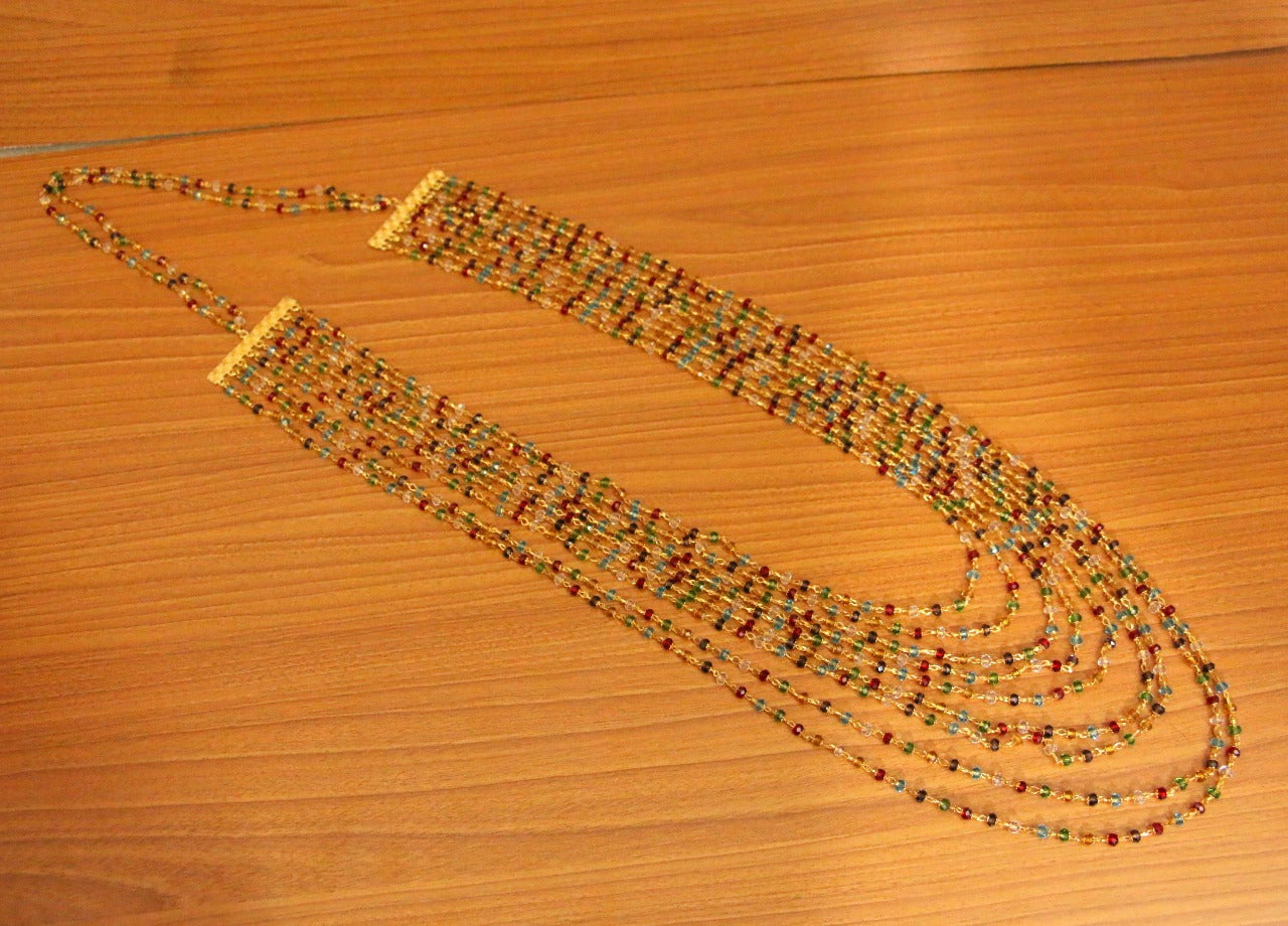 Multicolour Crystal Beads 9 Line Ethnic Necklace