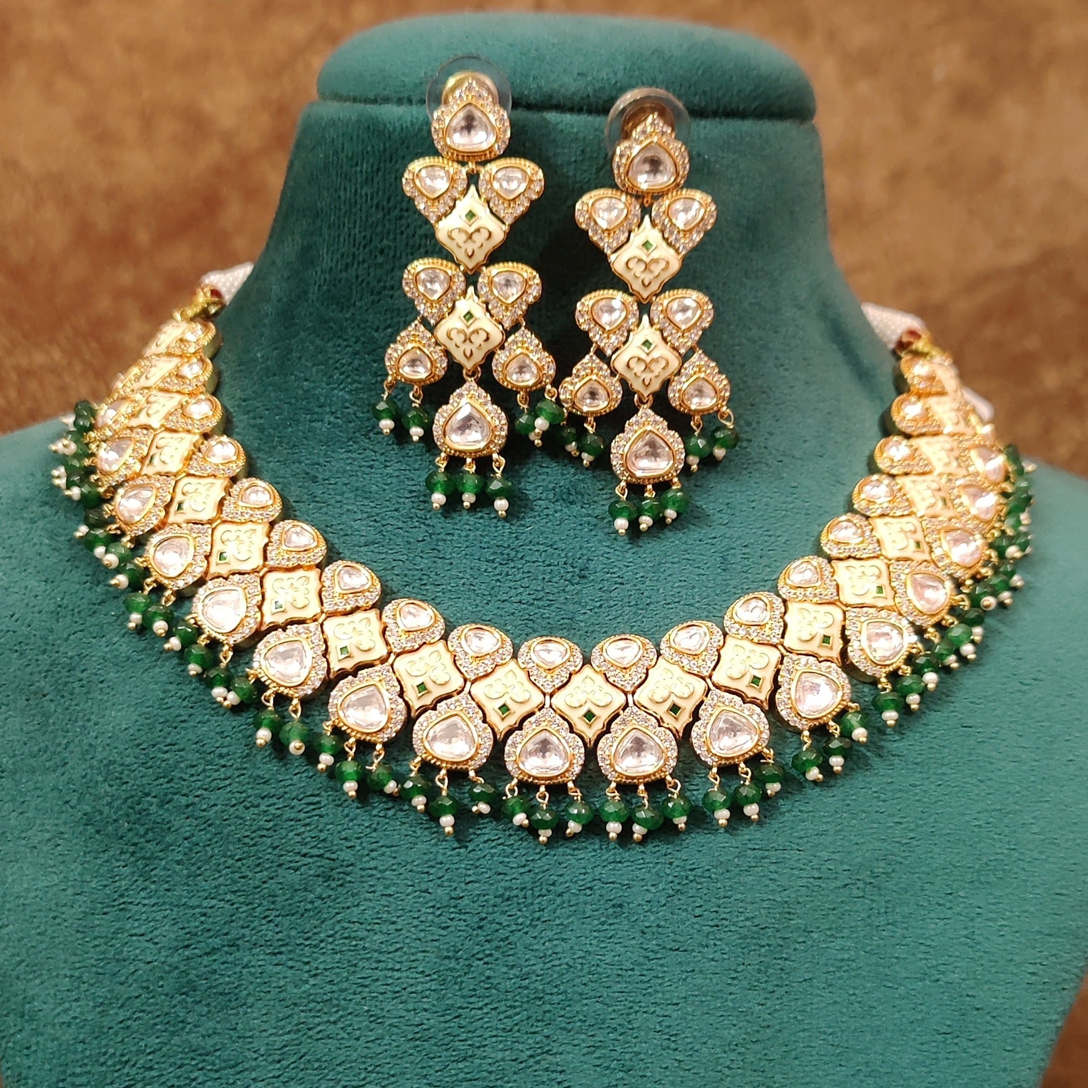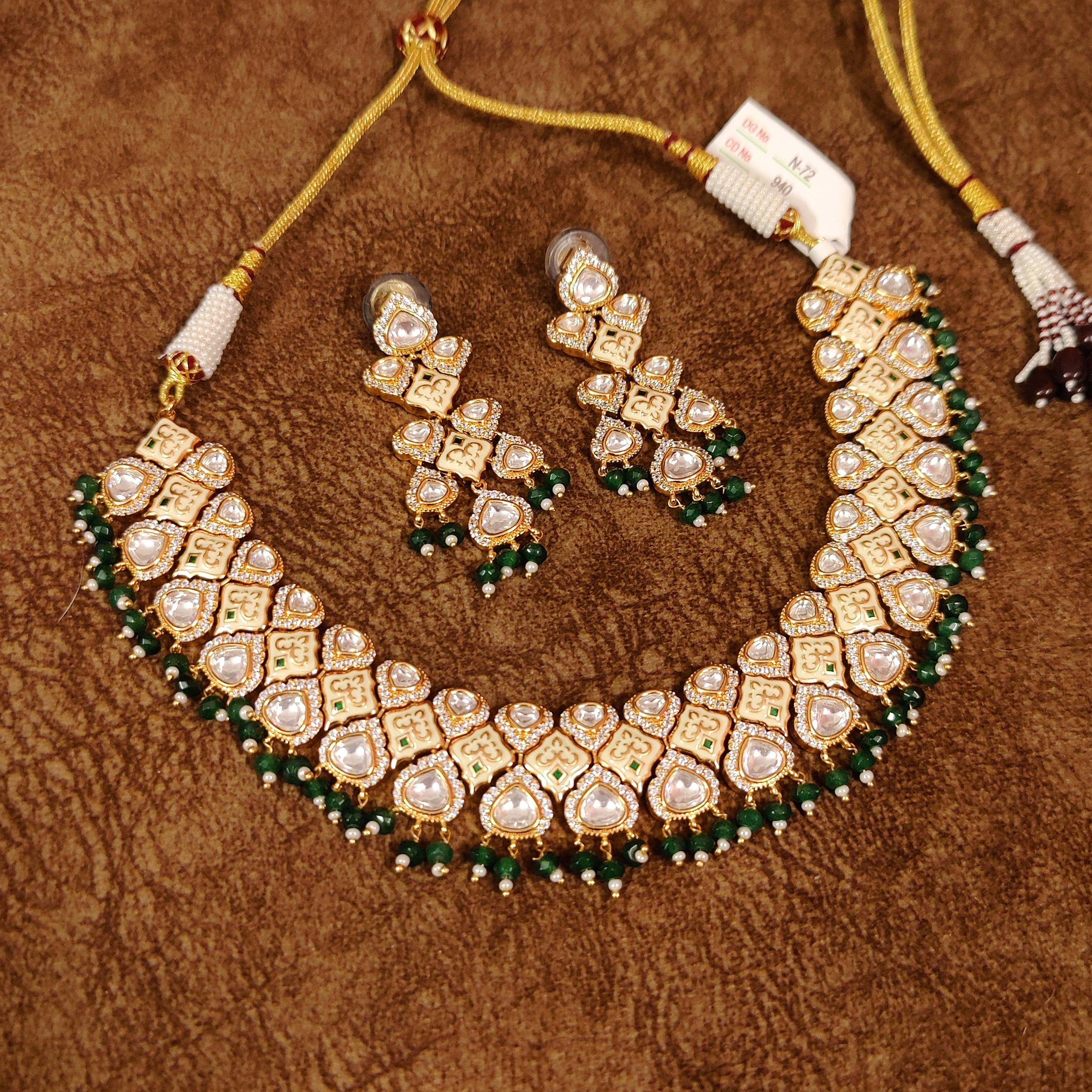EMERALD LOOK KUNDAN POLKI WEDDING NECKLACE SET