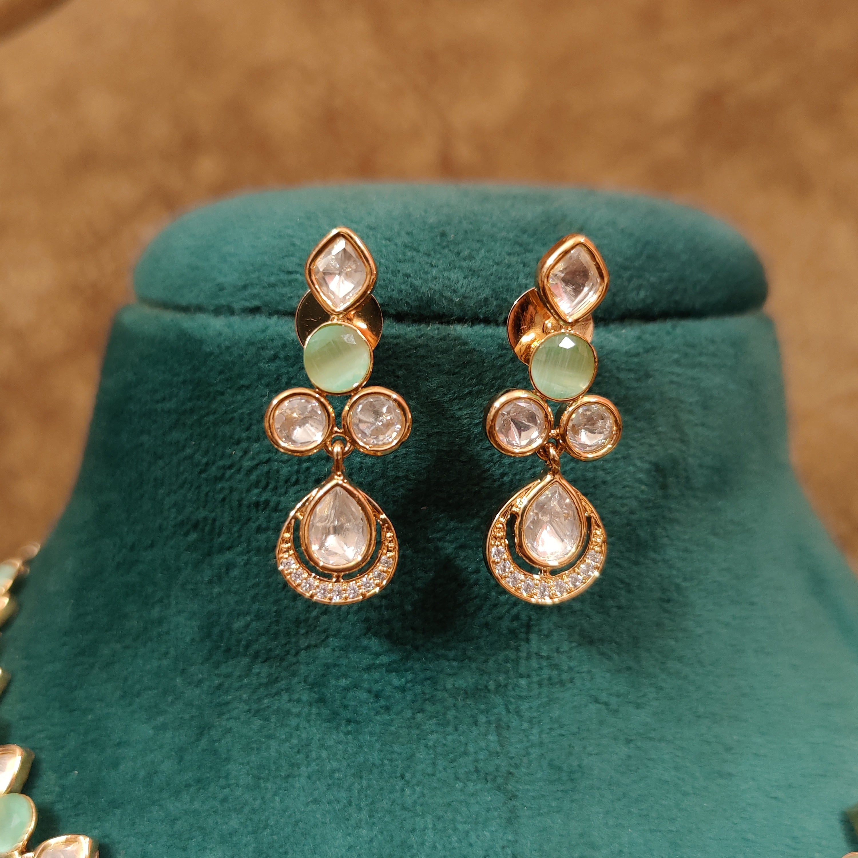 MINT GREEN KUNDAN POLKI & CZ STONES NECKLACE SET