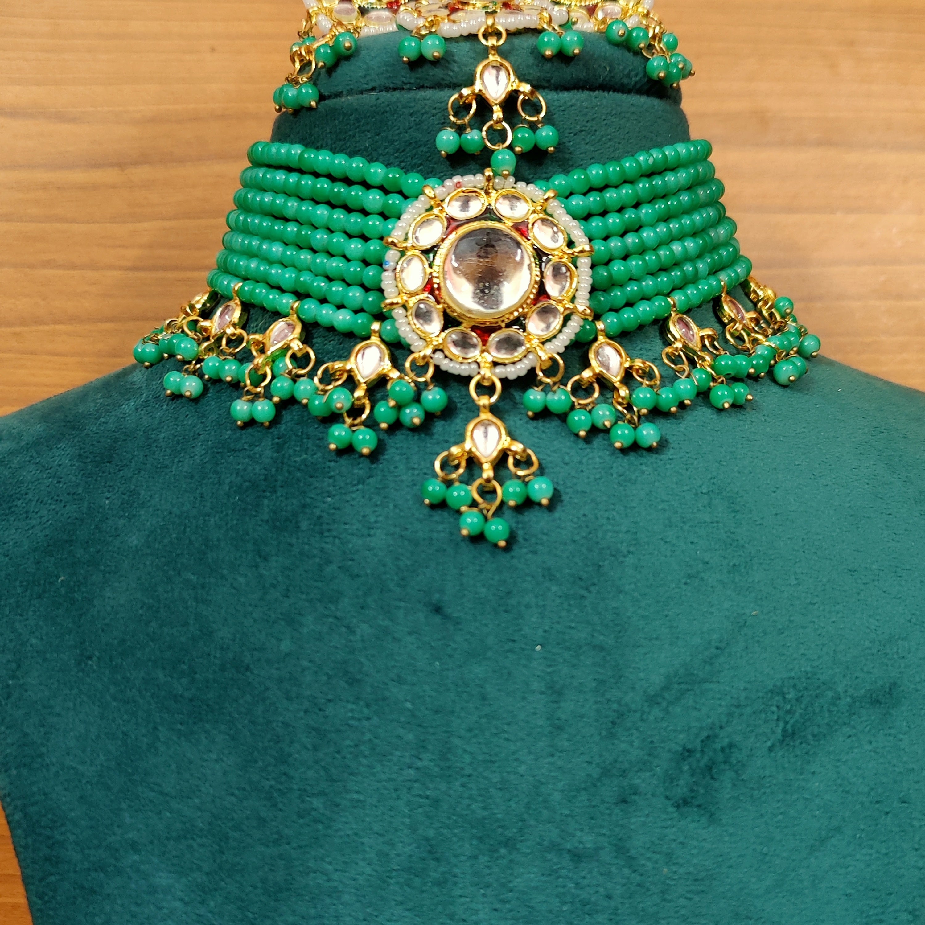 KUNDAN POLKI & MEENAKARI EMERALD LOOK CHOKER NECKLACE SET