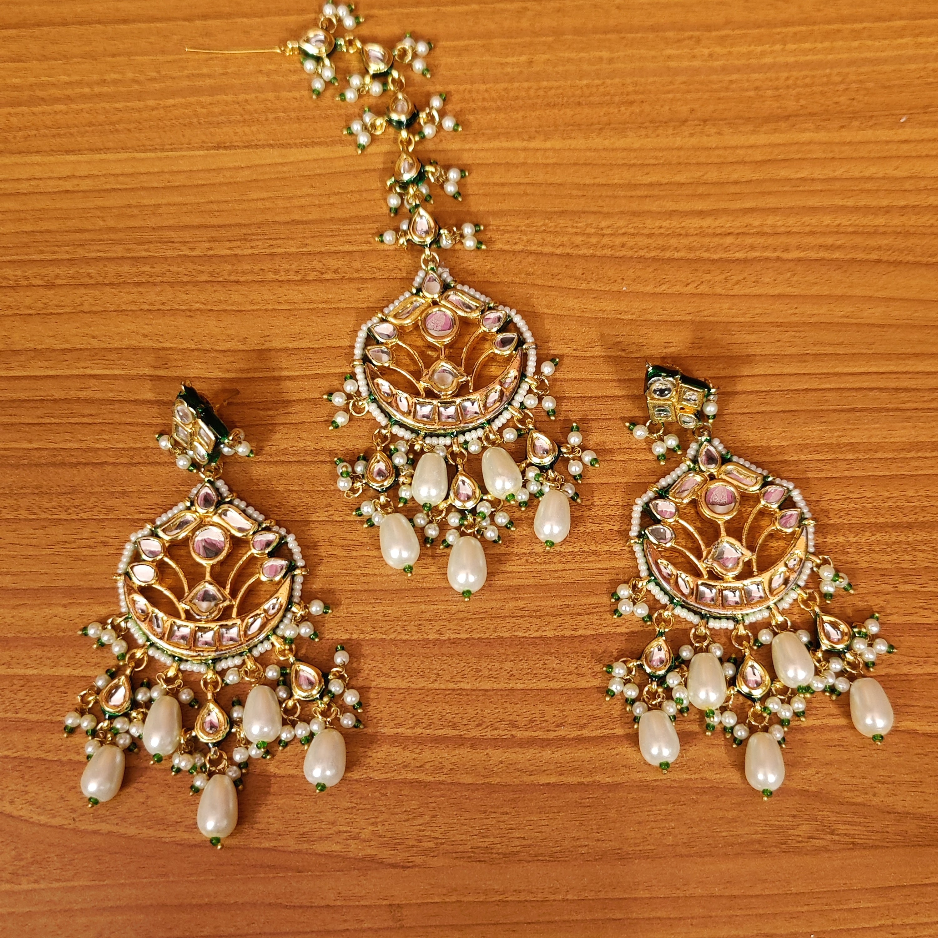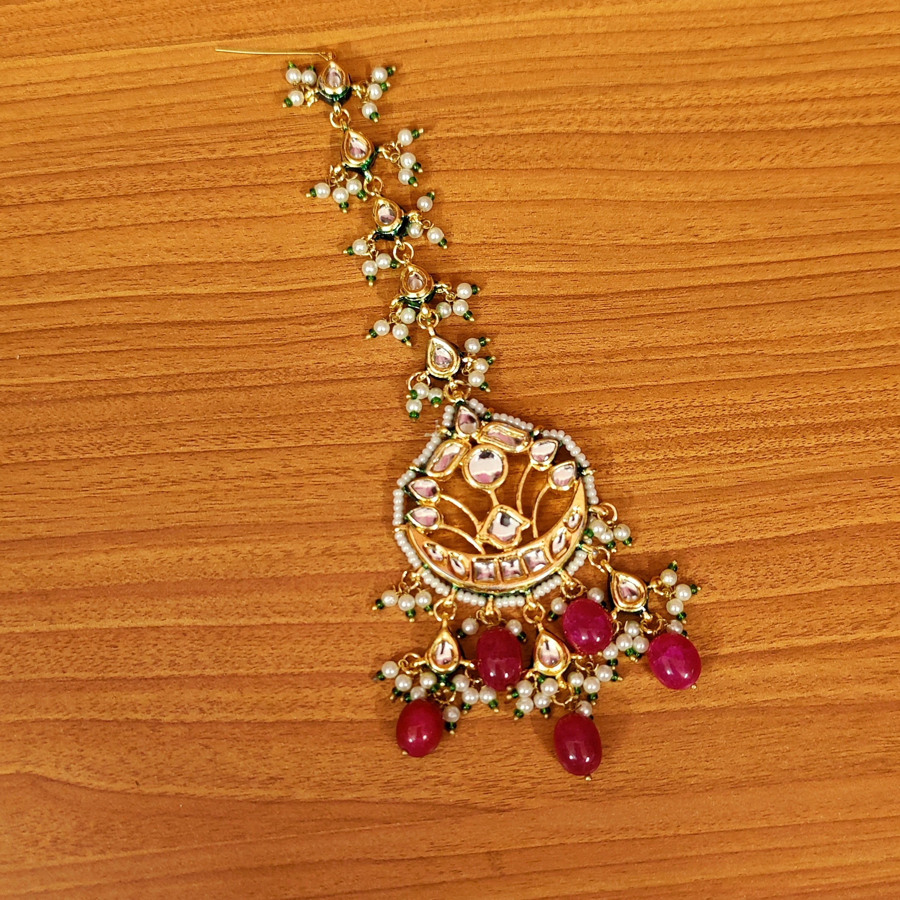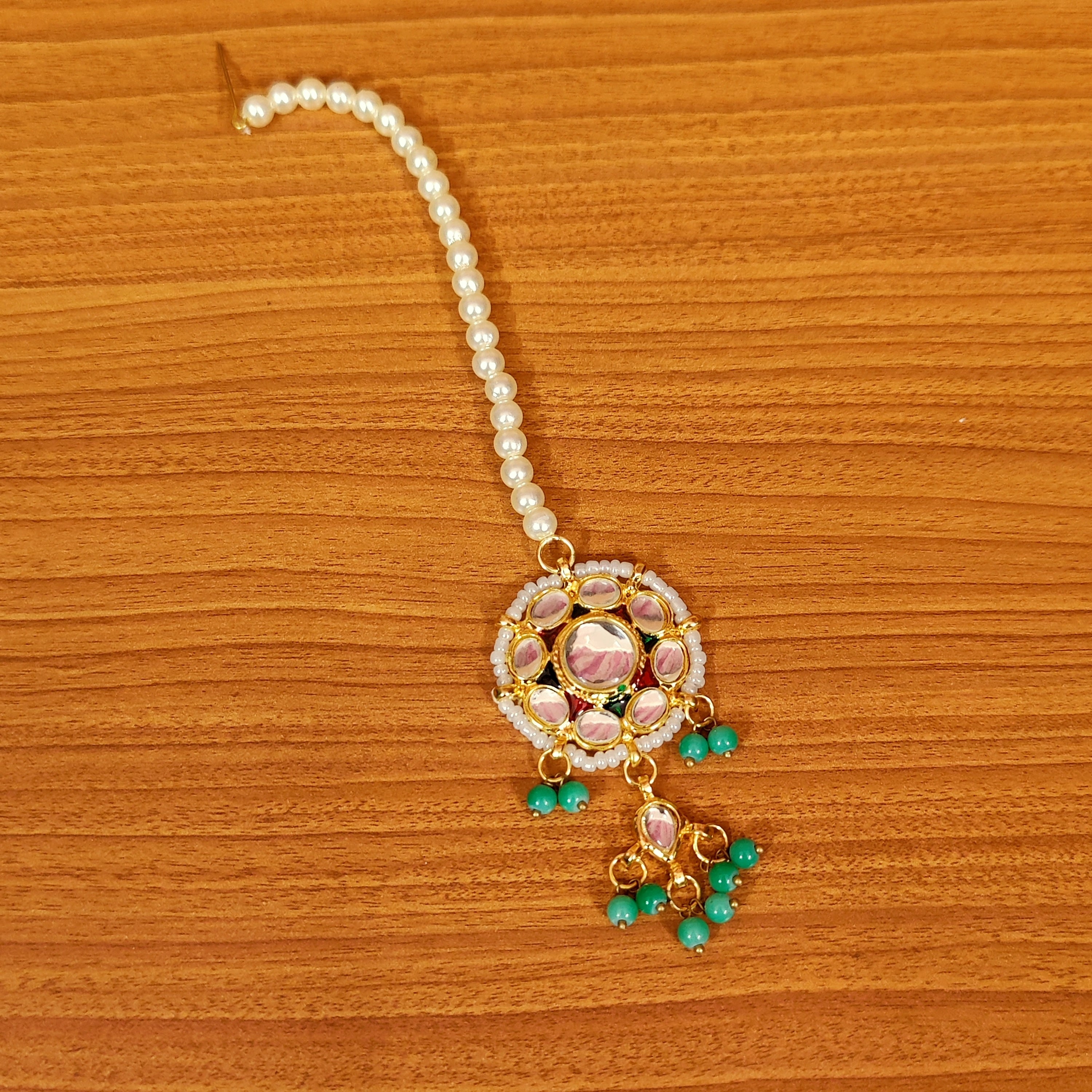 KUNDAN & POLKI MEENAKARI WEDDING LOOK MAANG TIKKA NECKLACE SET