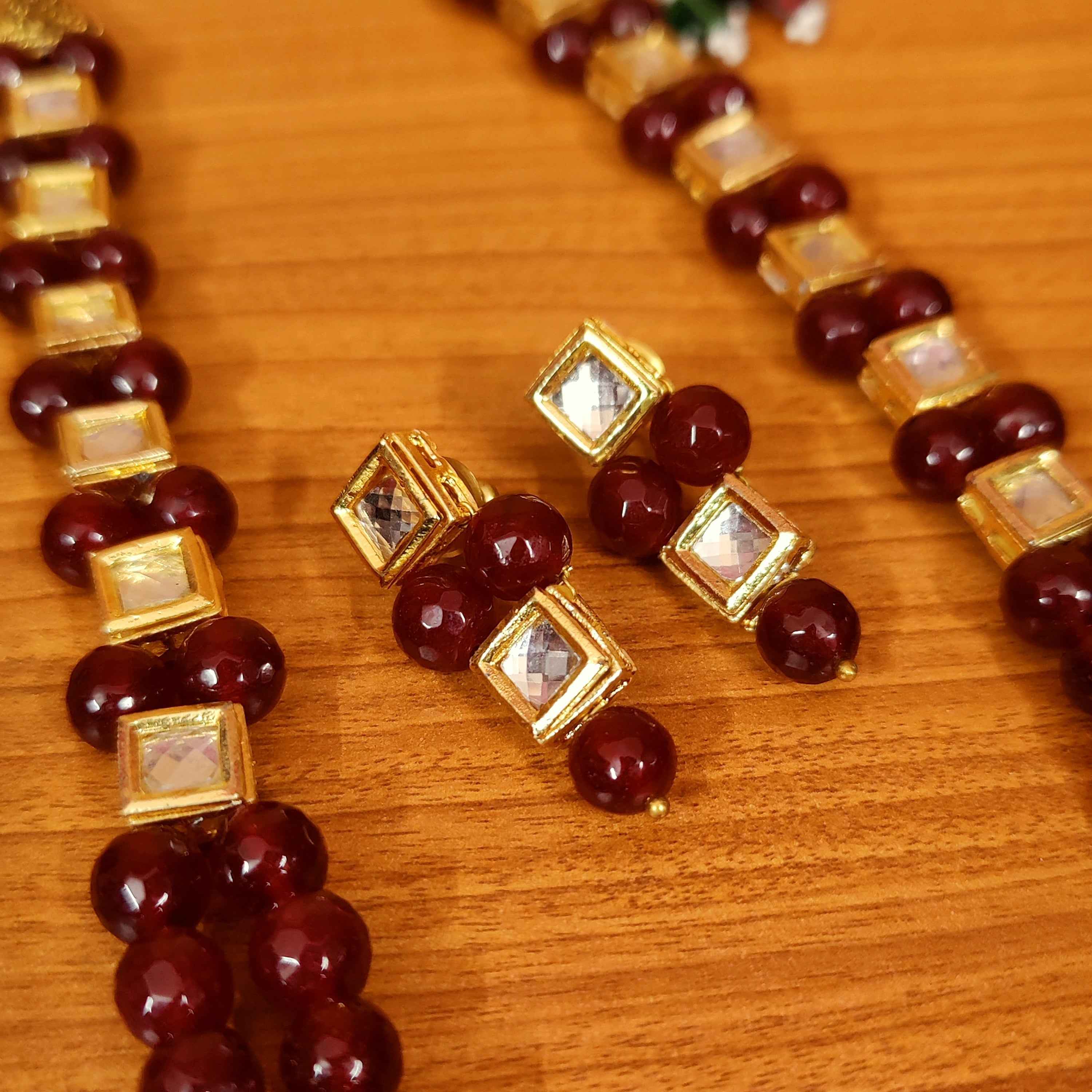 UNCUT SHAPE KUNDAN POLKI RUBY NECKLACE SET