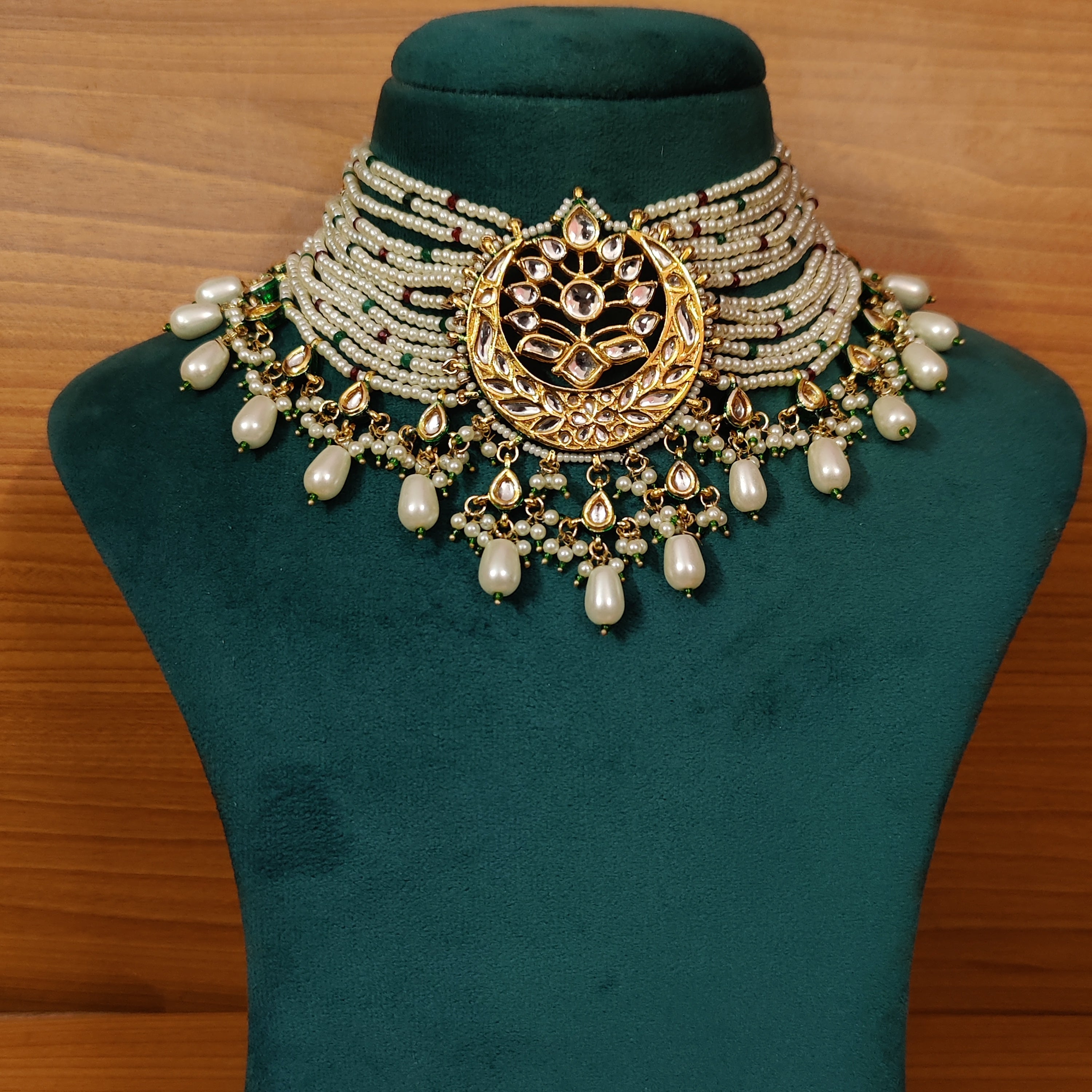KUNDAN POLKI & MEENAKARI PEARL CHOKER NECKLACE SET