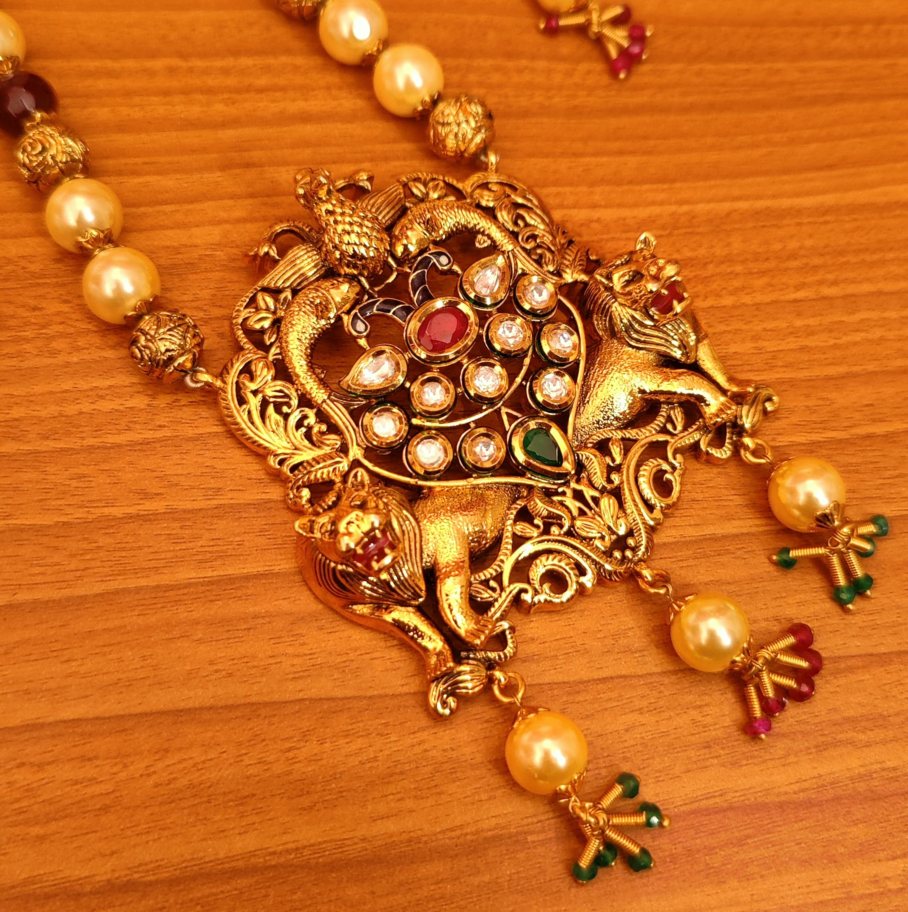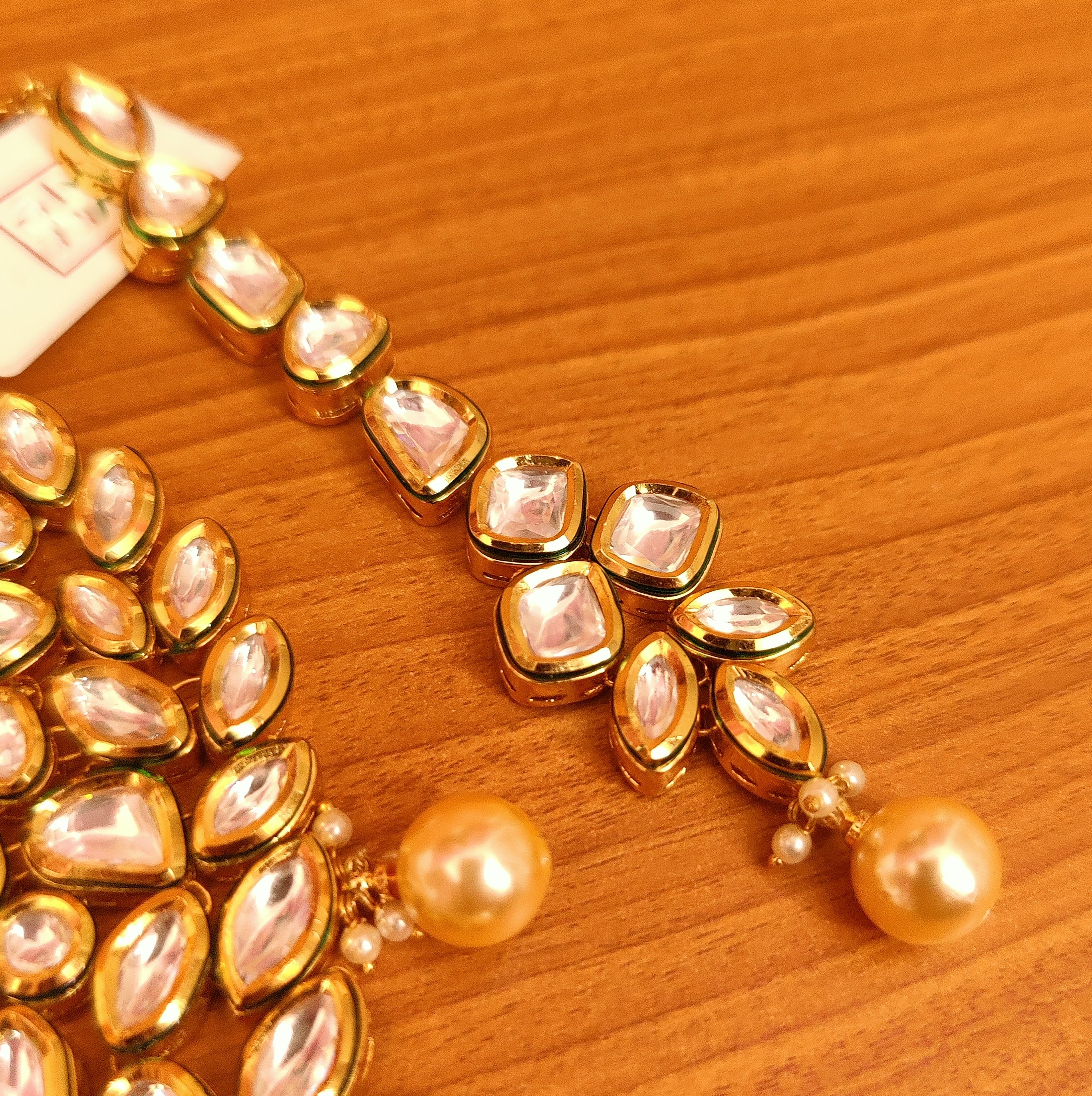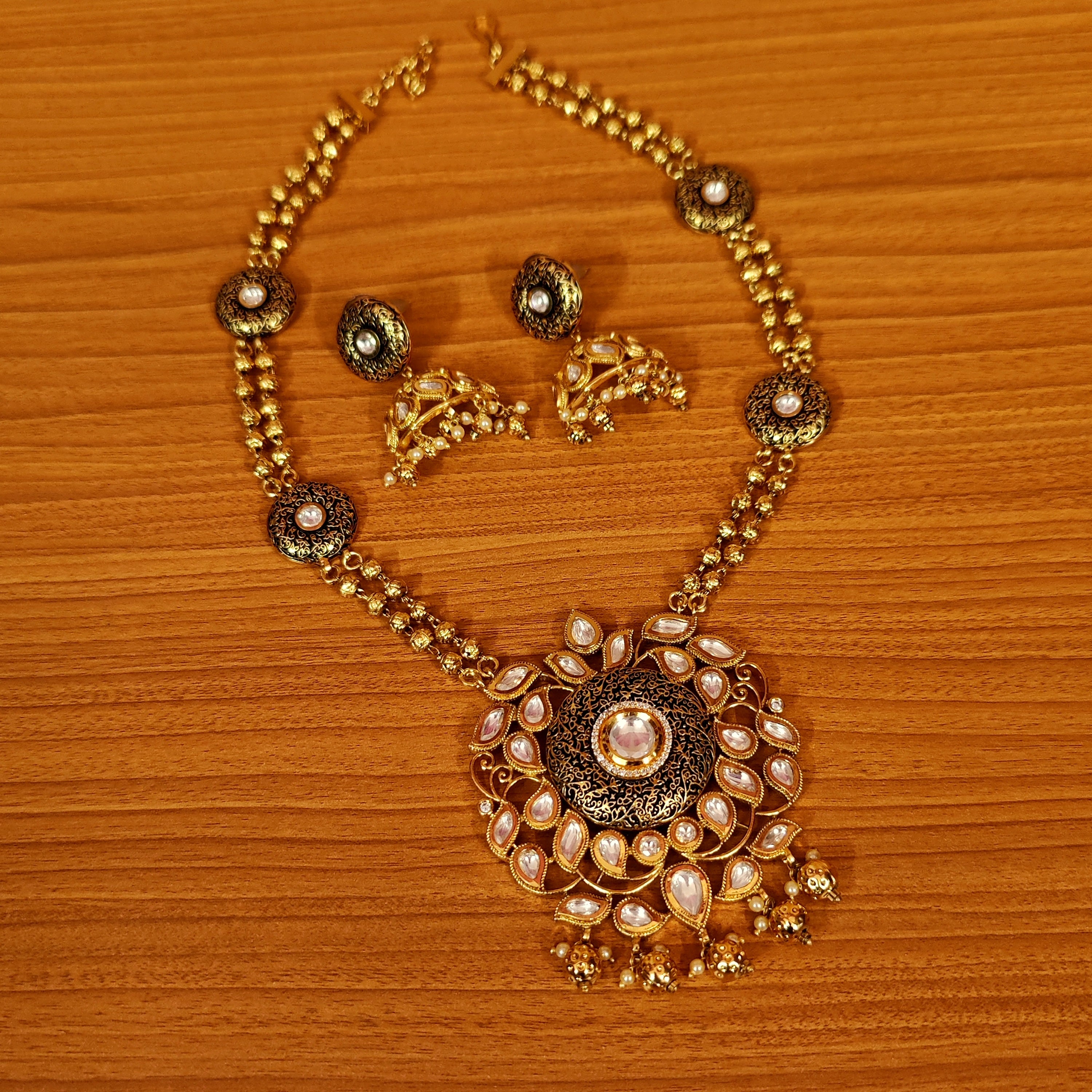 ANTIQUE KUNDAN POLKI PEARL GOLD LOOK NECKLACE SET