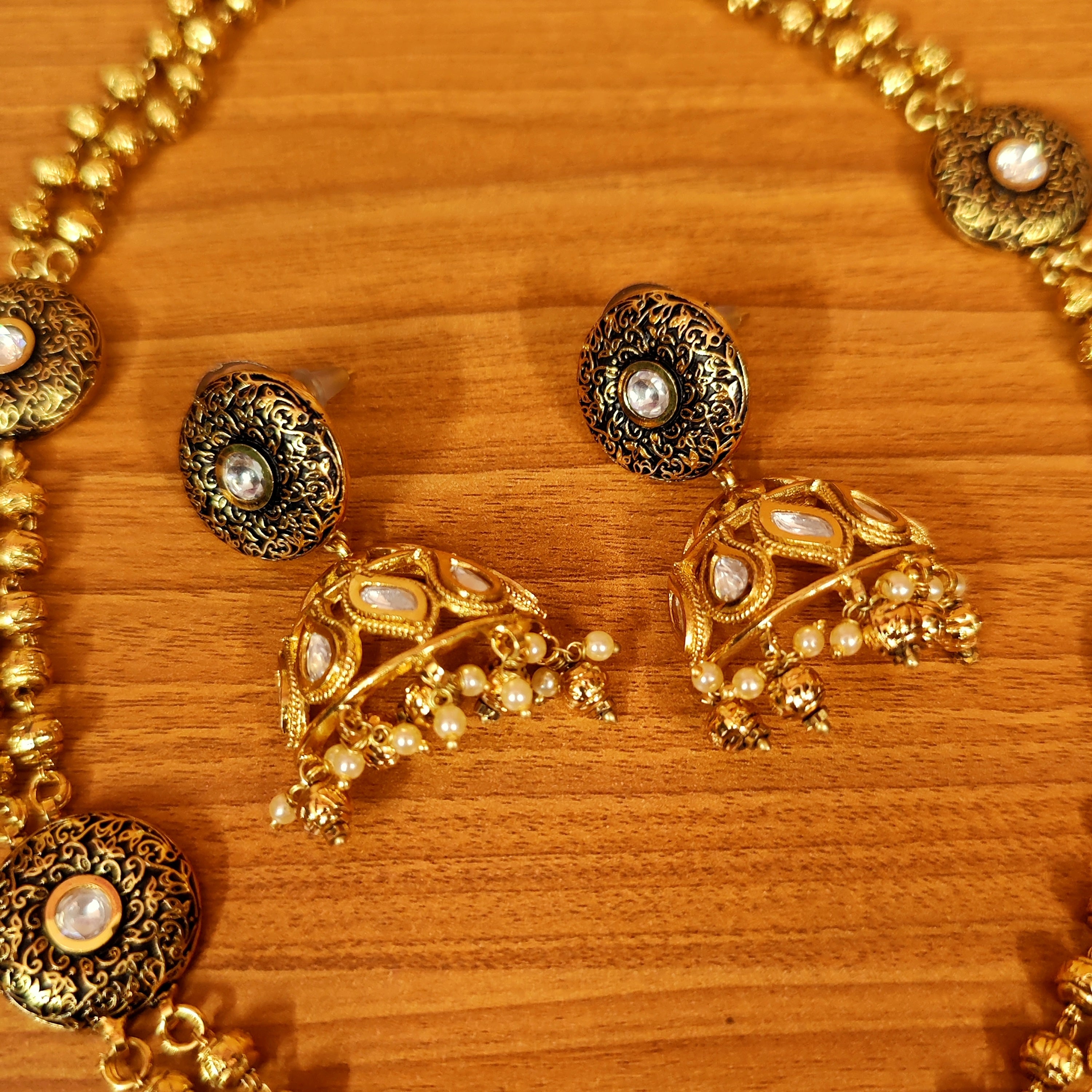 ANTIQUE KUNDAN POLKI GOLD LOOK NECKLACE SET