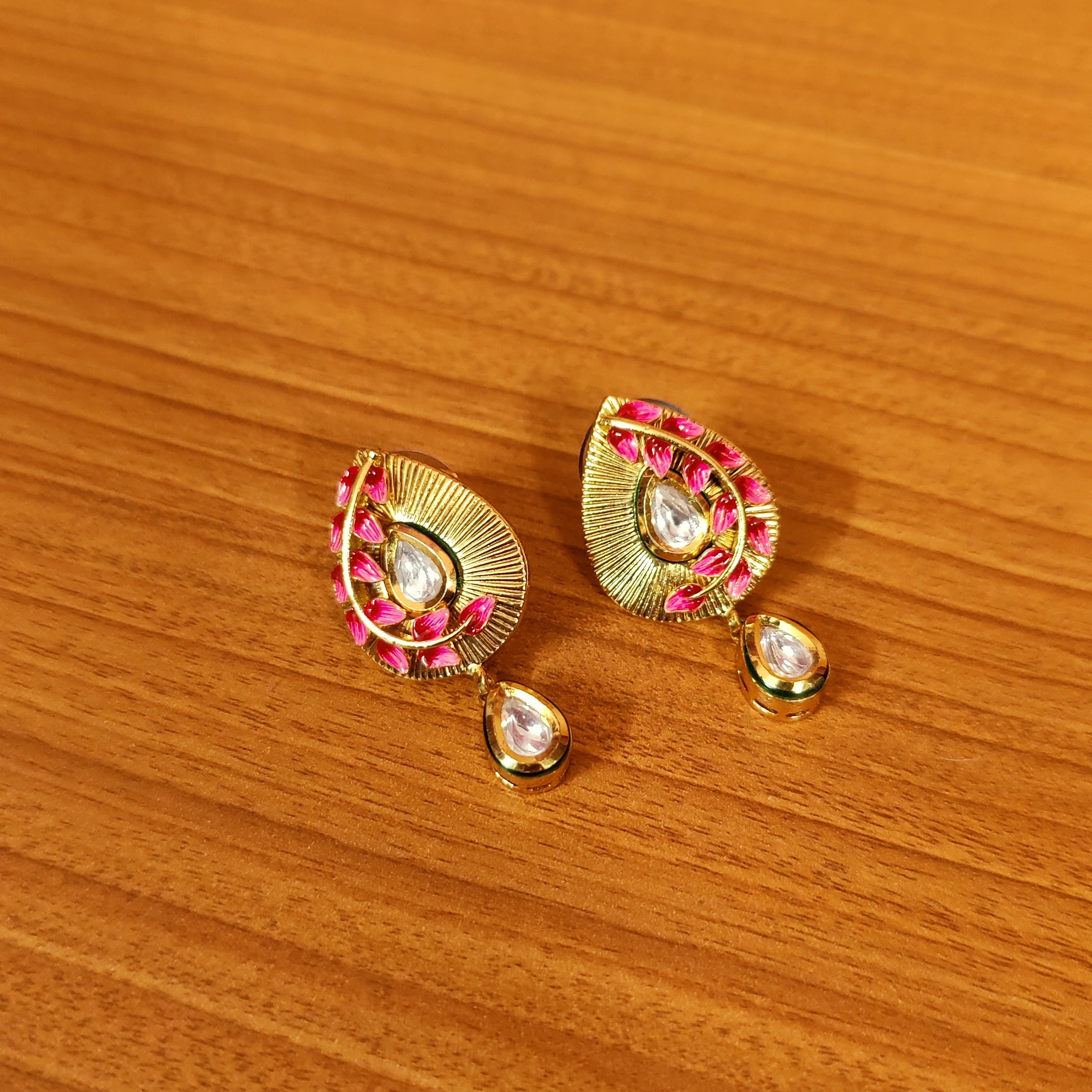PEAR SHAPED KUNDAN POLKI MEENAKARI SINGLE LINE NECKLACE SET