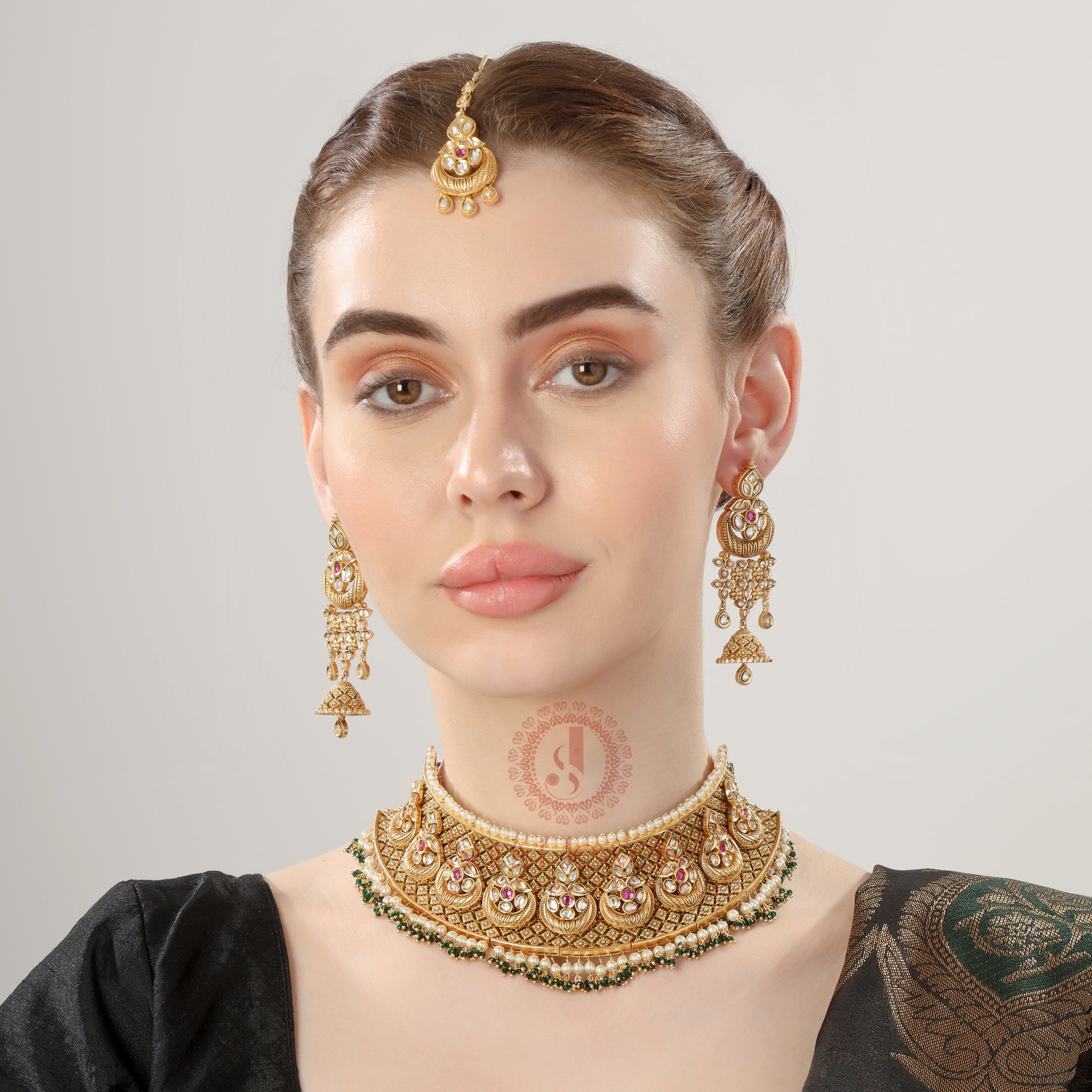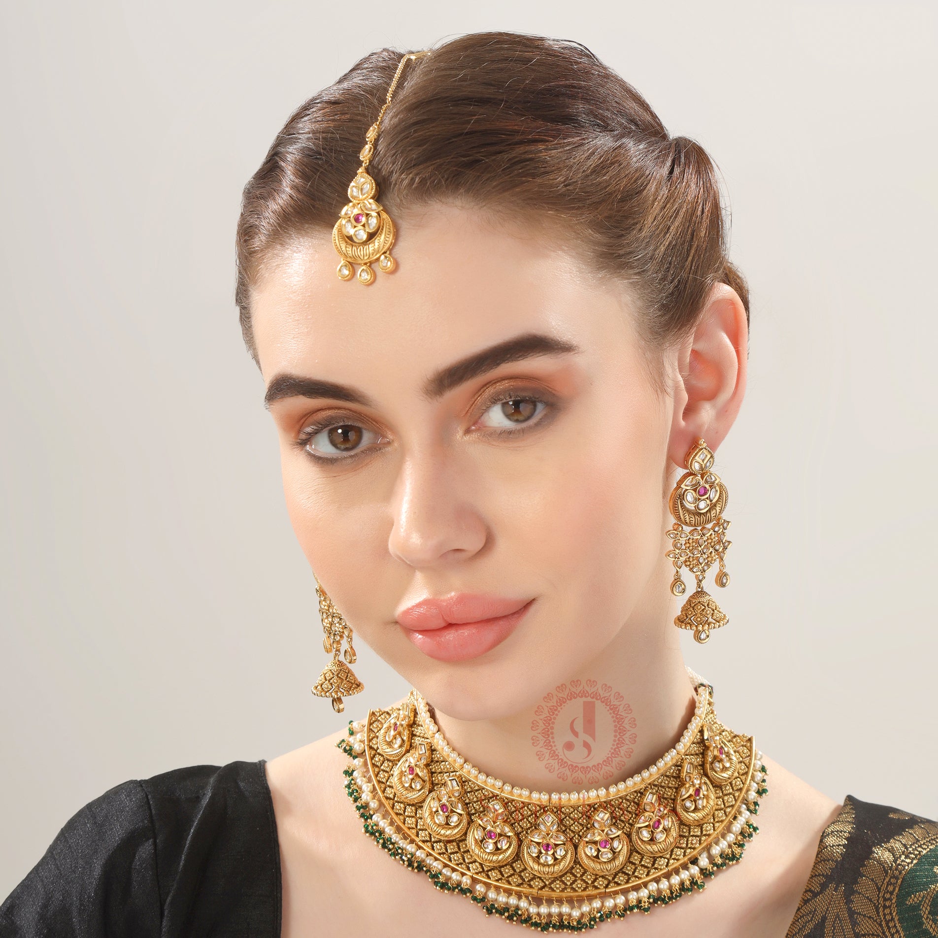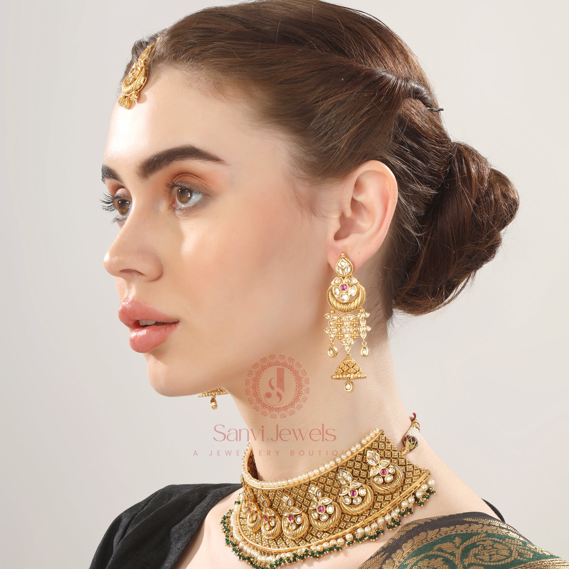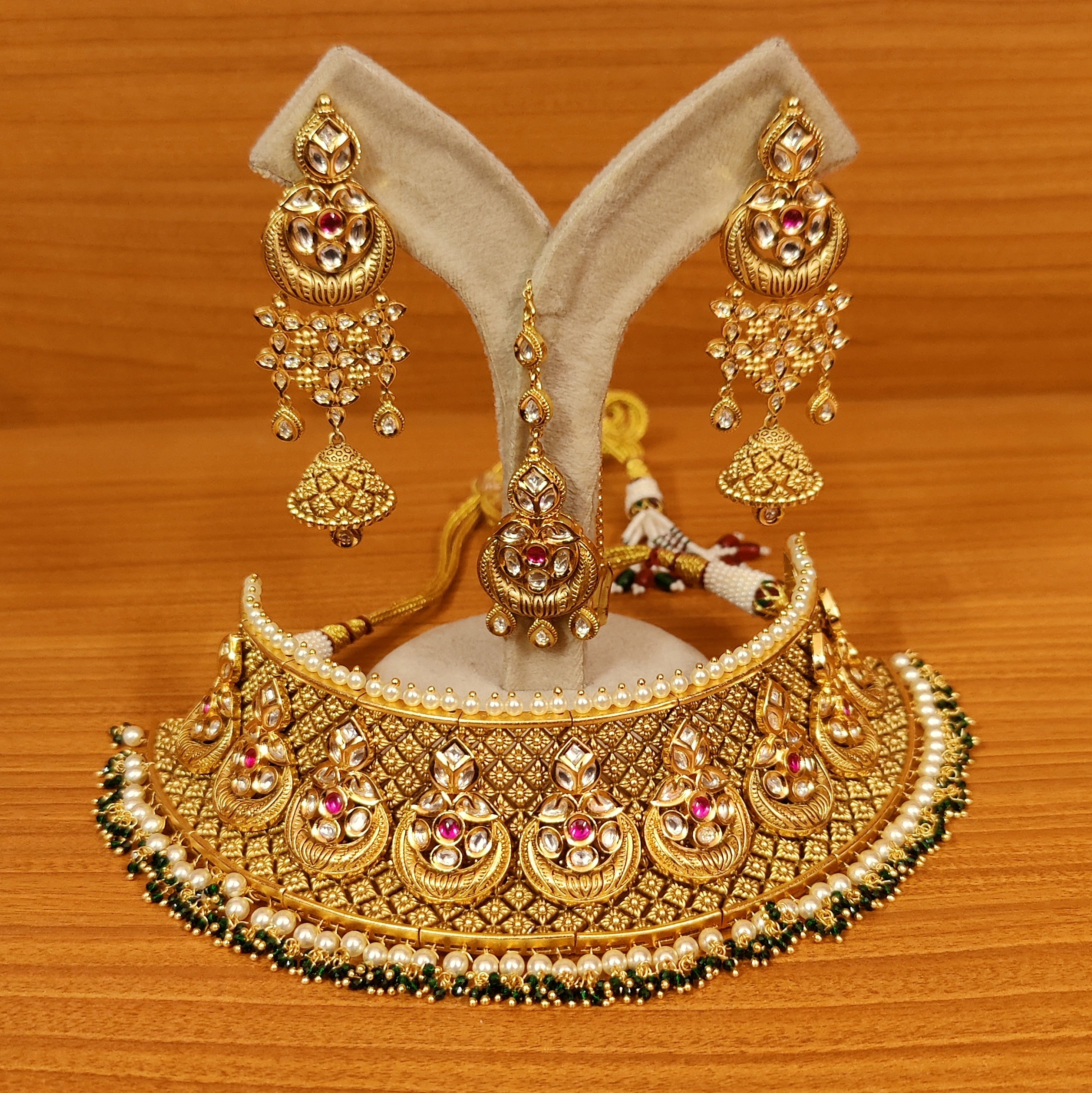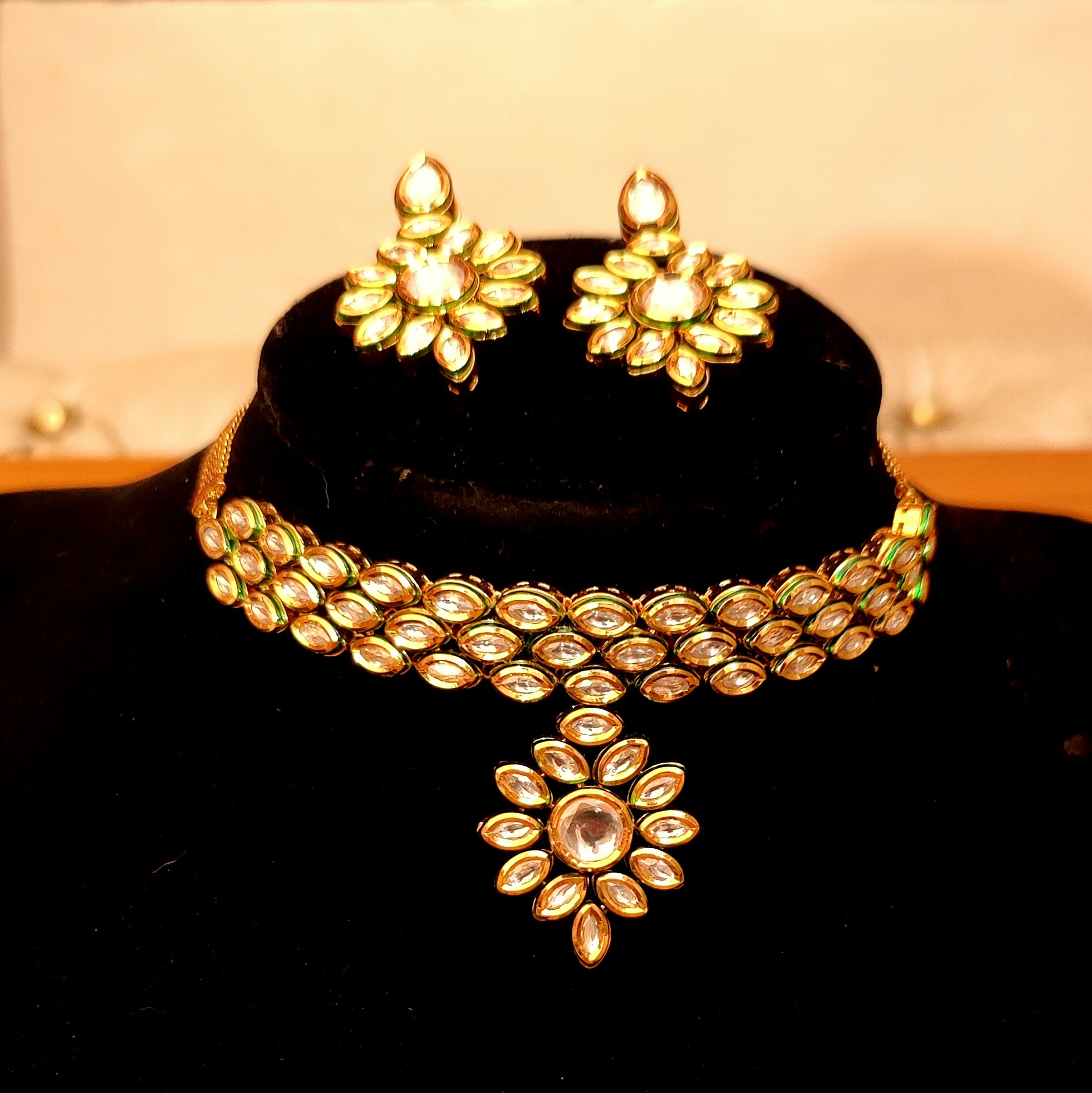 REAL GOLD LOOK HANDCRAFTED KUNDAN POLKI CHOKER SET
