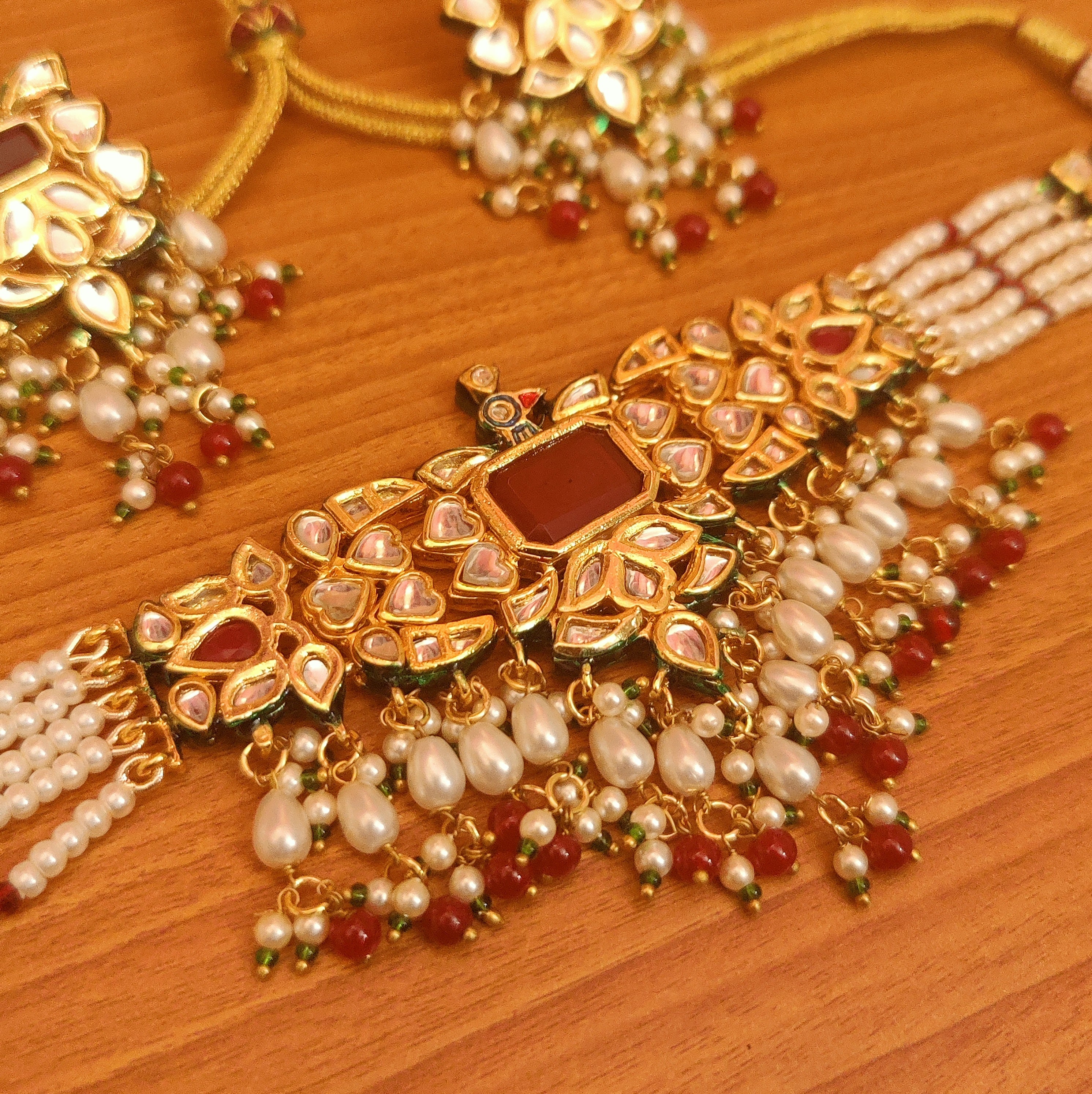 RUBY KUNDAN MEENAKARI & PEARL CHOKER NECKLACE SET