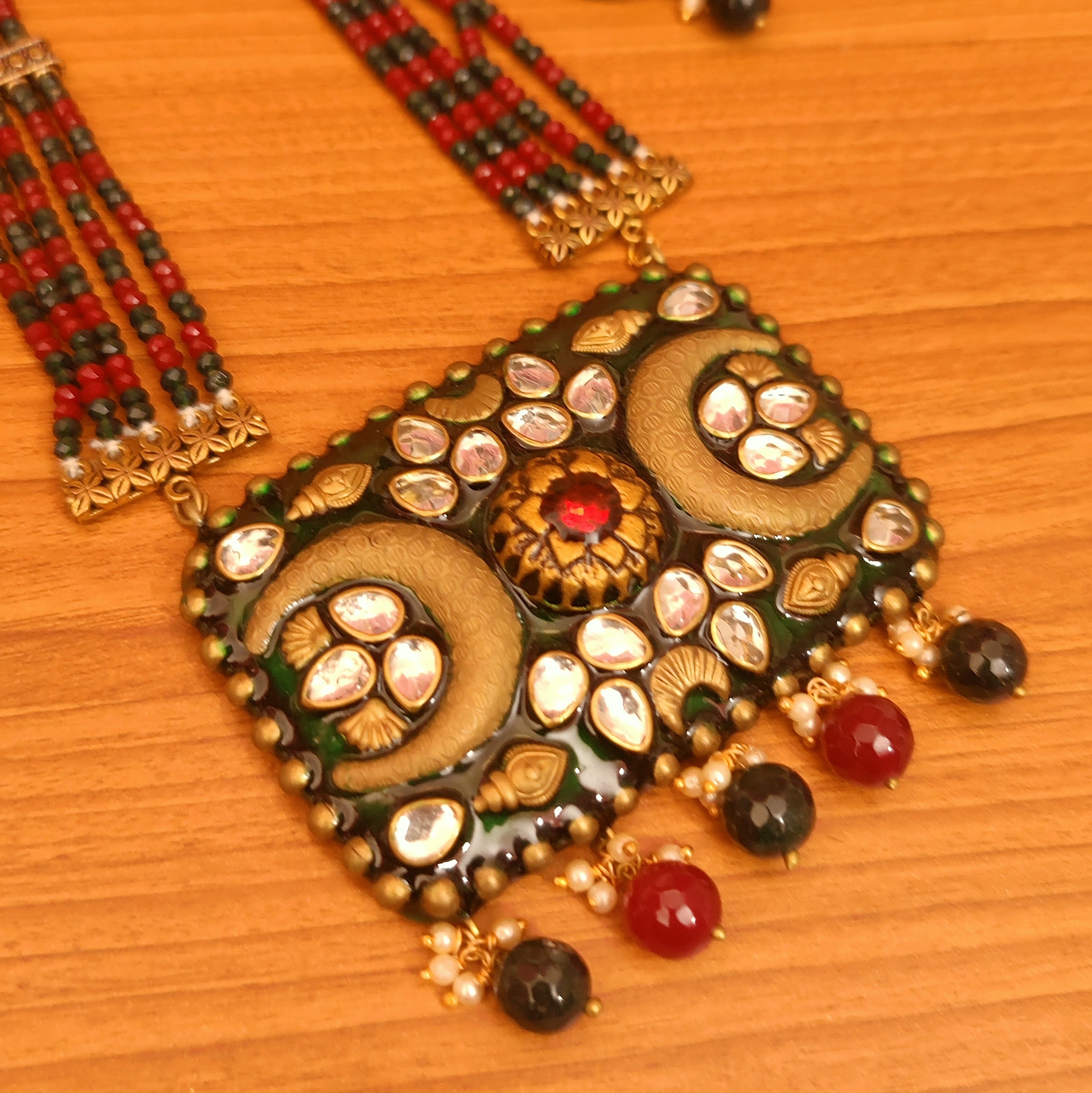 RUBY KUNDAN MEENAKARI ANTIQUE LOOK NECKLACE SET