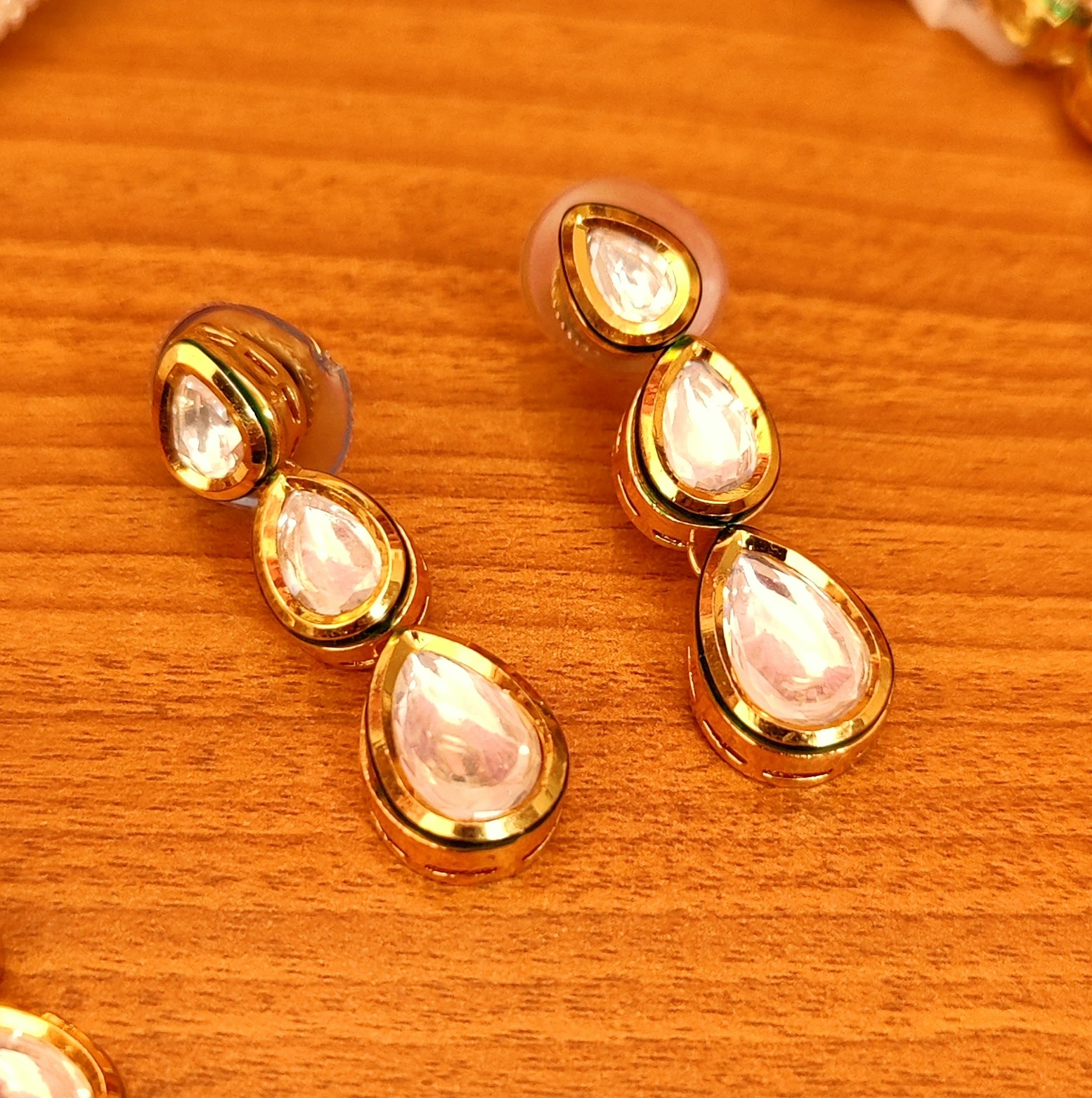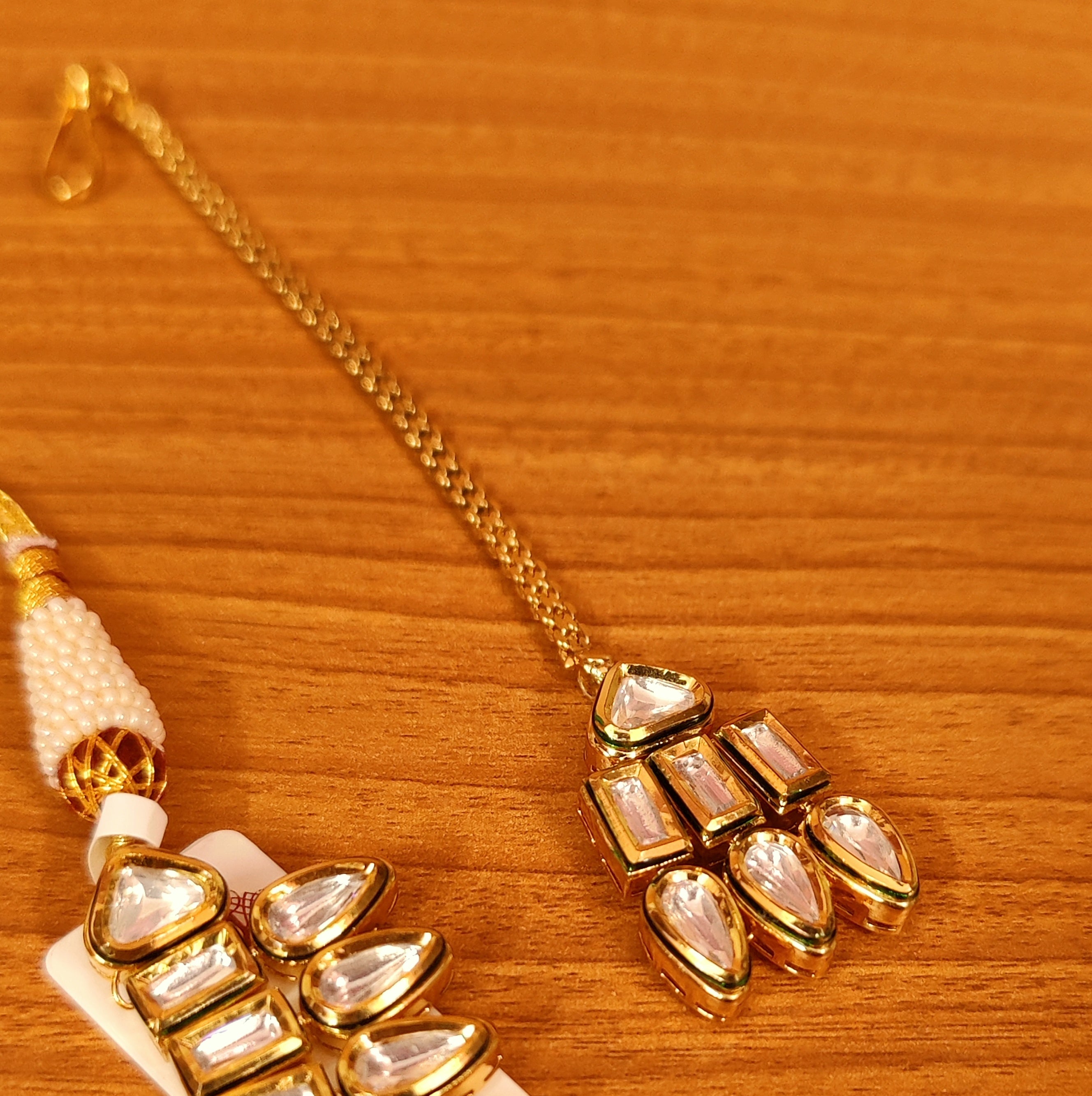 KUNDAN POLKI ELEGANT GOLD PLATED NECKLACE SET