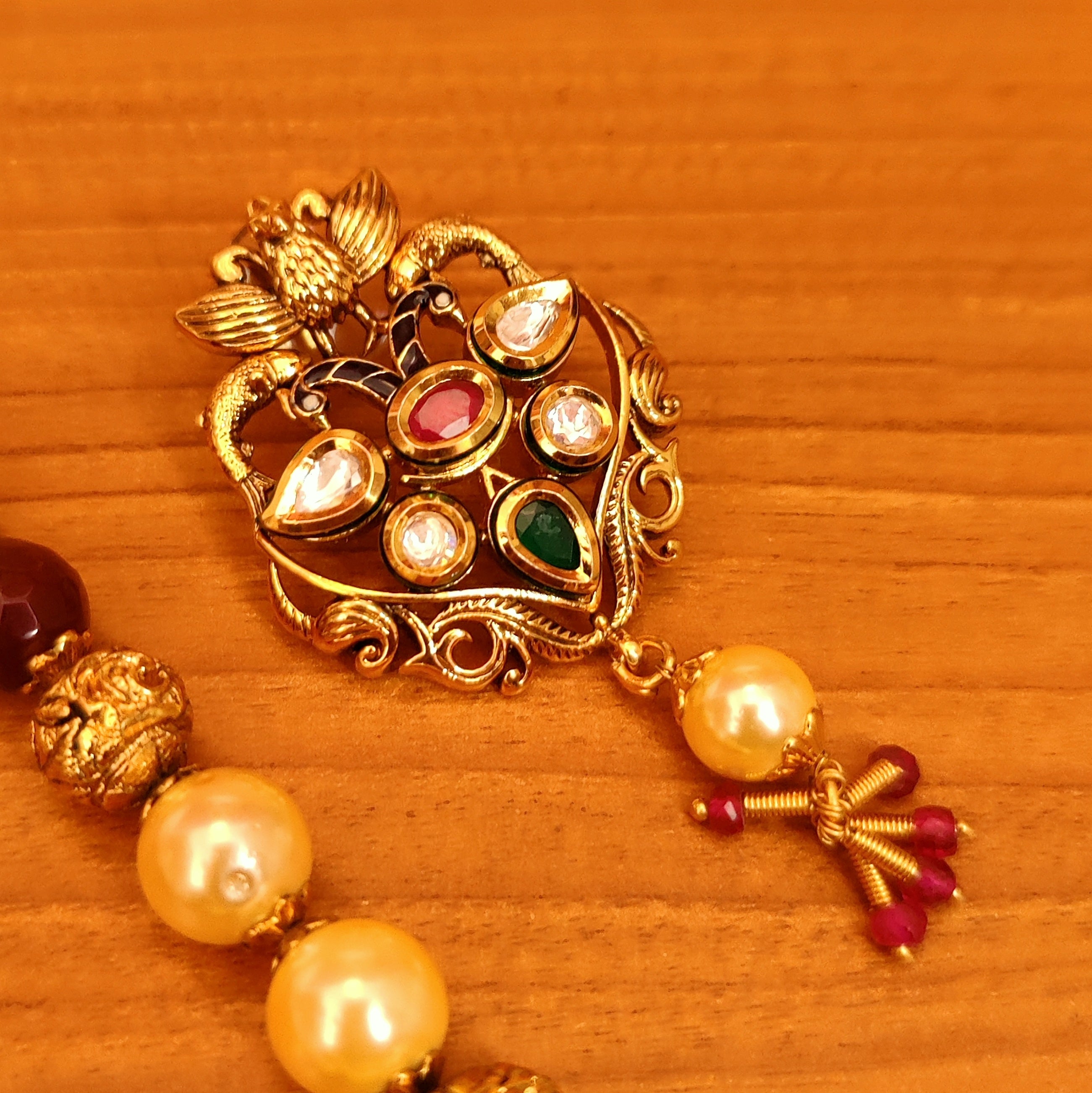 RUBY & EMERALD ANTIQUE LOOK KUNDAN PENDANT SET