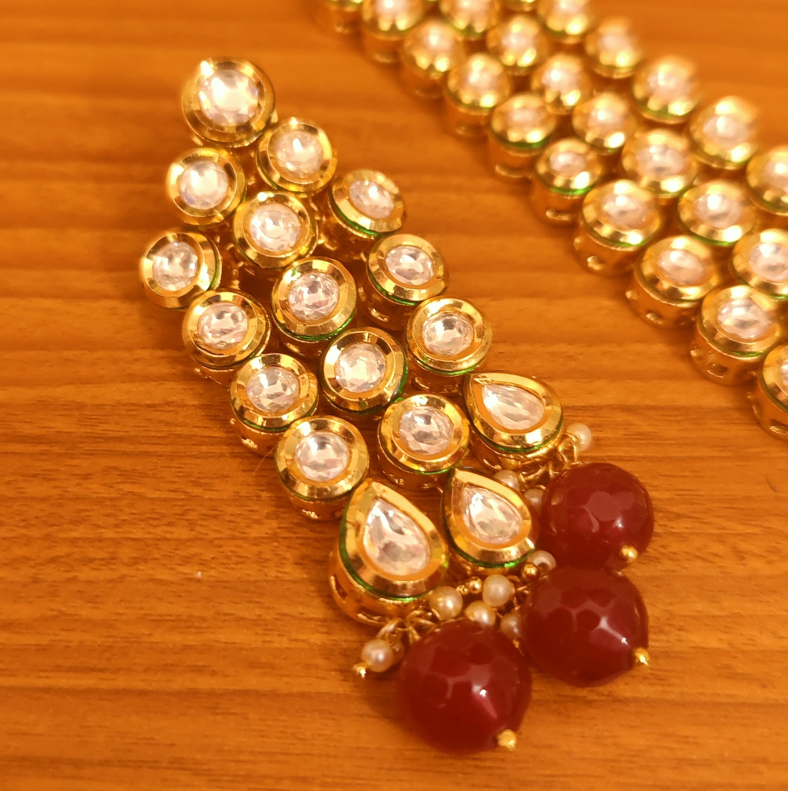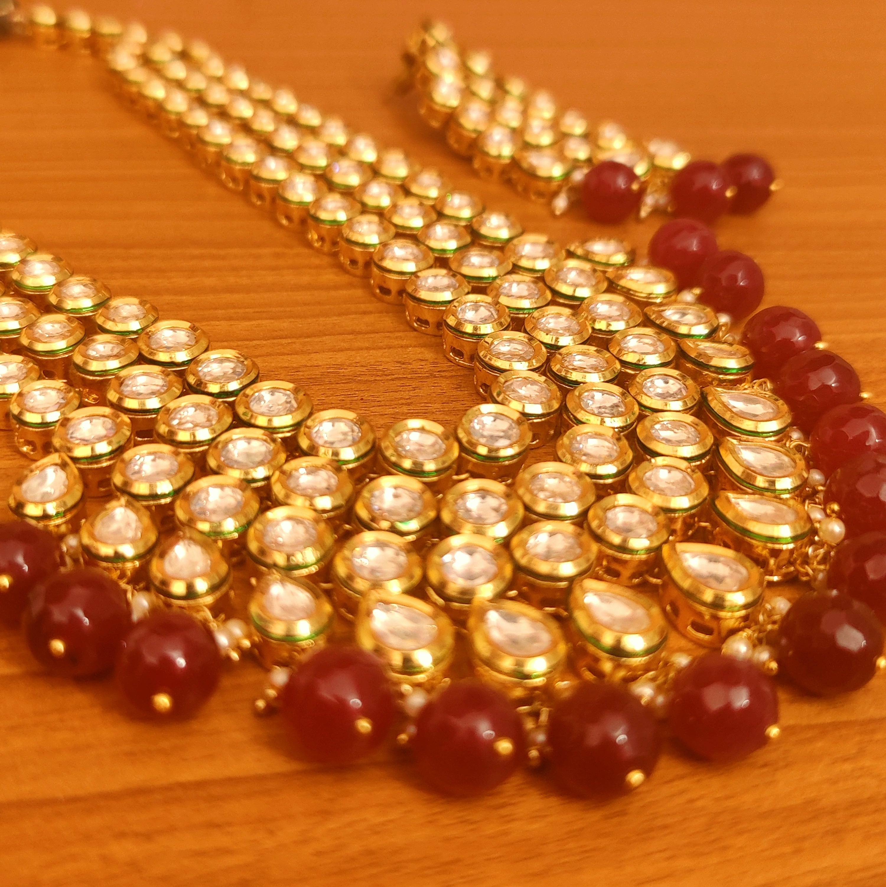 RUBY KUNDAN POLKI MULTILAYERED LONG NECKLACE SET