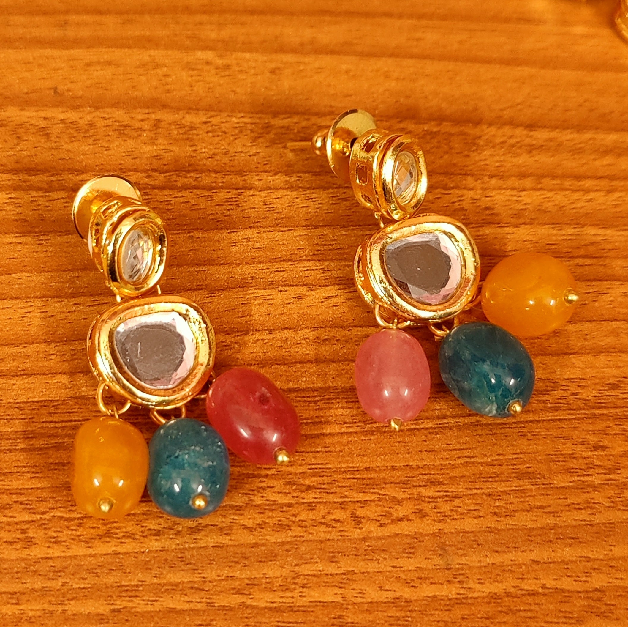 MULTICOLOUR KUNDAN POLKI REAL GOLD LOOK NECKLACE SET