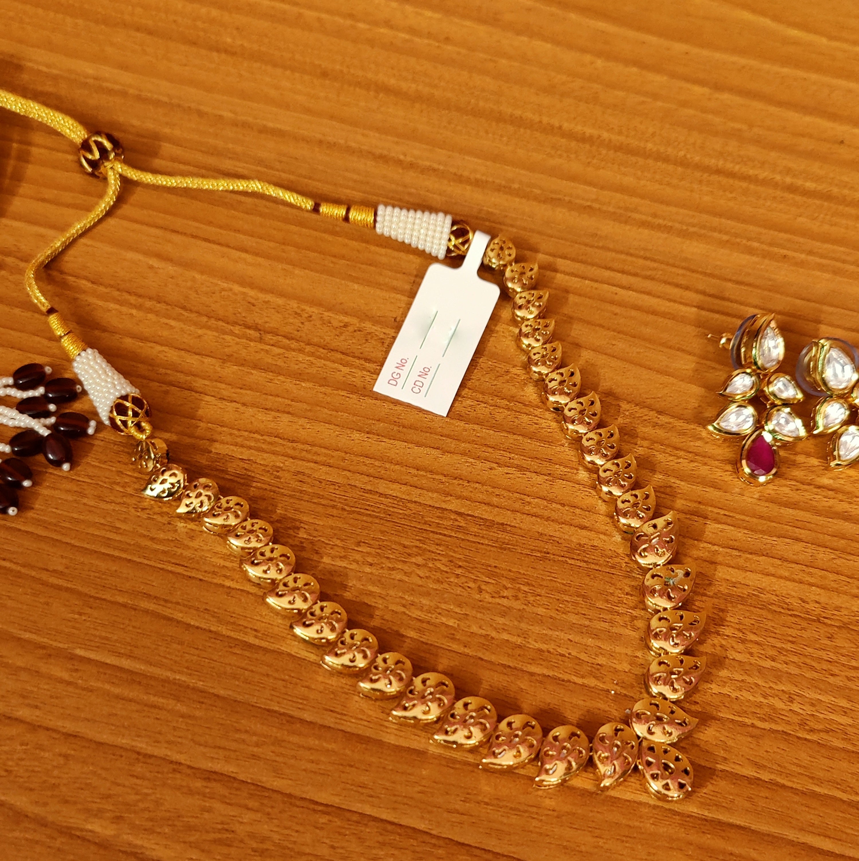 RUBY COLOUR KUNDAN POLKI SINGLE LINE PAISLEY NECKLACE SET
