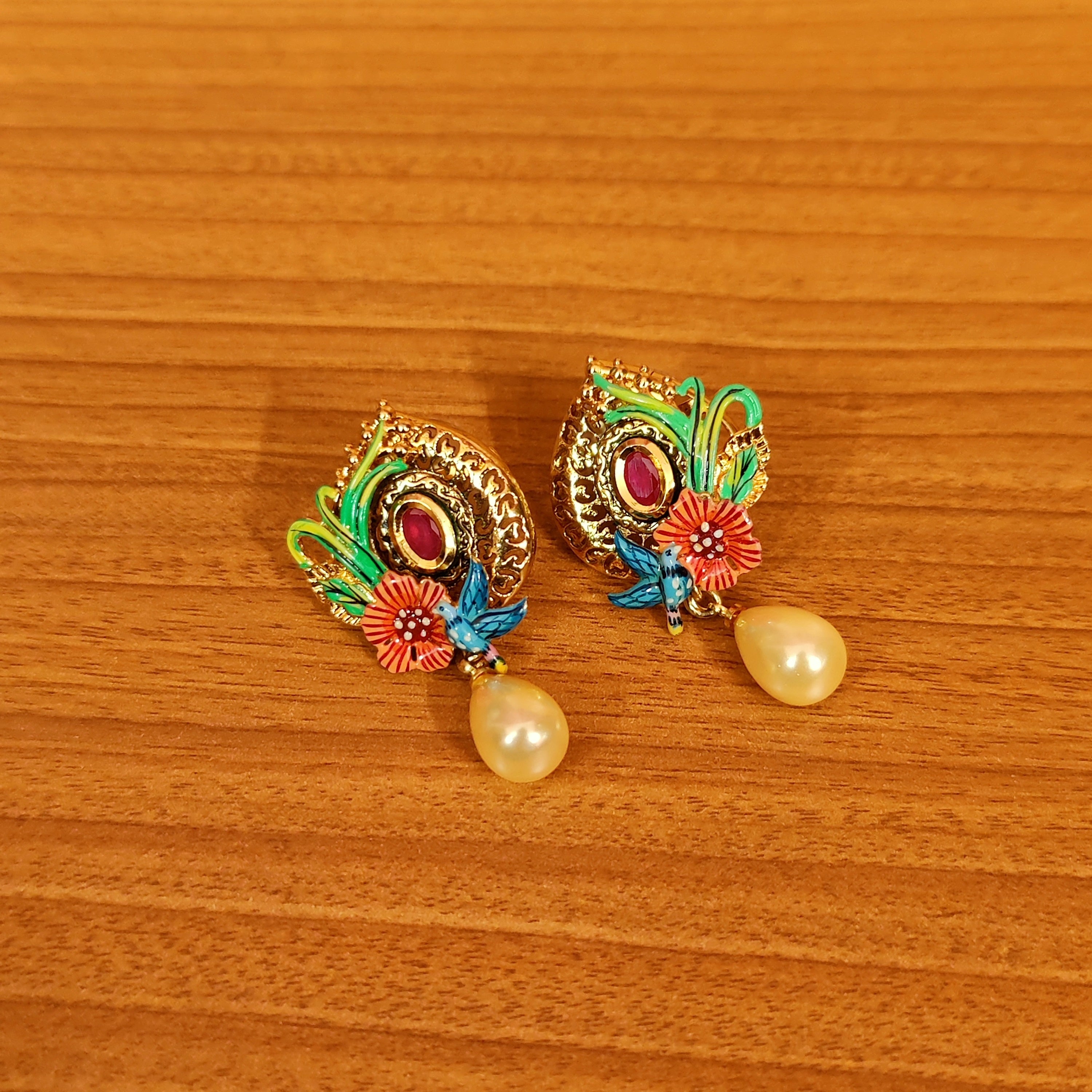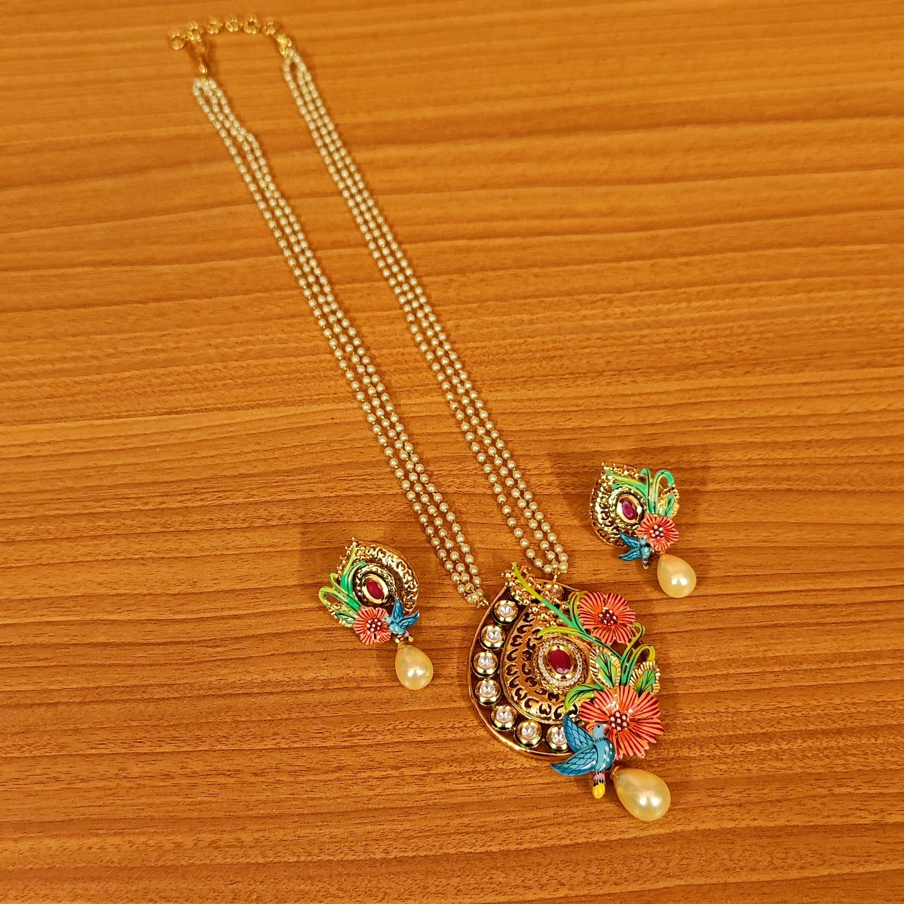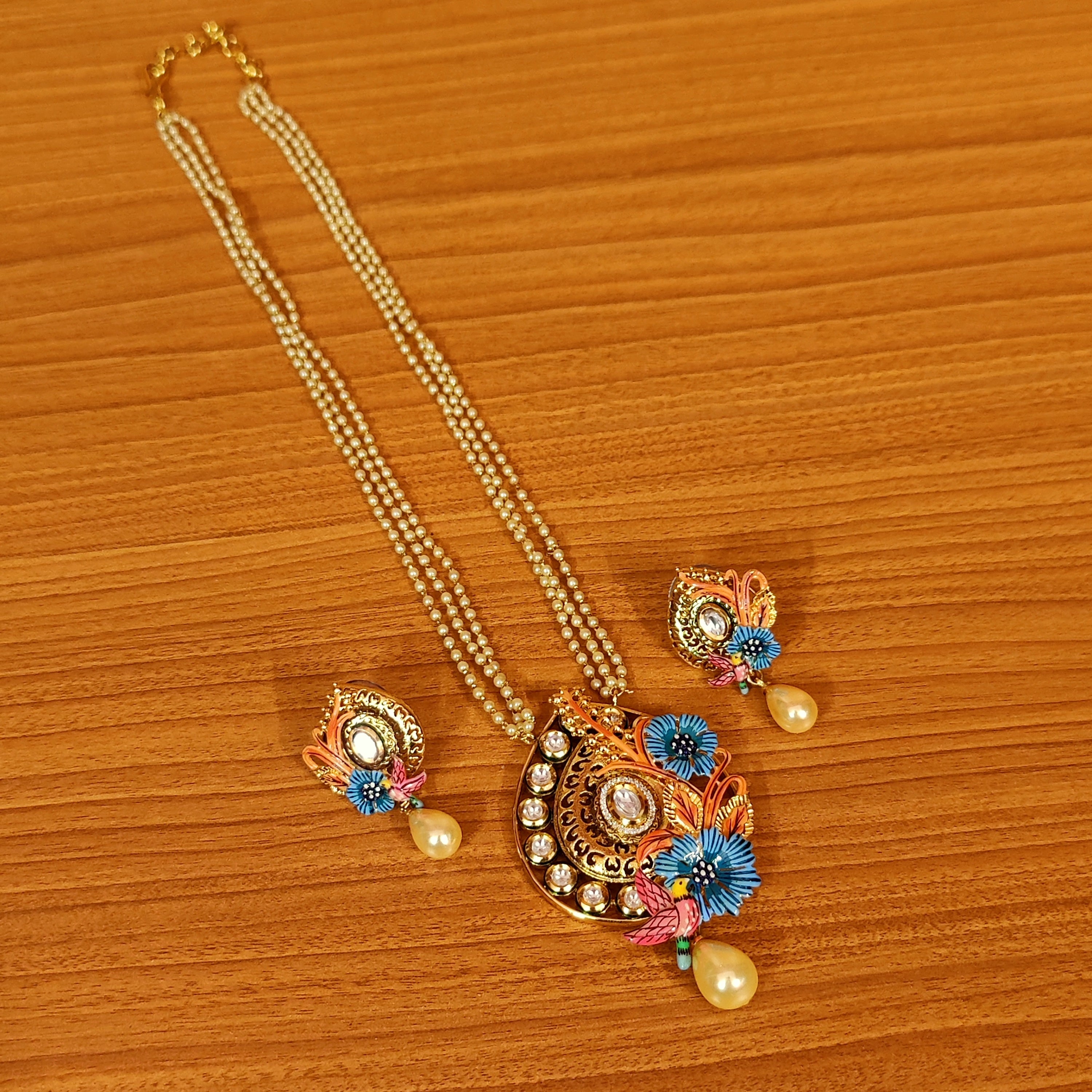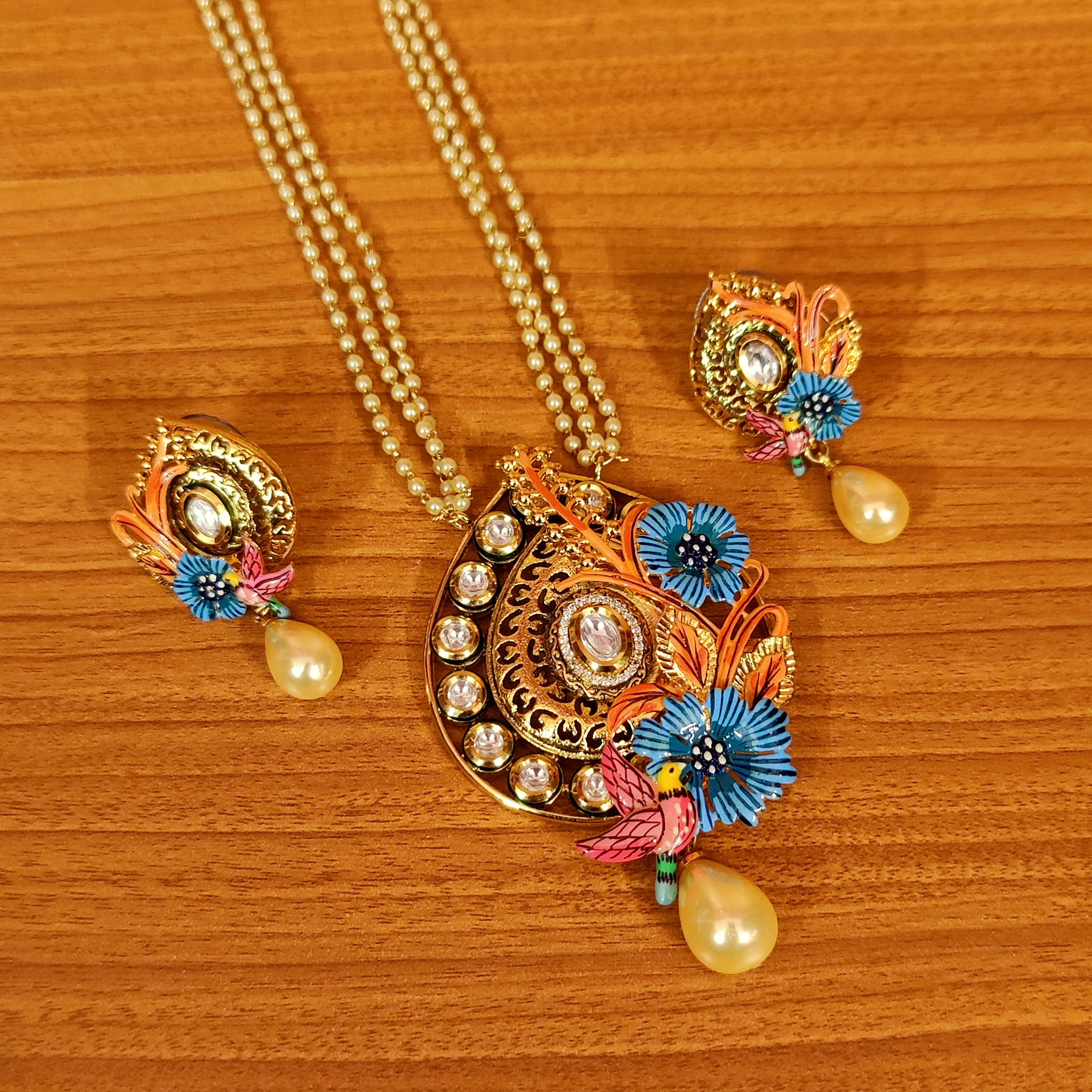 GORGEOUS KUNDAN POLKI & MEENAKARI DESIGNER PENDANT SET