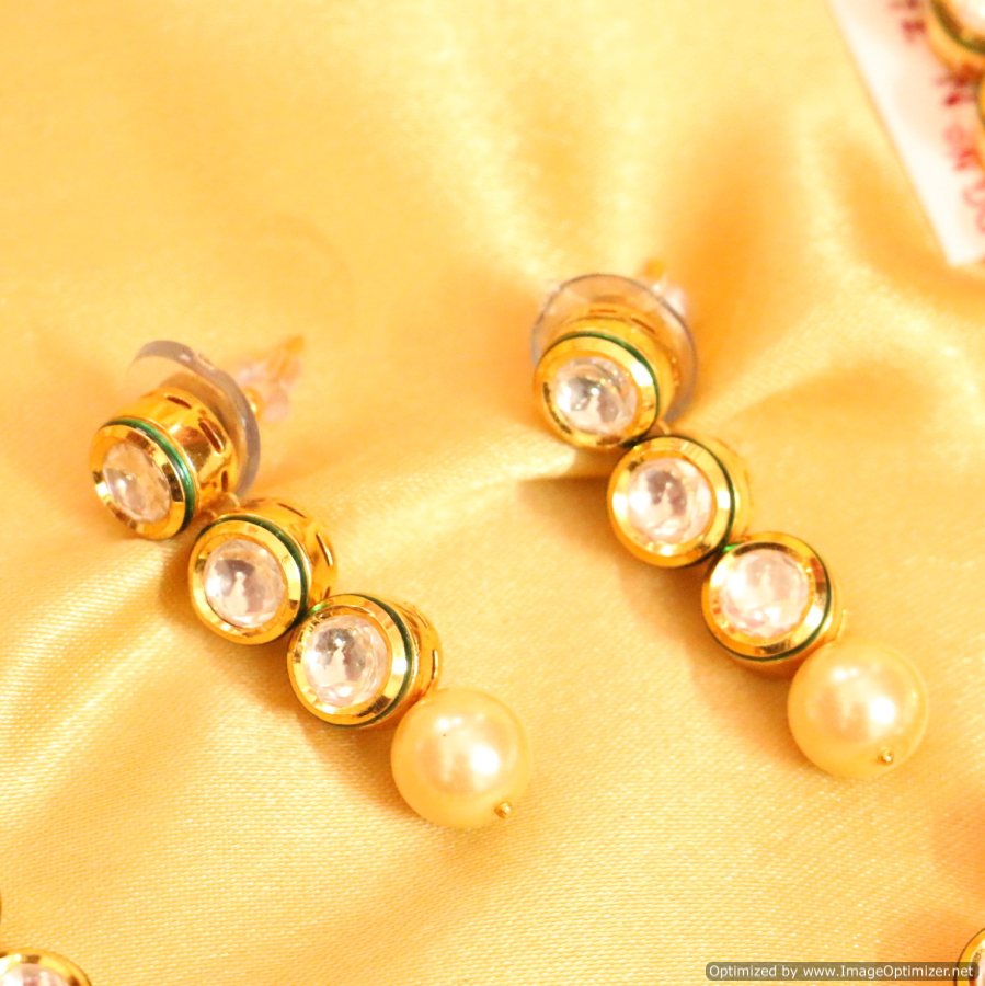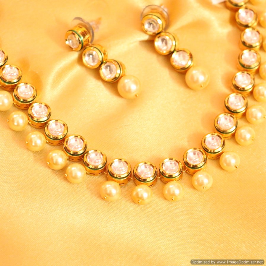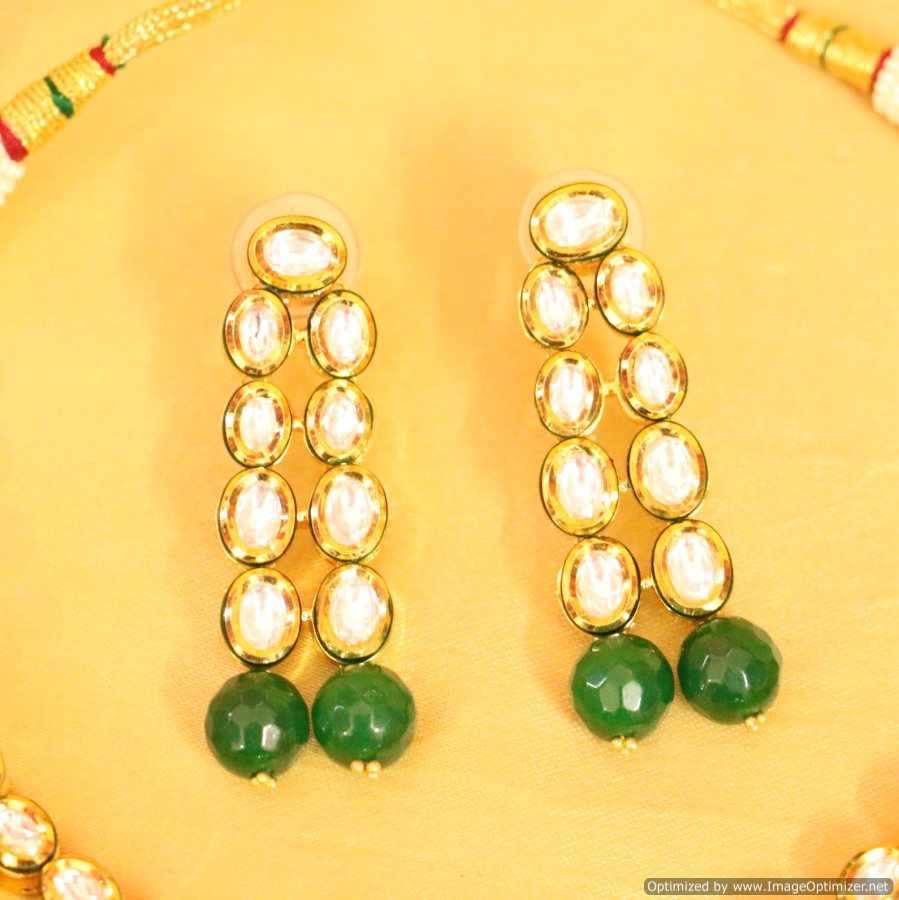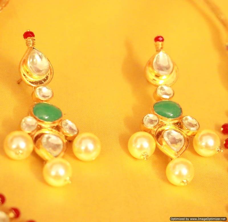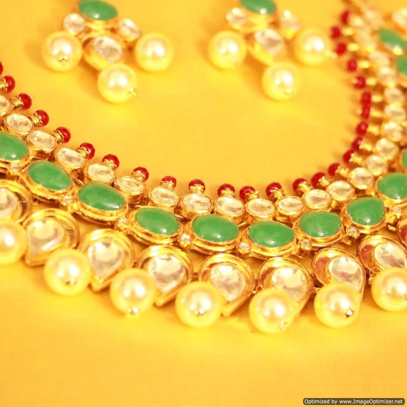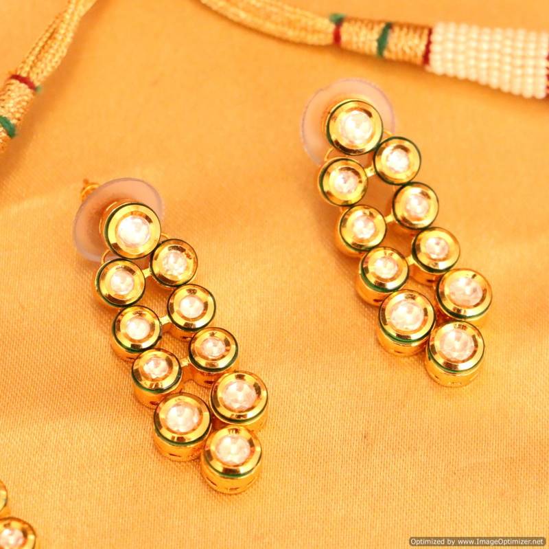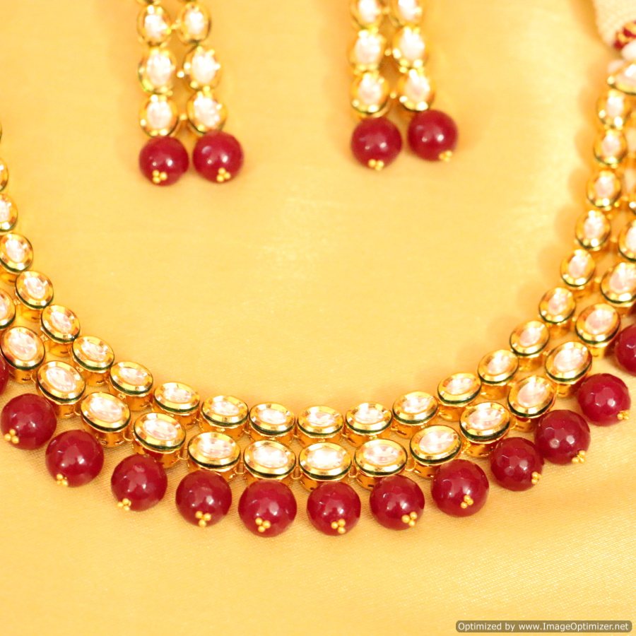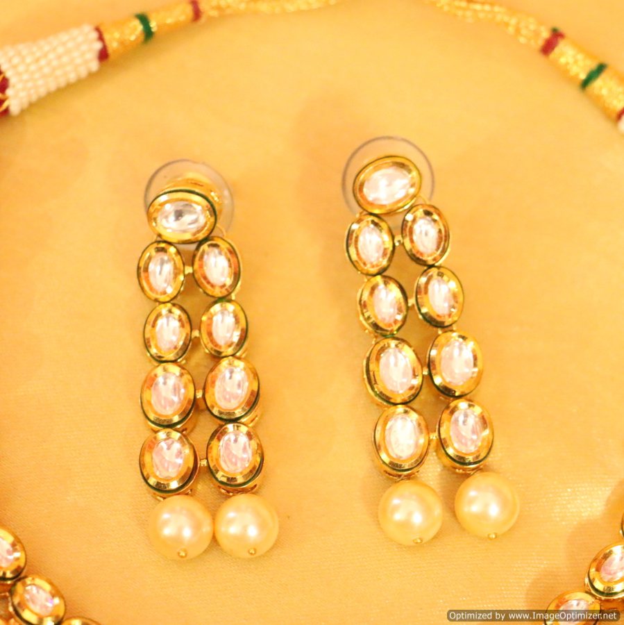 Semi Precious Pearl & Kundan 3 Line Necklace Set