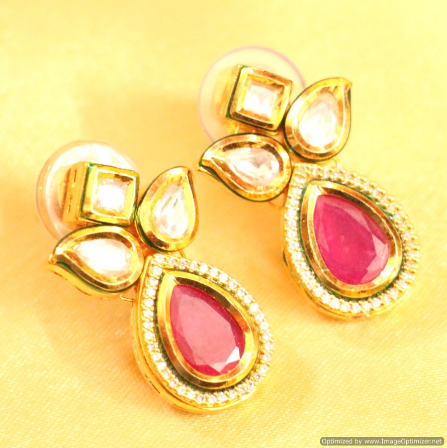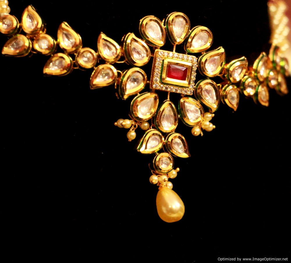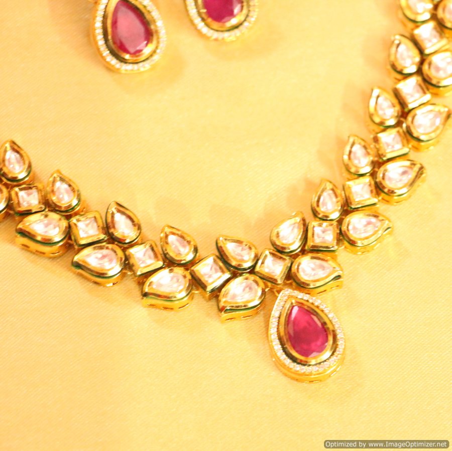 RUBY KUNDAN POLKI & MEENAKARI PEARL PENDANT SET